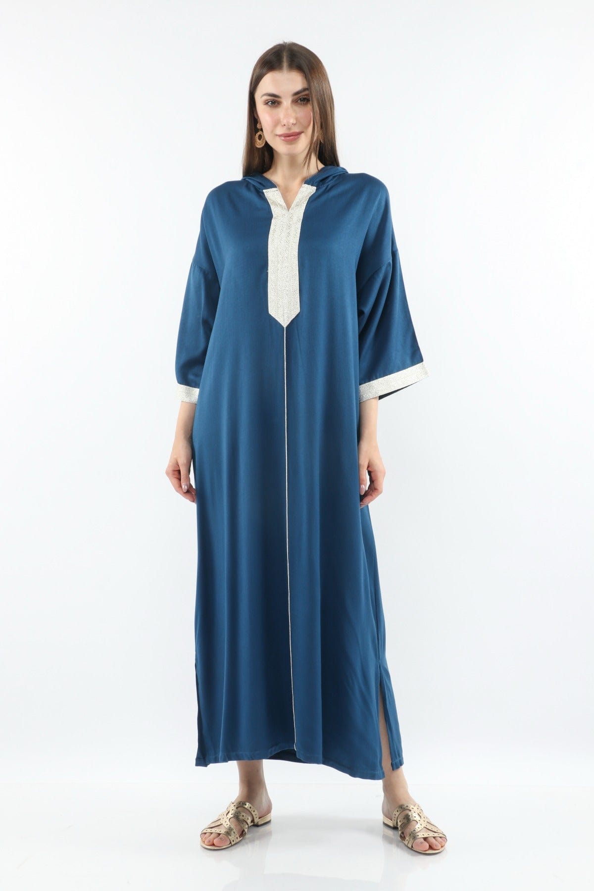 Get ready to shine with a signature Moroccan women's djellaba in soft polyester with a diamanten embroidered neckline. This djellaba is available in two beautiful colors: blue and black. This piece is crafted with great care and its meticulous details add a touch of elegance and beauty. It has a comfortable and elegant design that makes it ideal for special occasions and relaxing times. Wear it with jeans or style it with a chic dress for a statement every time. Now get a Moroccan djellaba for women in soft polyester with an embroidered neckline from Diamantine and get ready to receive a tribute to your elegance. Order now and get the best fashion from Fashion KSA! Manufacturer No: DJ1WS5U
