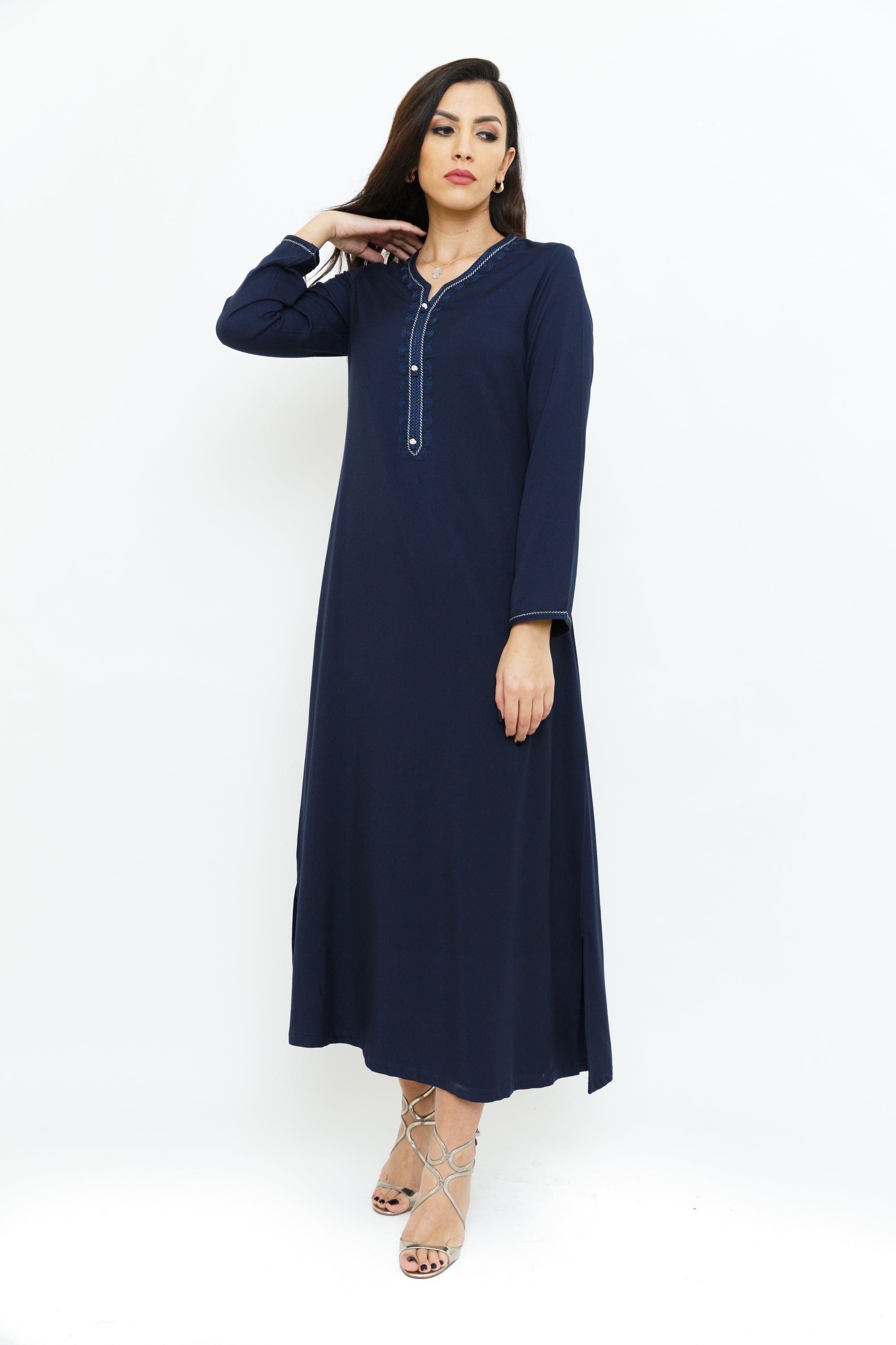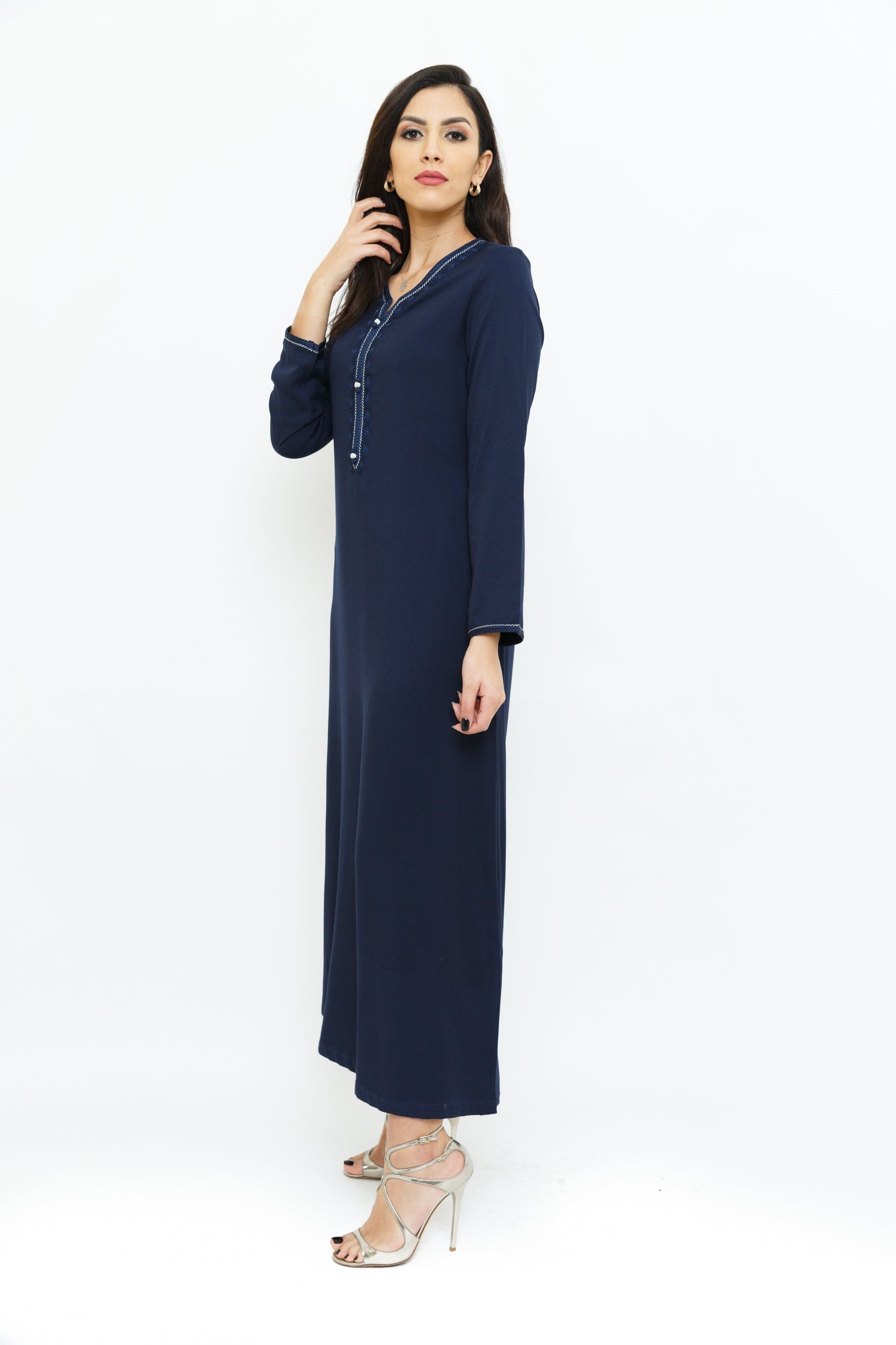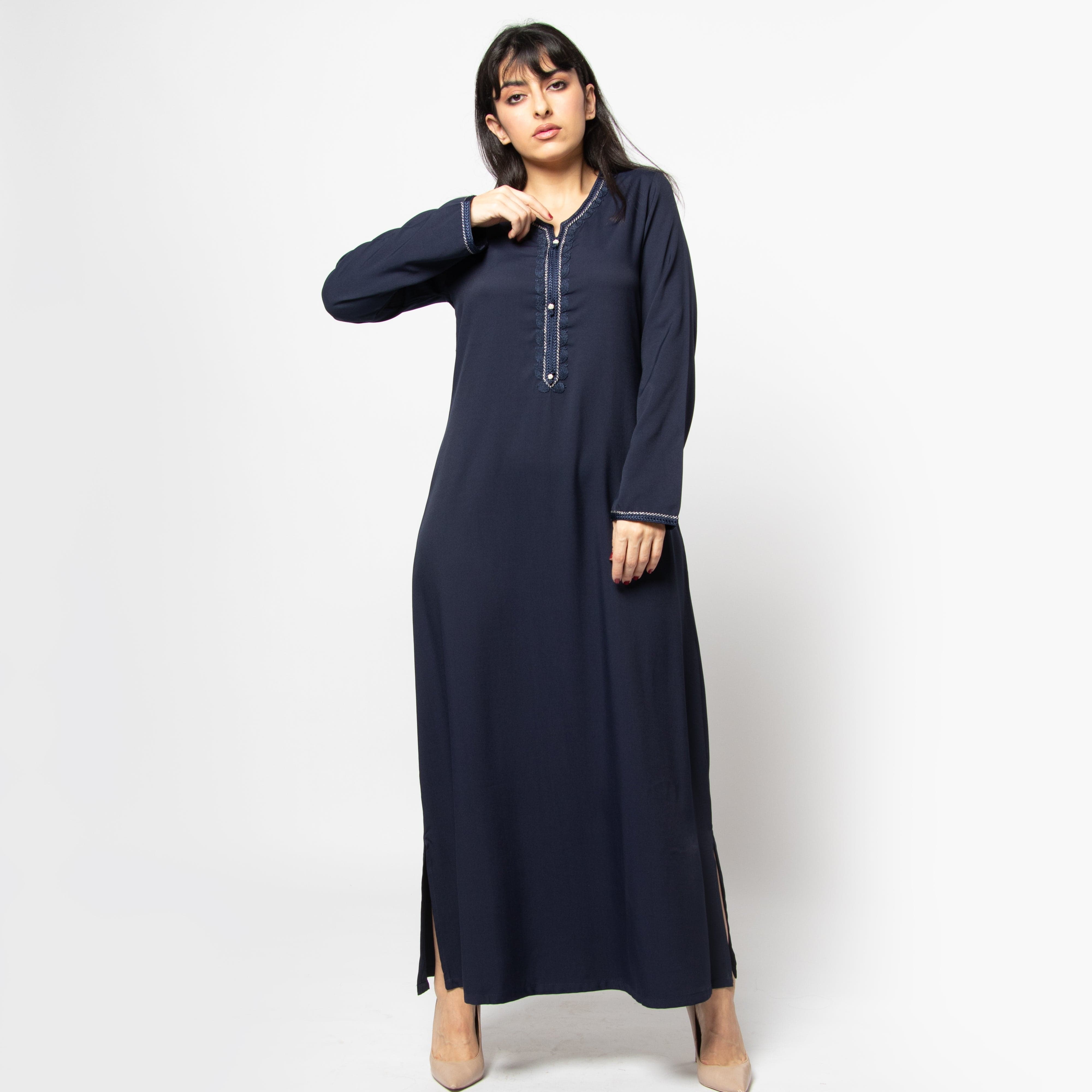 Get ready to shine with a women's jalabiya with long sleeves embroidered on the chest and the end of the sleeves from Diamantine. This jalabiya comes in an elegant and attractive color that goes with all looks, the main color of this jalabiya is dark blue. They are designed with superior elegance and their meticulous details make them ideal for special occasions and celebrations. It's cut for a relaxed fit and long sleeves to ensure all-day comfort. Style it with pants or skirt for a glamorous and elegant look. Get now a women's jalabiya with long sleeves embroidered on the chest and end of sleeves from Diamantine and get ready to shine in your own style. Order now and enjoy the most beautiful fashion with Fashion. Manufacturer No: KM1WU9U