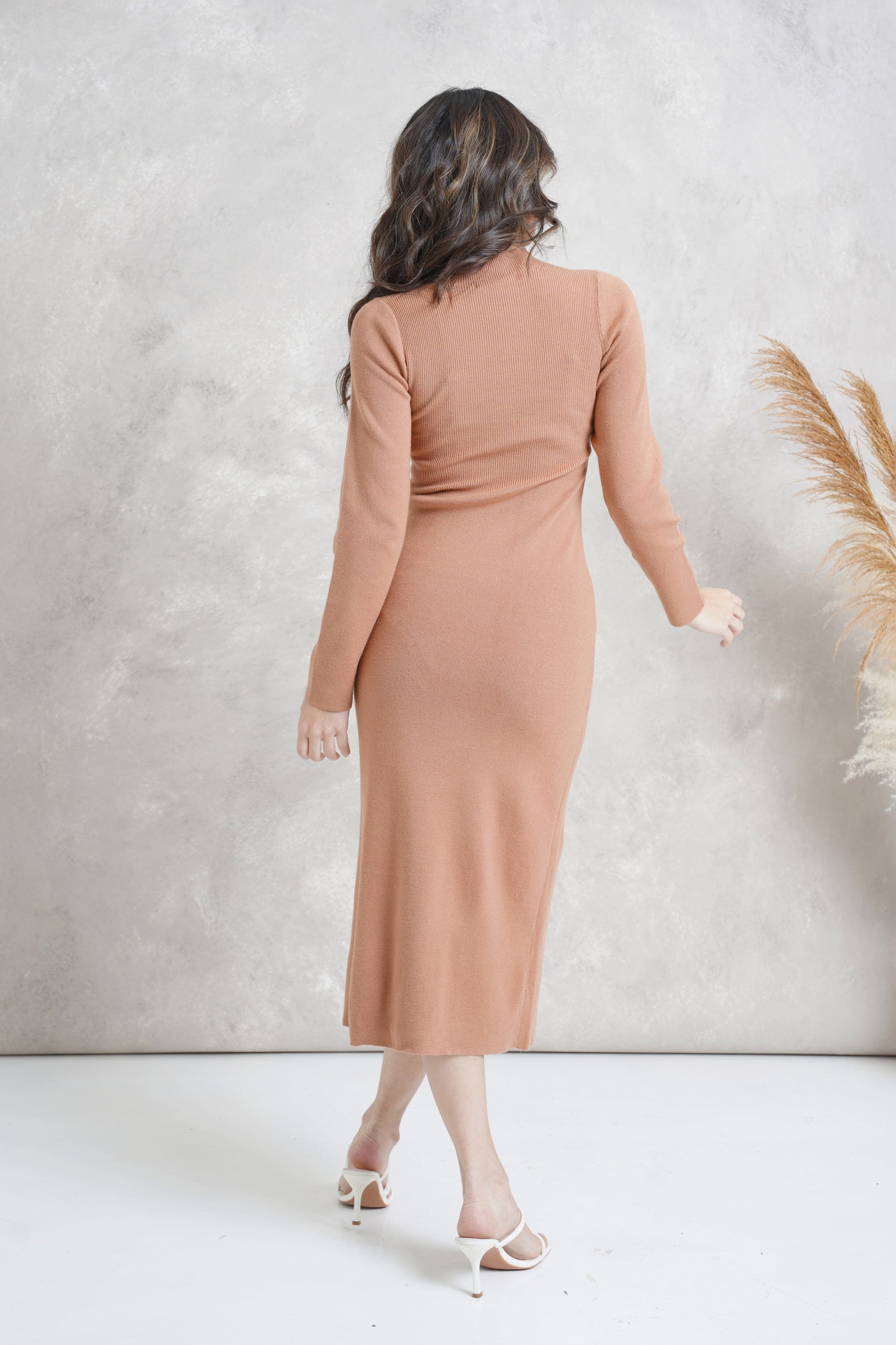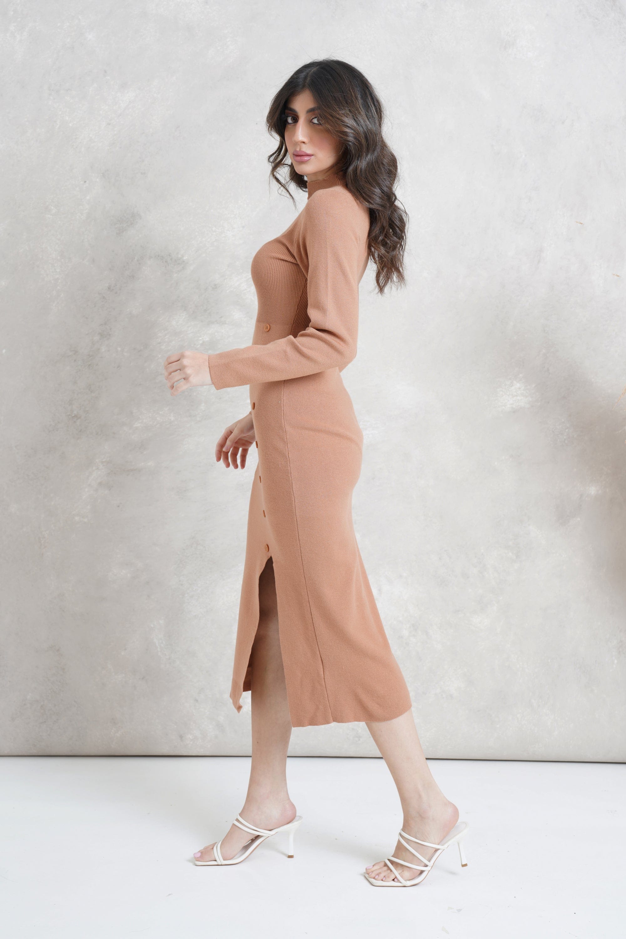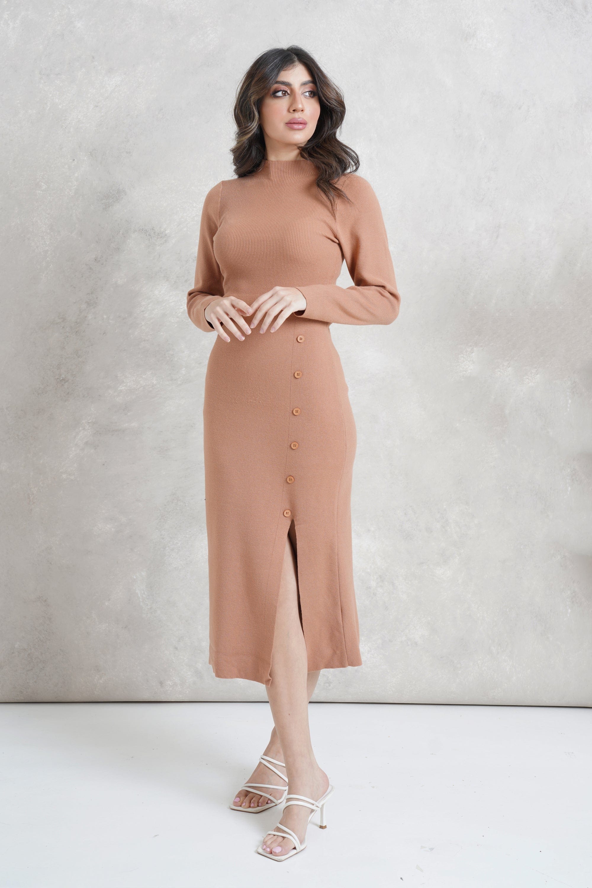 This sleek Black Solid Midi Long-Sleeve Dress is the office-ready staple every wardrobe needs, combining confident tailoring with all-day comfort. Cut in a fitted bodycon silhouette, the midi length and subtle side slit create a polished, elongated profile ideal for meetings and presentations. The blend of 50% viscose, 28% polyester and 22% nylon offers a soft drape with breathable viscose, wrinkle-resistant polyester and gentle stretch from nylon for shape retention. Unlined with a crew neckline and long sleeves, it delivers medium-weight coverage without bulk, while a discreet button closure keeps the front clean. Pocketless and beltless for a streamlined look, this solid black dress transitions effortlessly from office to after-work events. Shop this essential at Fashion SA and elevate your professional editโadd to cart now.