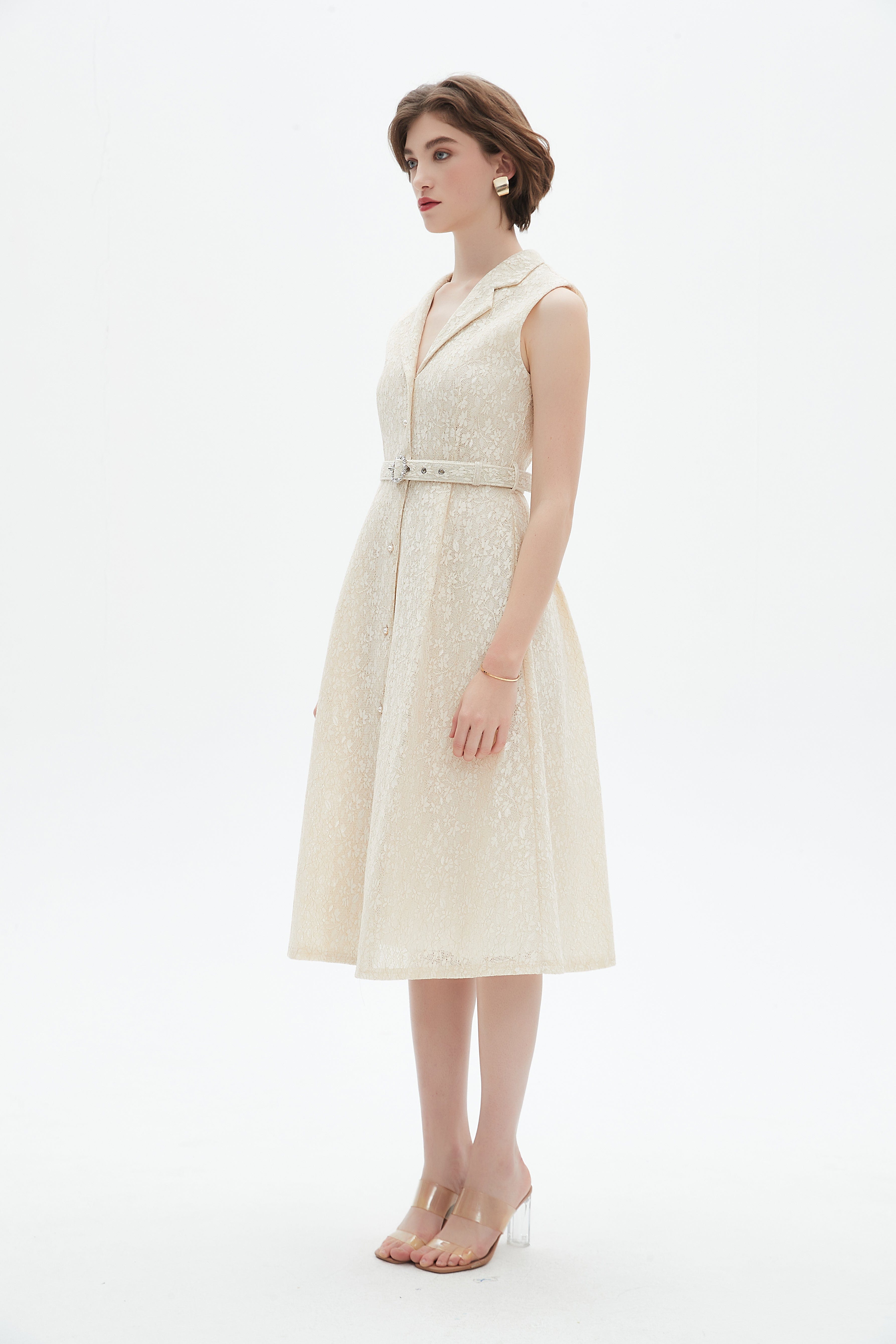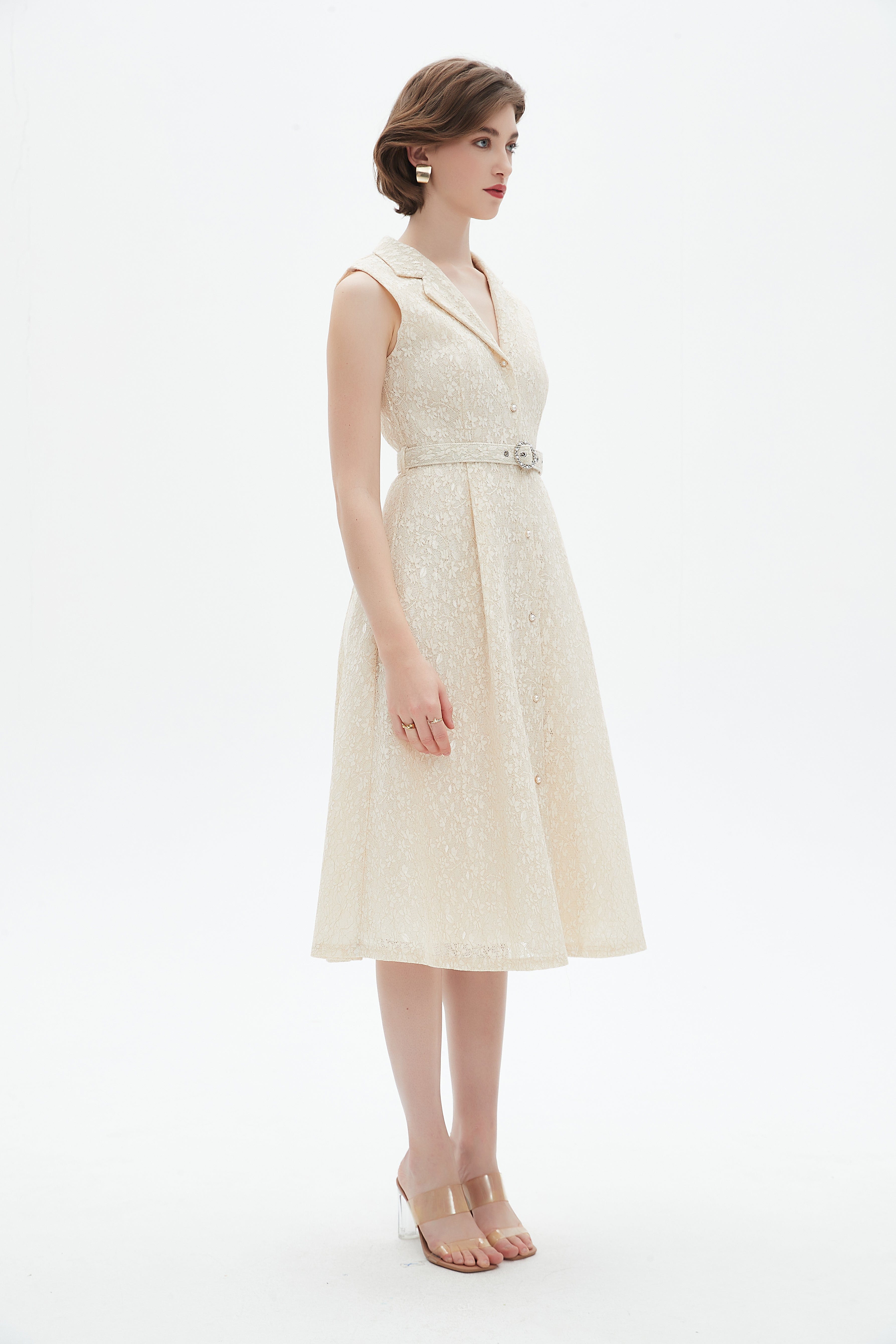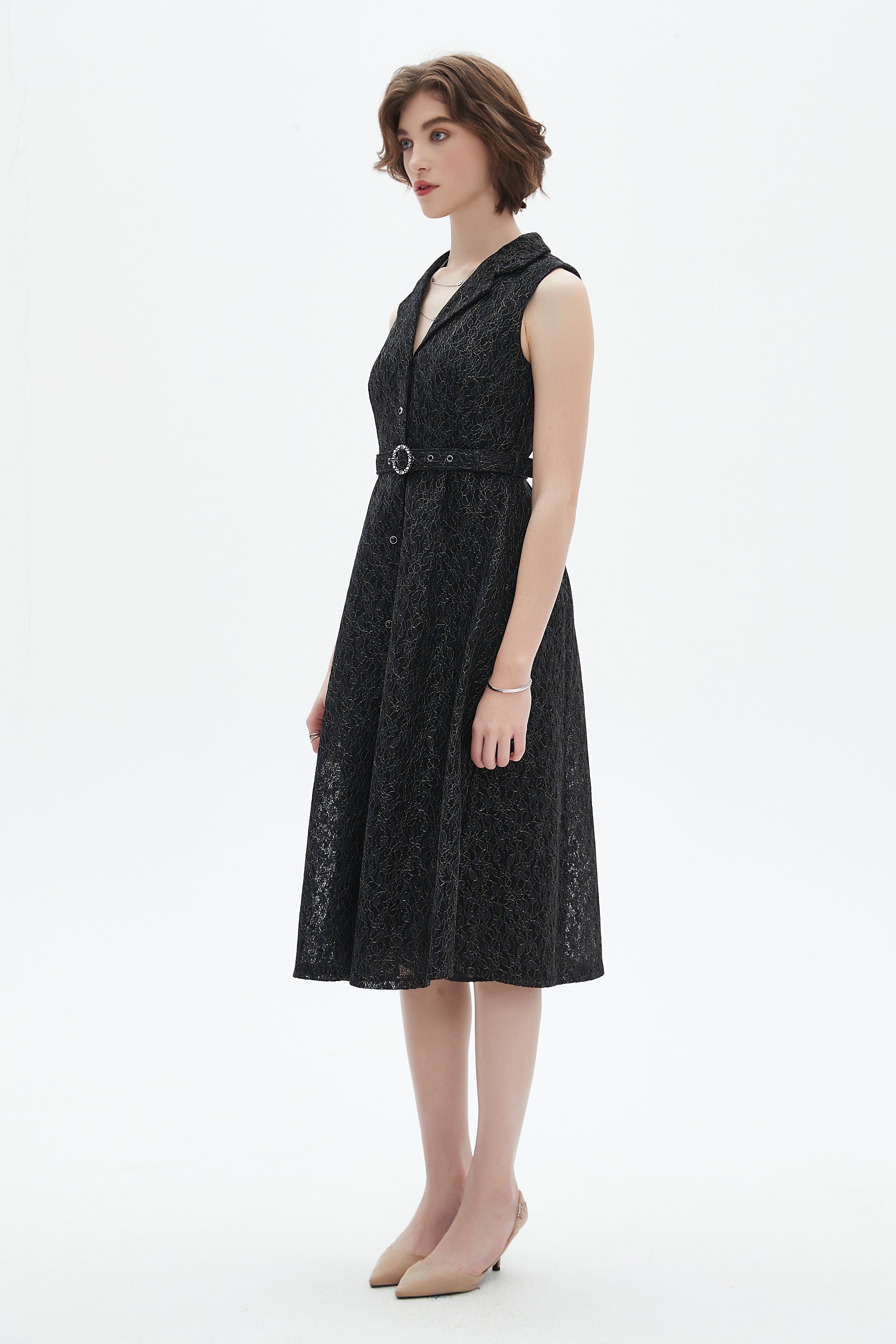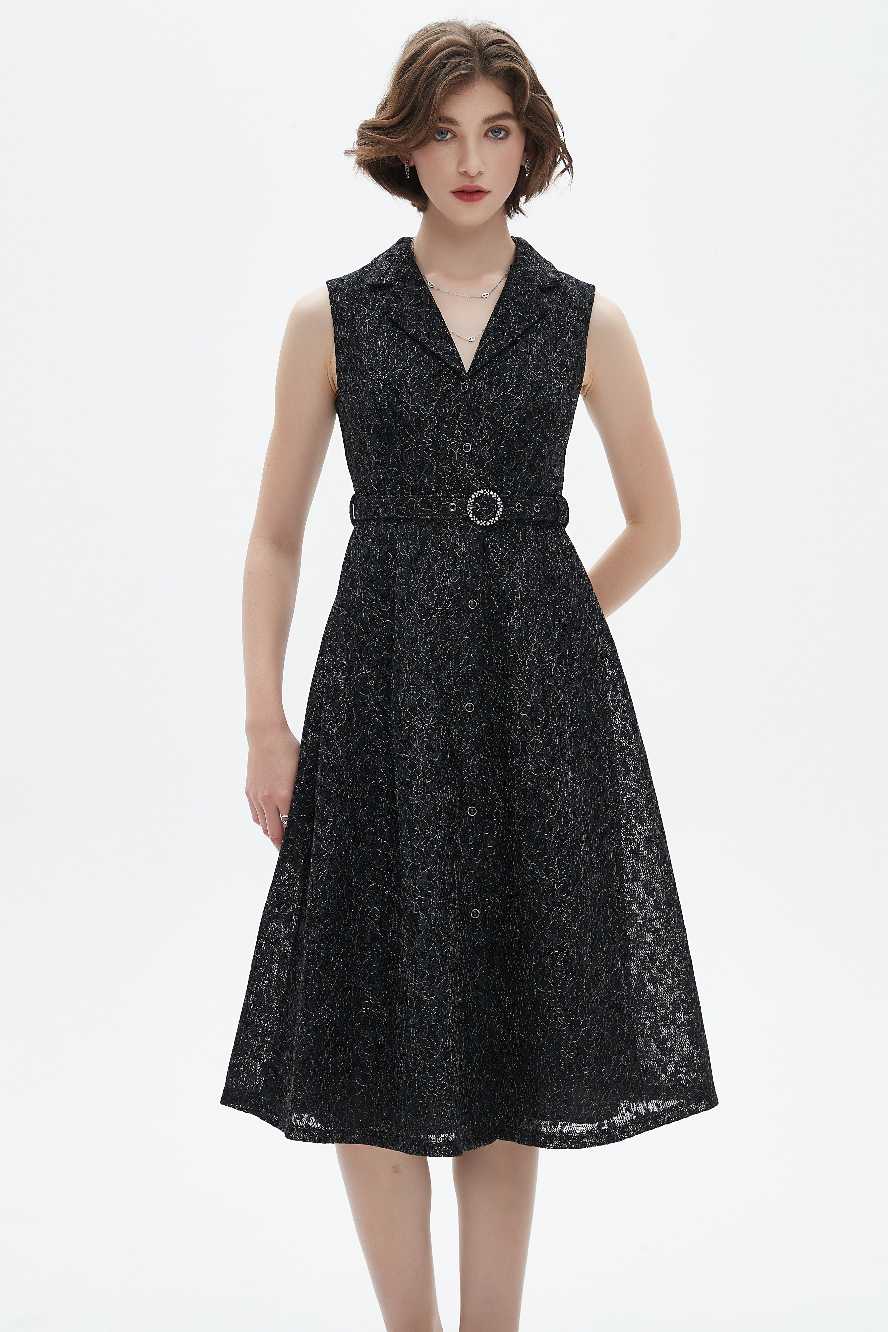 - Knee-length hem provides versatile coverage for day-to-evening wear