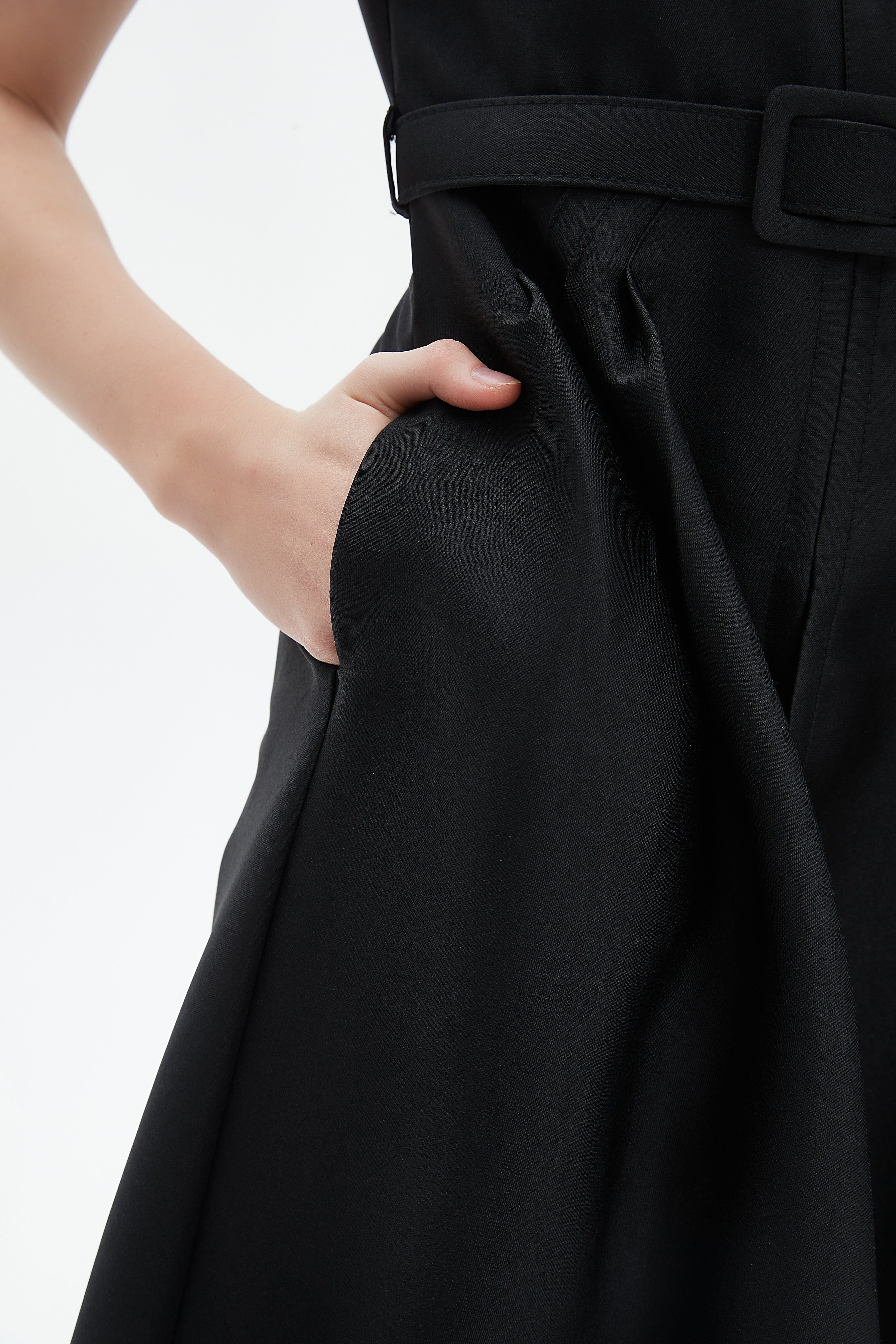This black solid midi belted dress is an office-ready staple that balances tailored polish with everyday comfort. Cut in a flattering A-line silhouette from 90% polyester with 10% lurex, the fabric is wrinkle-resistant with a subtle metallic thread for a refined sheen. The shirt collar and short sleeves create a smart, professional profile while the midi length offers elegant coverage for meetings and presentations. Unlined and medium-weight, the regular-fit design breathes easily and layers smoothly under blazers without bulk. Functional details include a button-front closure and a self-tie belt to define the waist; pocketless construction keeps lines clean. Versatile for 9–5, client dinners or weekend smart-casuals, this Nichii piece at Fashion SA is a wardrobe workhorse—shop now to add polish to your rotation.