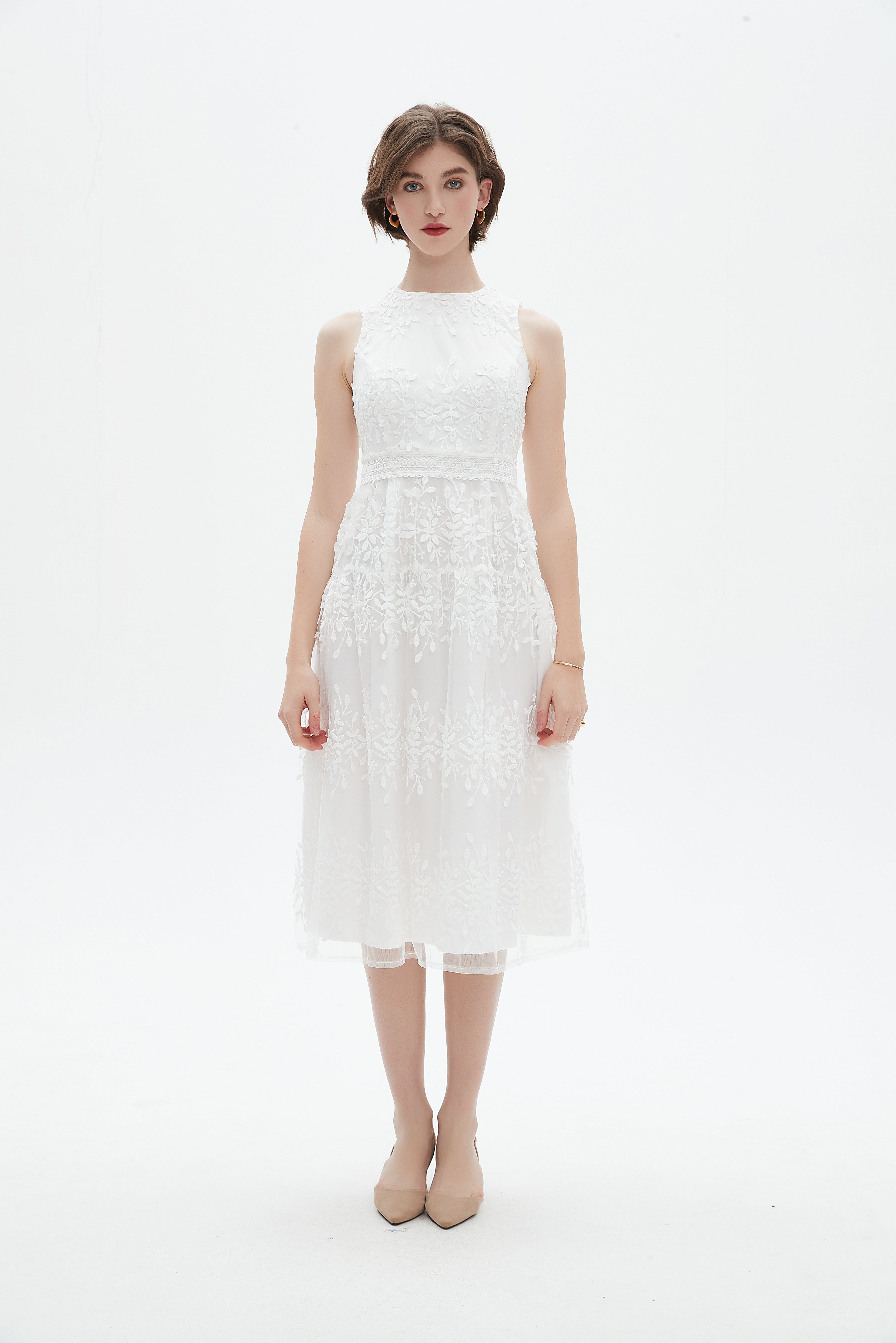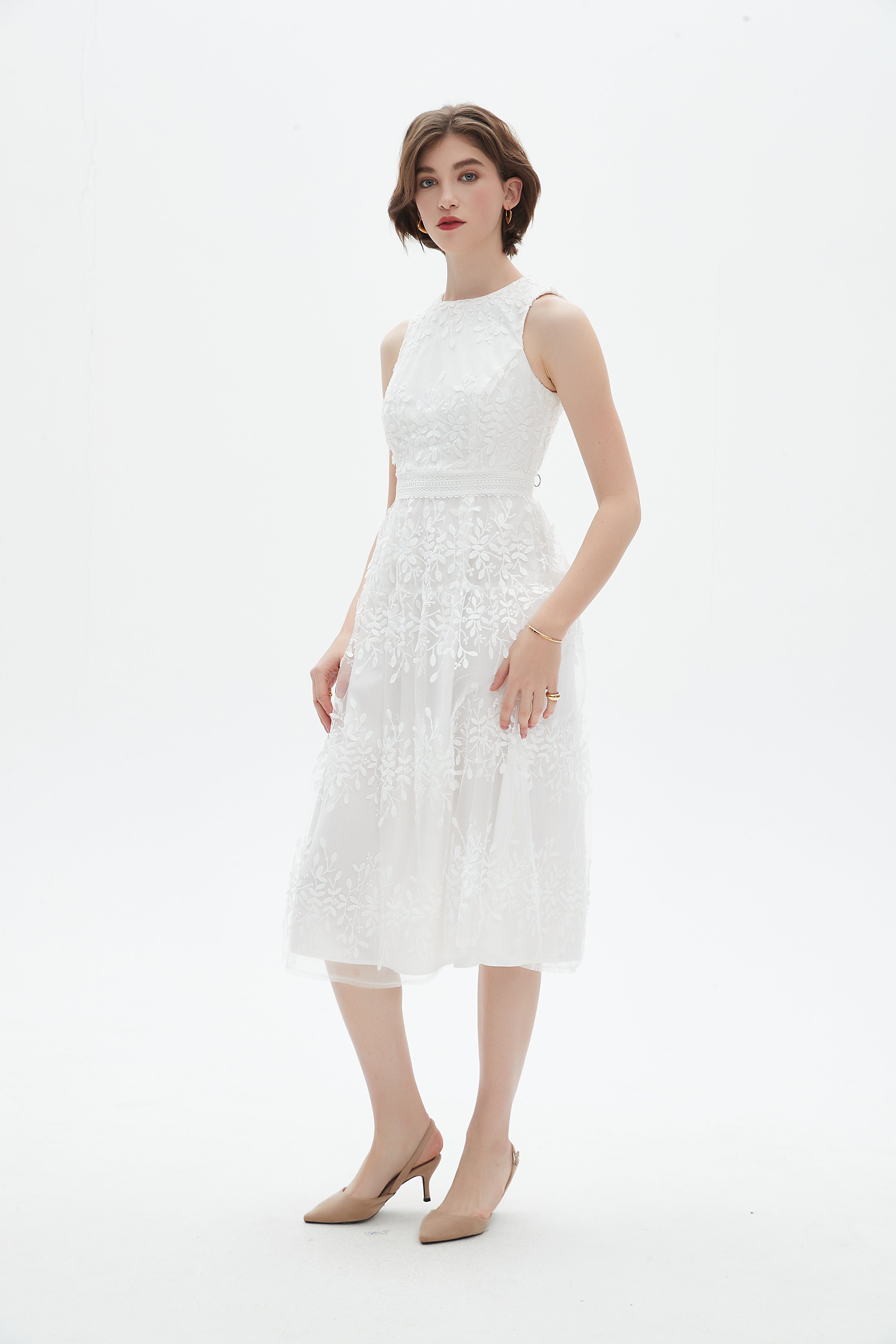 Elevate your event wardrobe with the White Floral Midi Belted Dress — an embroidered, feminine statement piece that blends timeless elegance with easy-care performance. The A-line silhouette and midi length create a universally flattering shape, while the sleeveless, round-neck profile and regular fit offer breathable movement in a medium-weight 50% nylon / 50% polyester blend. Intricate floral embroidery lends refined texture against a crisp white ground; the belted waist cinches for definition and a zippered closure ensures a smooth, secure finish. Unlined for a light, graceful drape and pocketless for a streamlined look, this Nichii design is perfectly suited to elegant occasions yet versatile enough for daytime parties and destination wear. Shop this White Floral Midi Belted Dress at Fashion SA — add it to your wardrobe and style it your way.