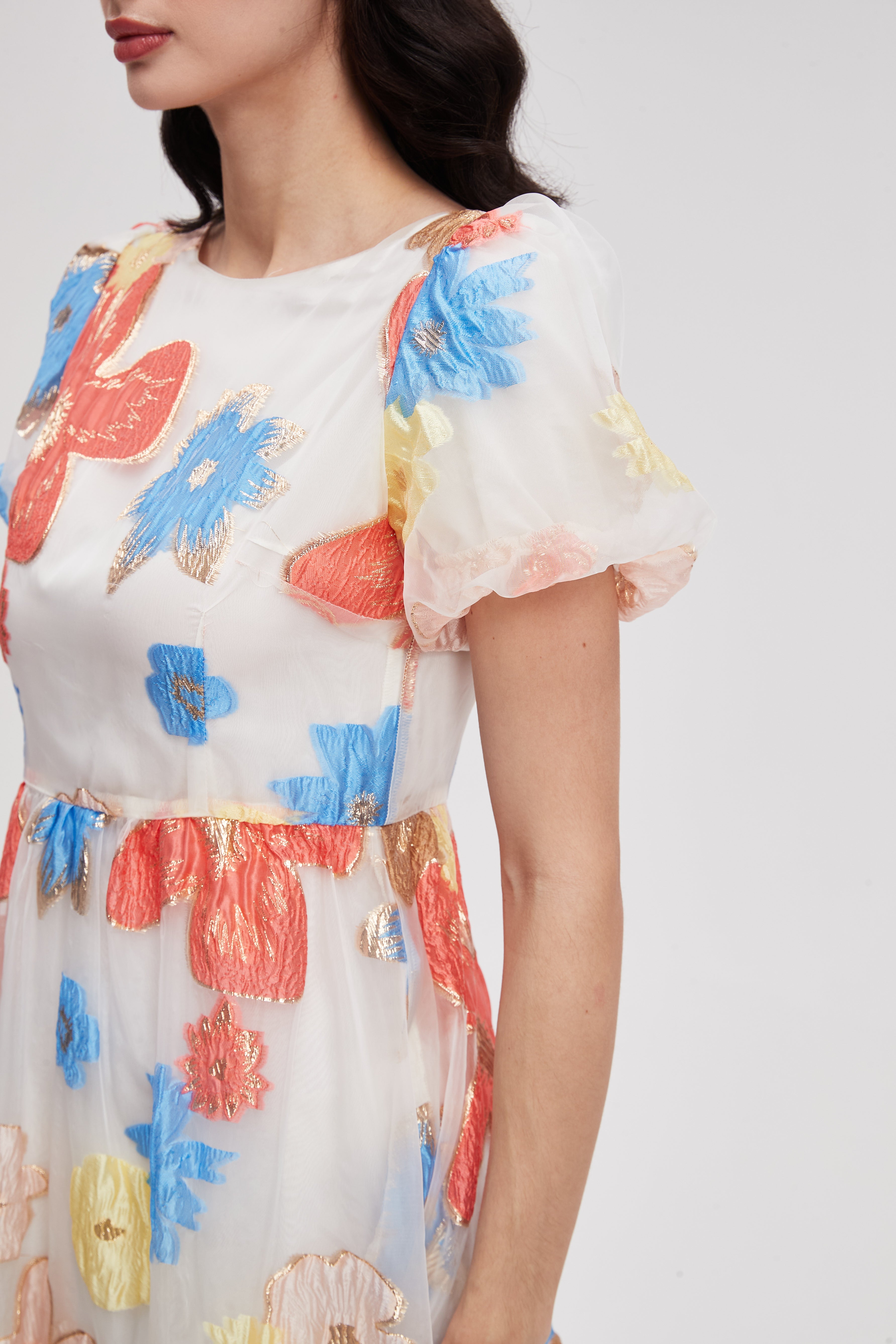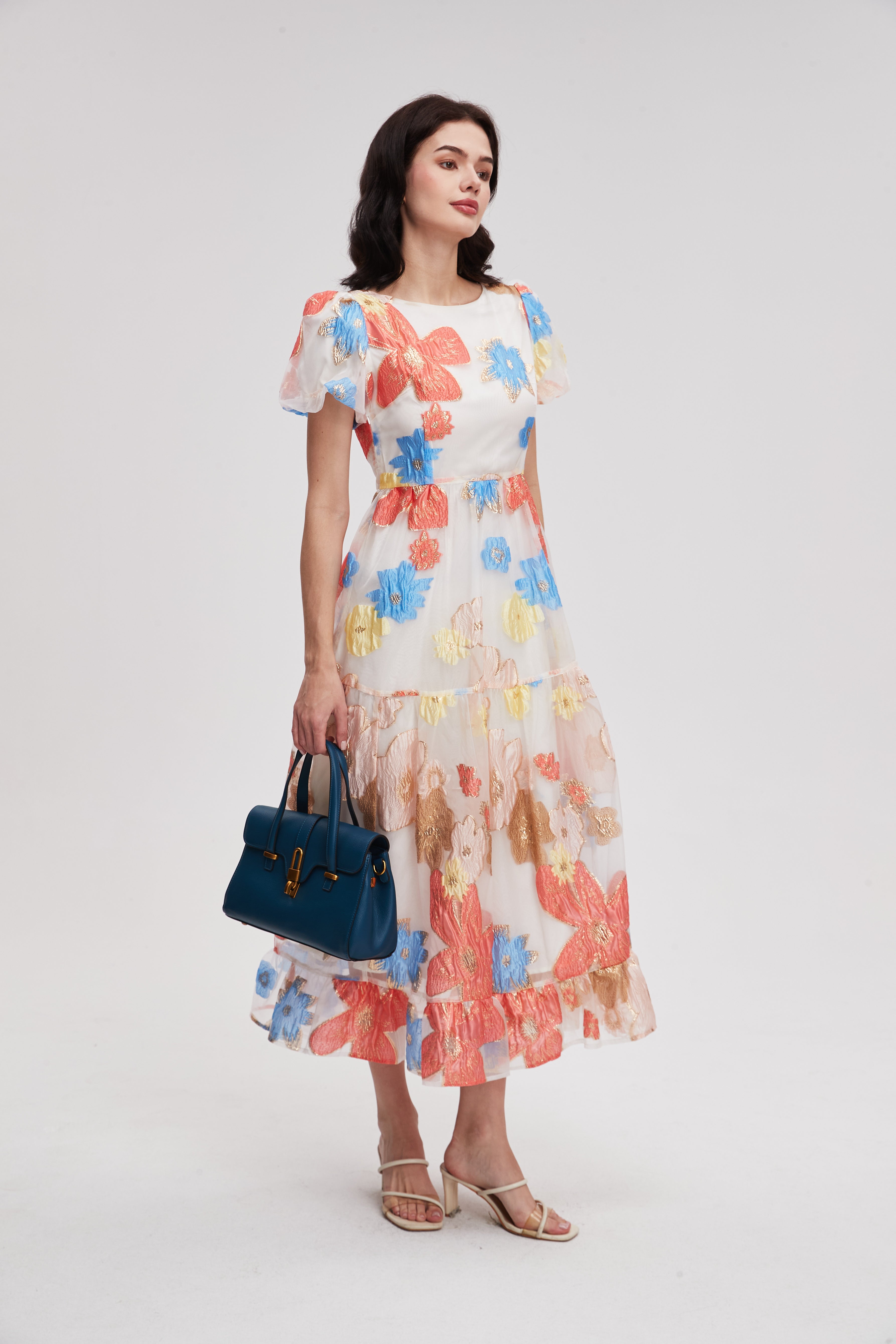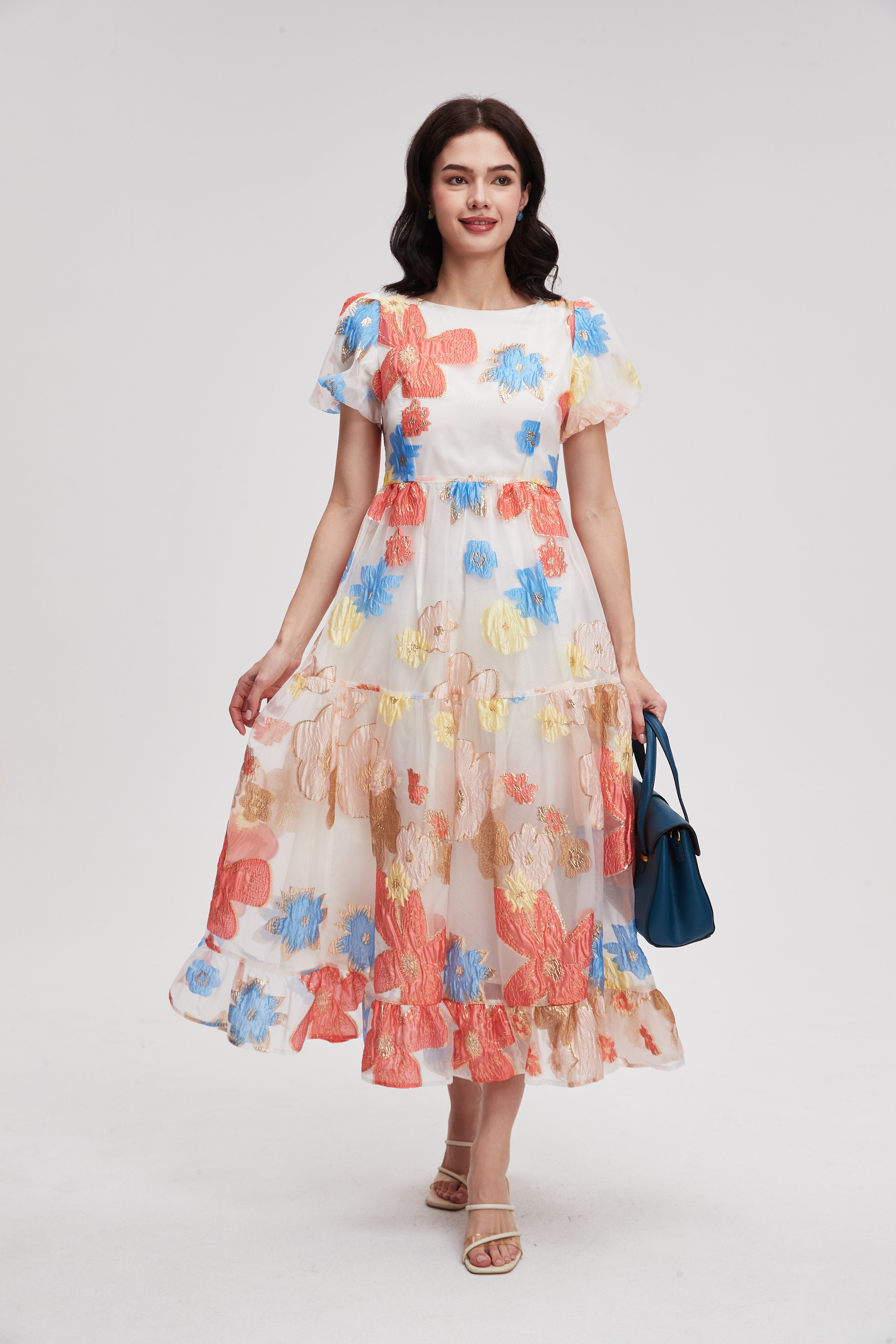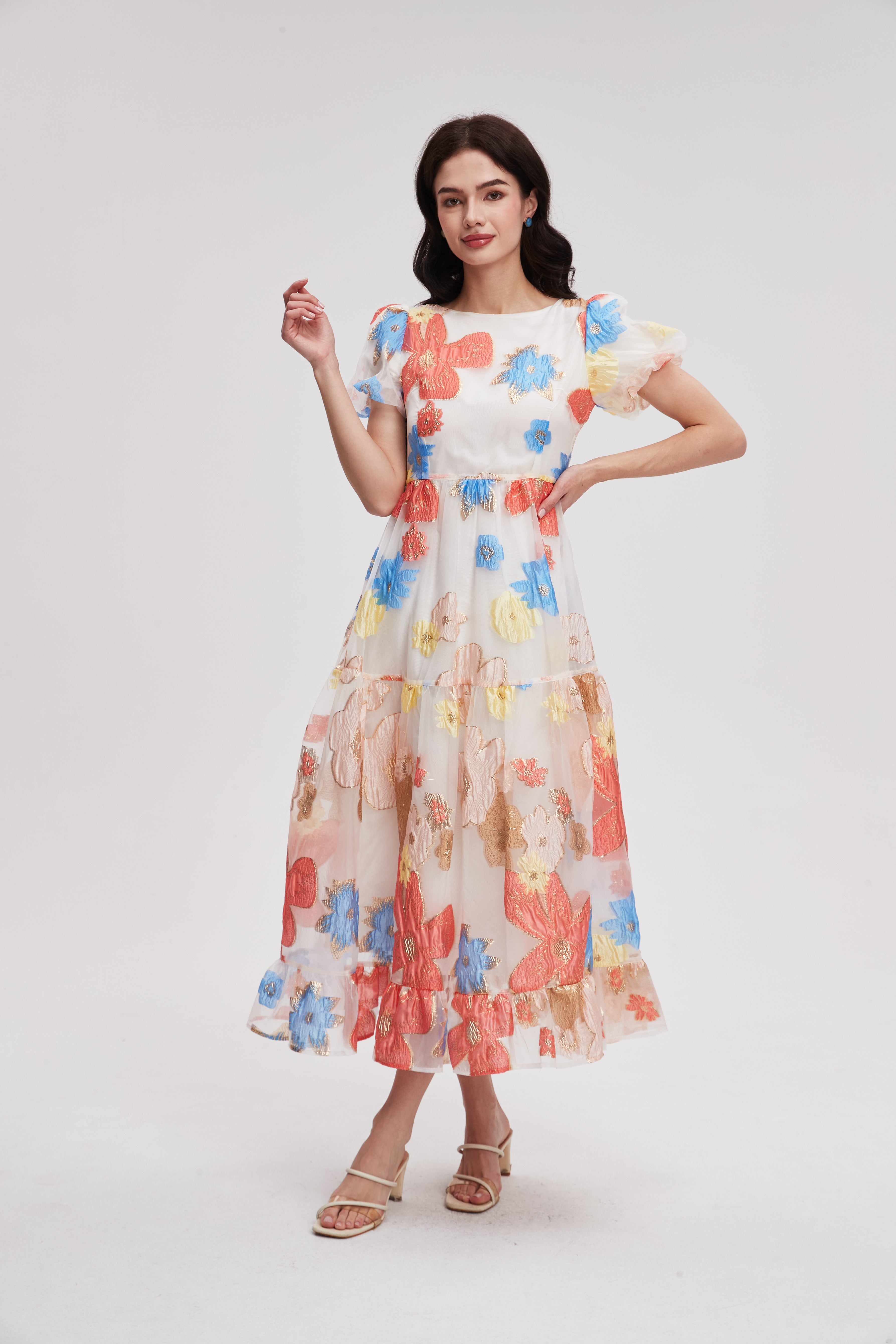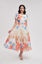 Floral Midi Dress with Short Sleeves