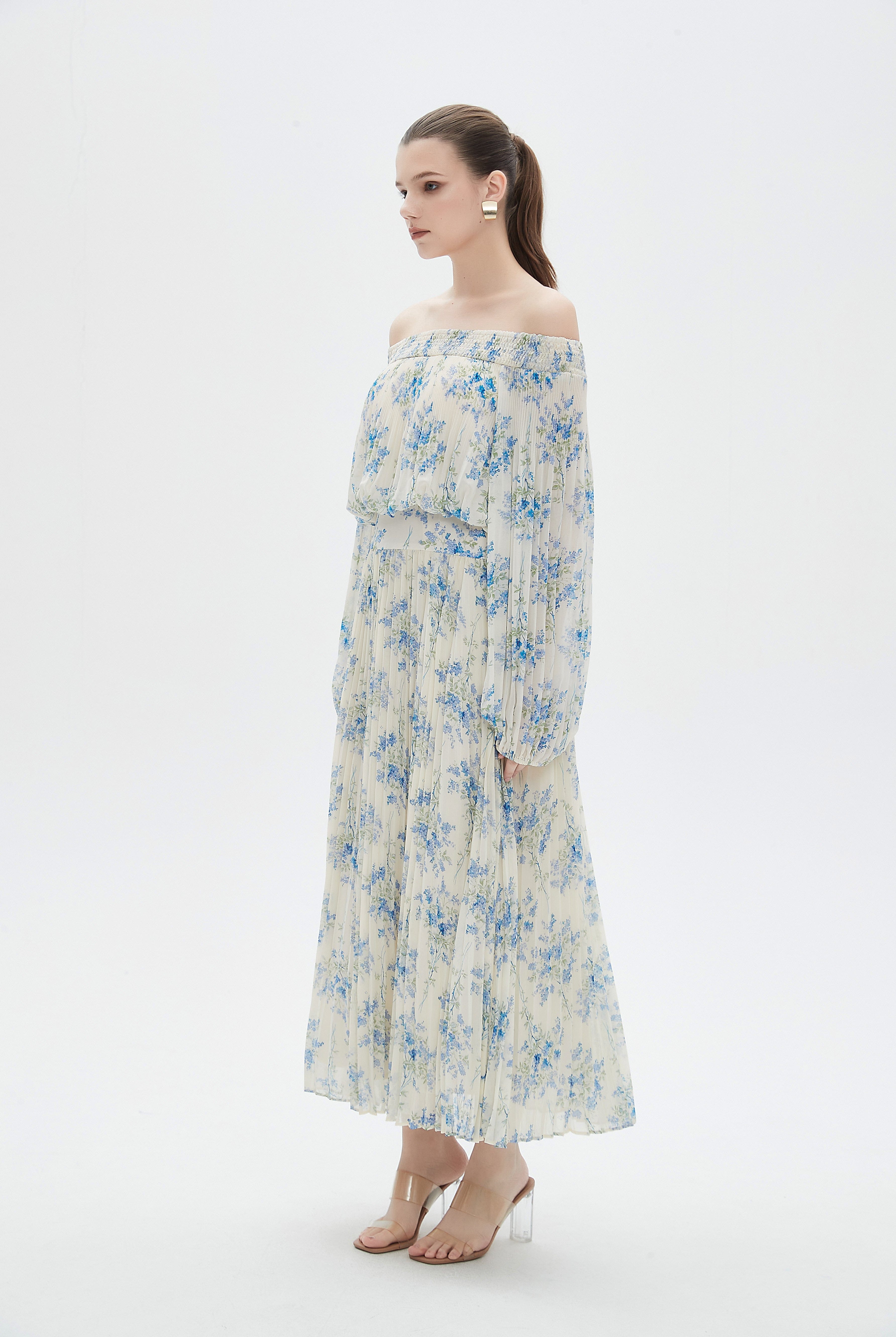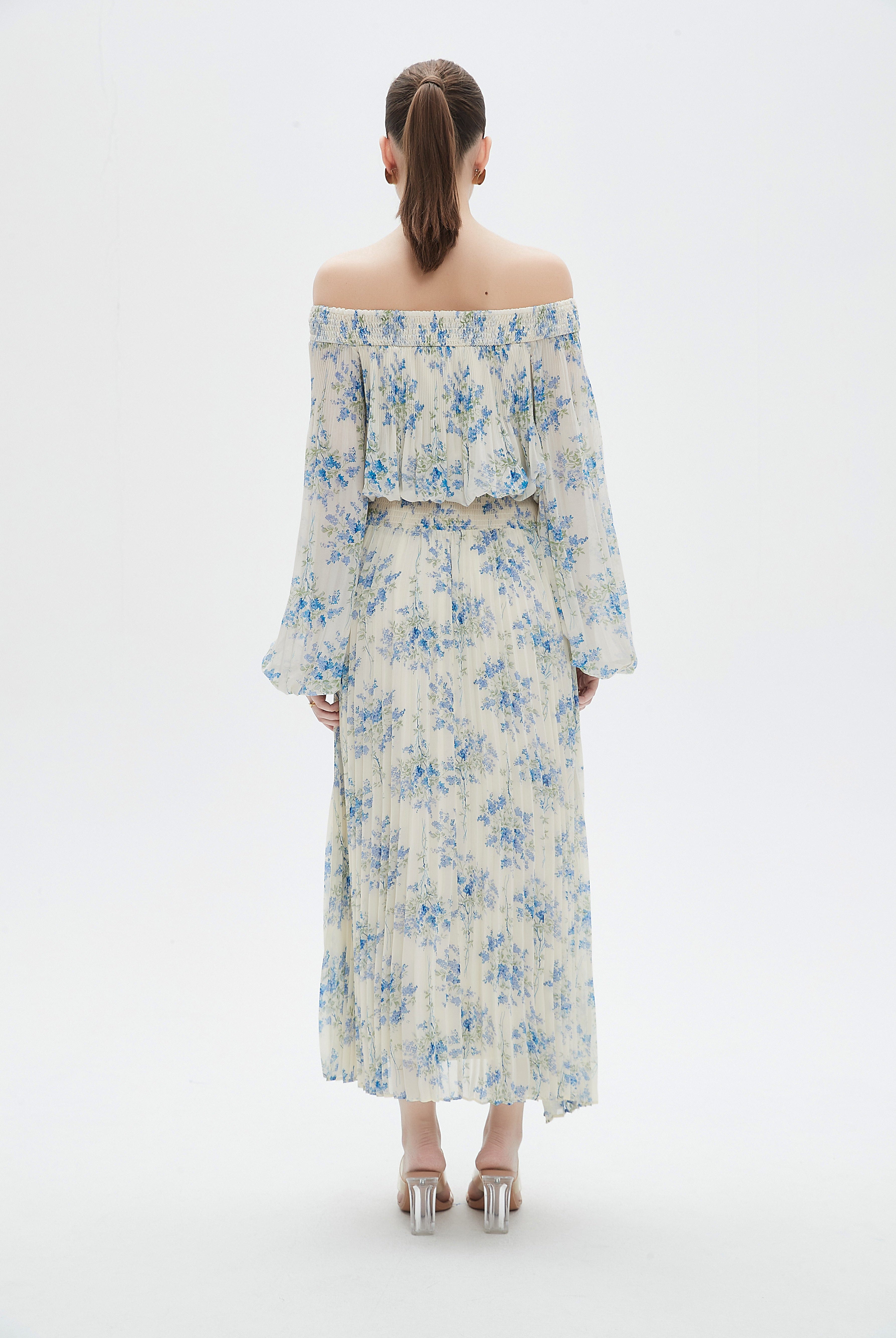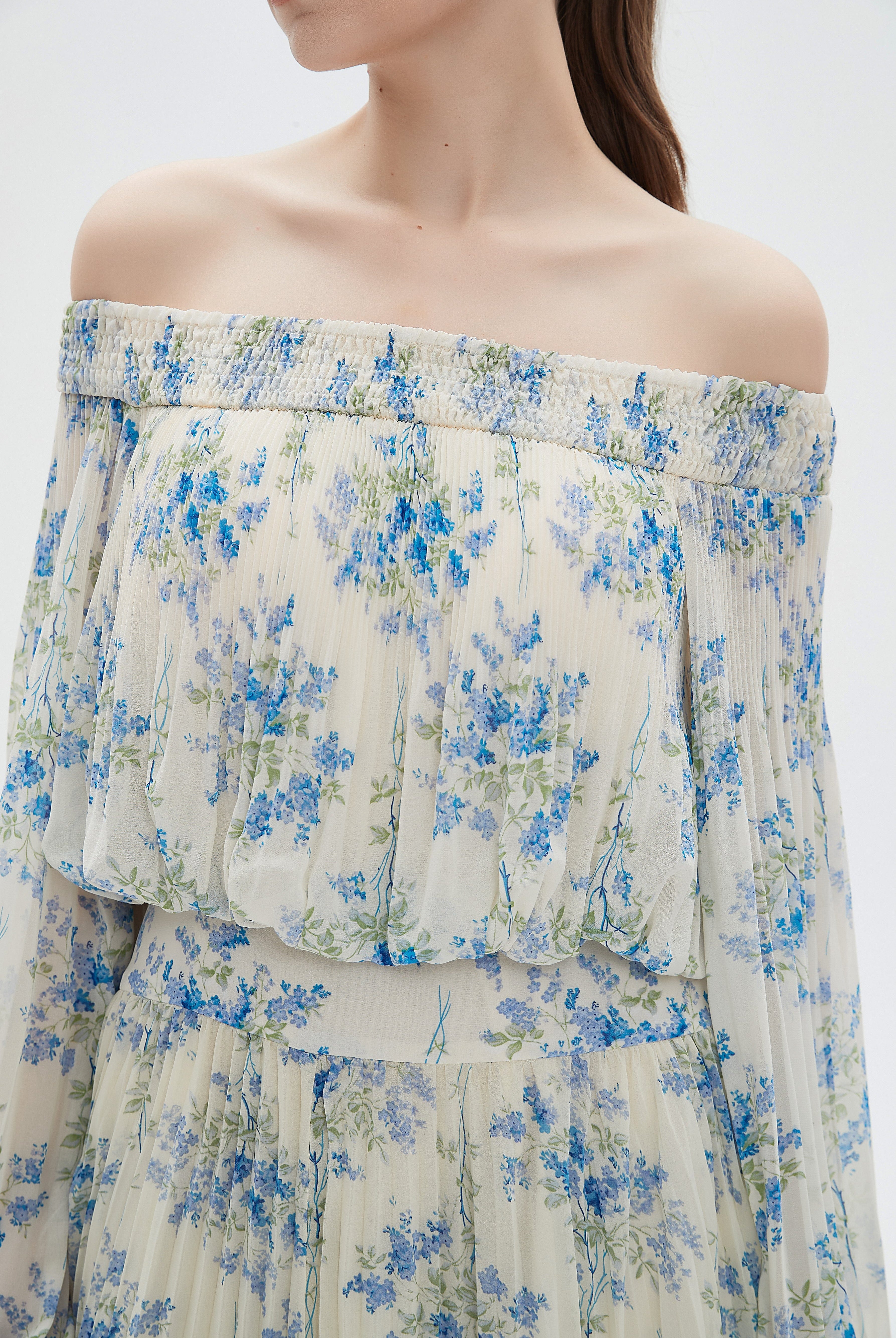 Floral Midi Dress with Chiffon Detail and Long Sleeves