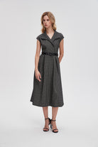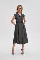 Midi Dress with Short Sleeves and Long Neckline