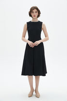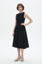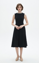 - Sleeveless design and round neck create a clean, feminine profile; unlined for lightweight comfort
