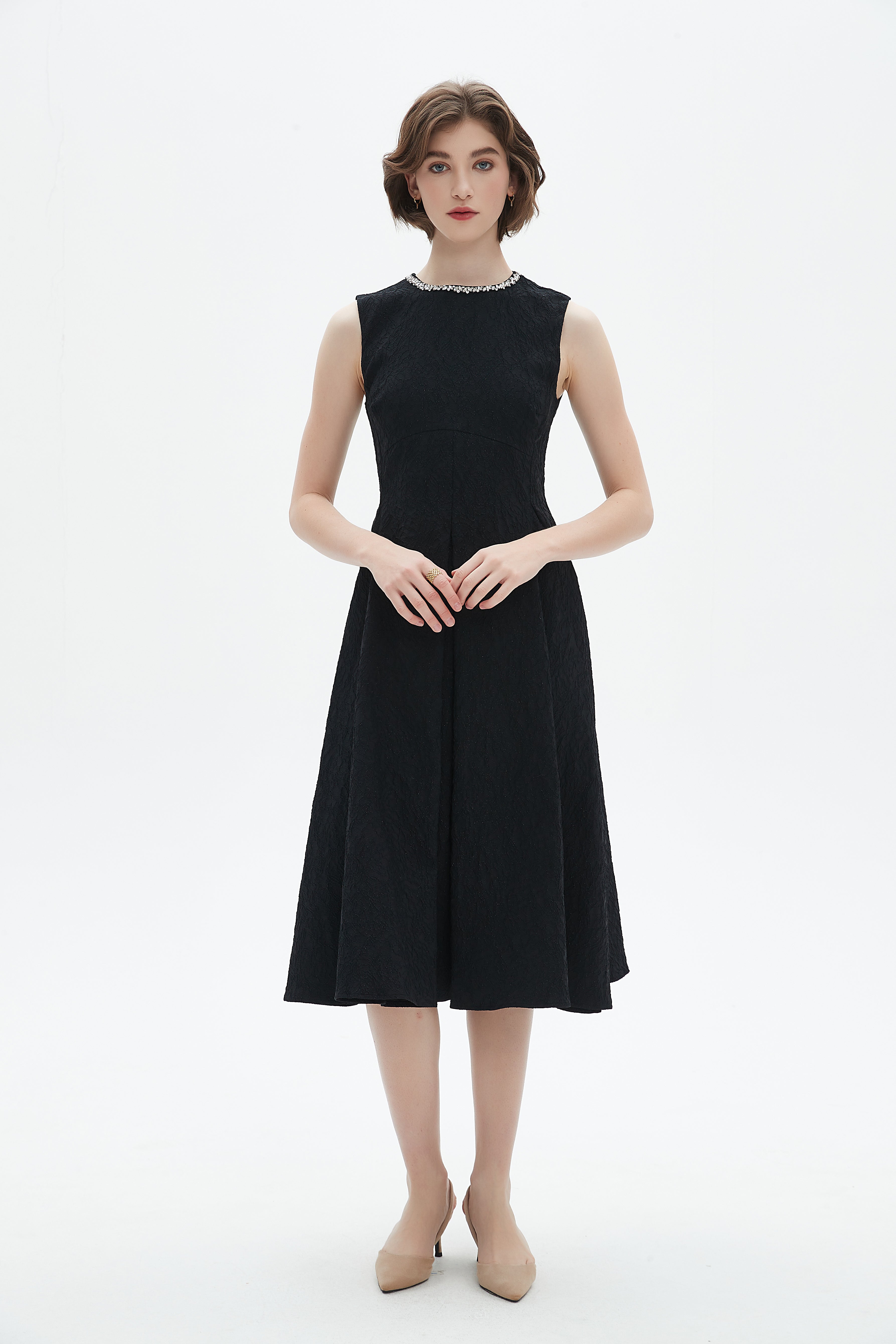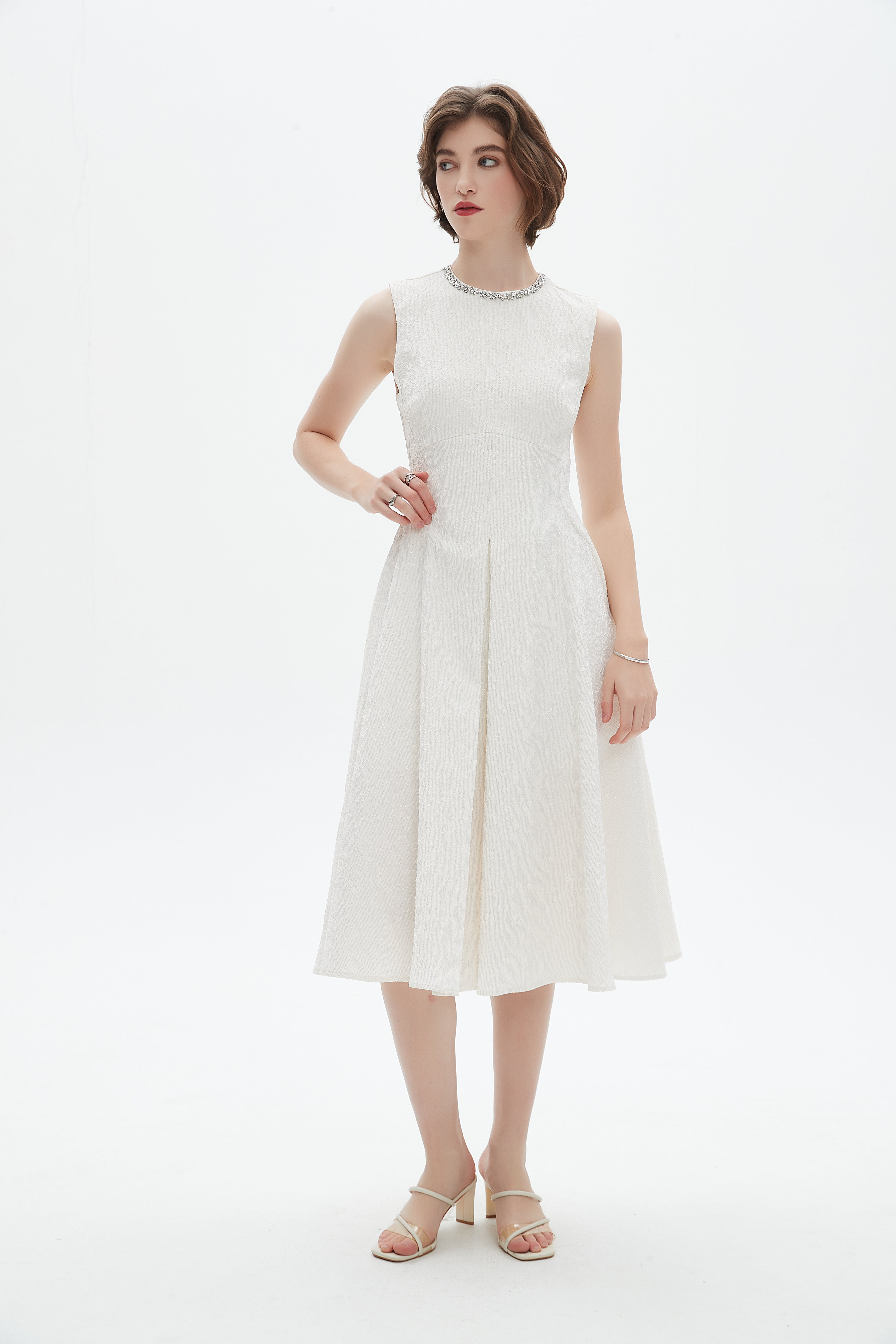 - Styling: Pair with strappy heels and statement earrings for evening events, or add a tailored blazer and pumps for formal daytime occasions. For a relaxed elegant look, wear with flat mules and a structured bag; layer a knit wrap or leather jacket in cooler seasons.