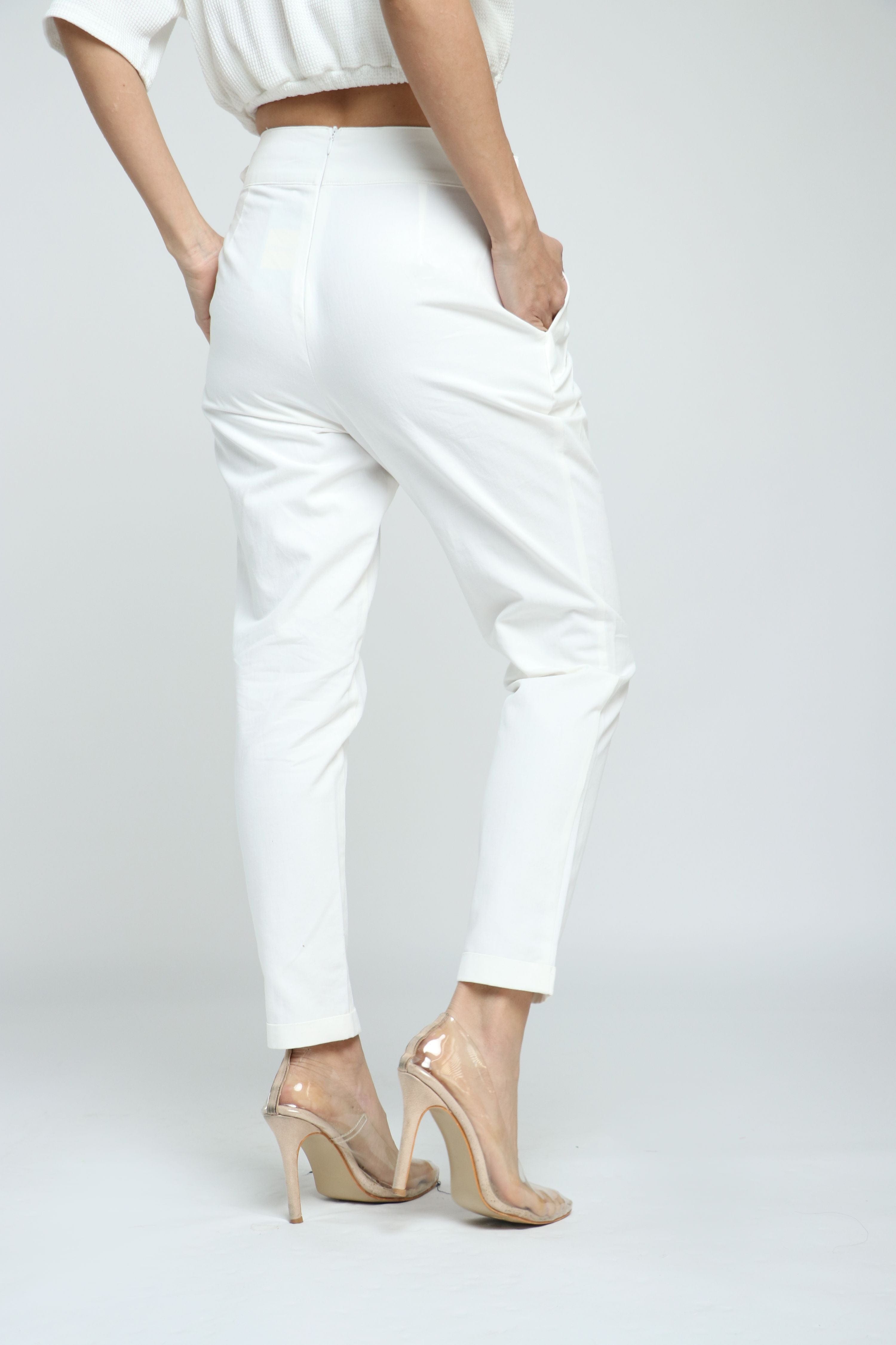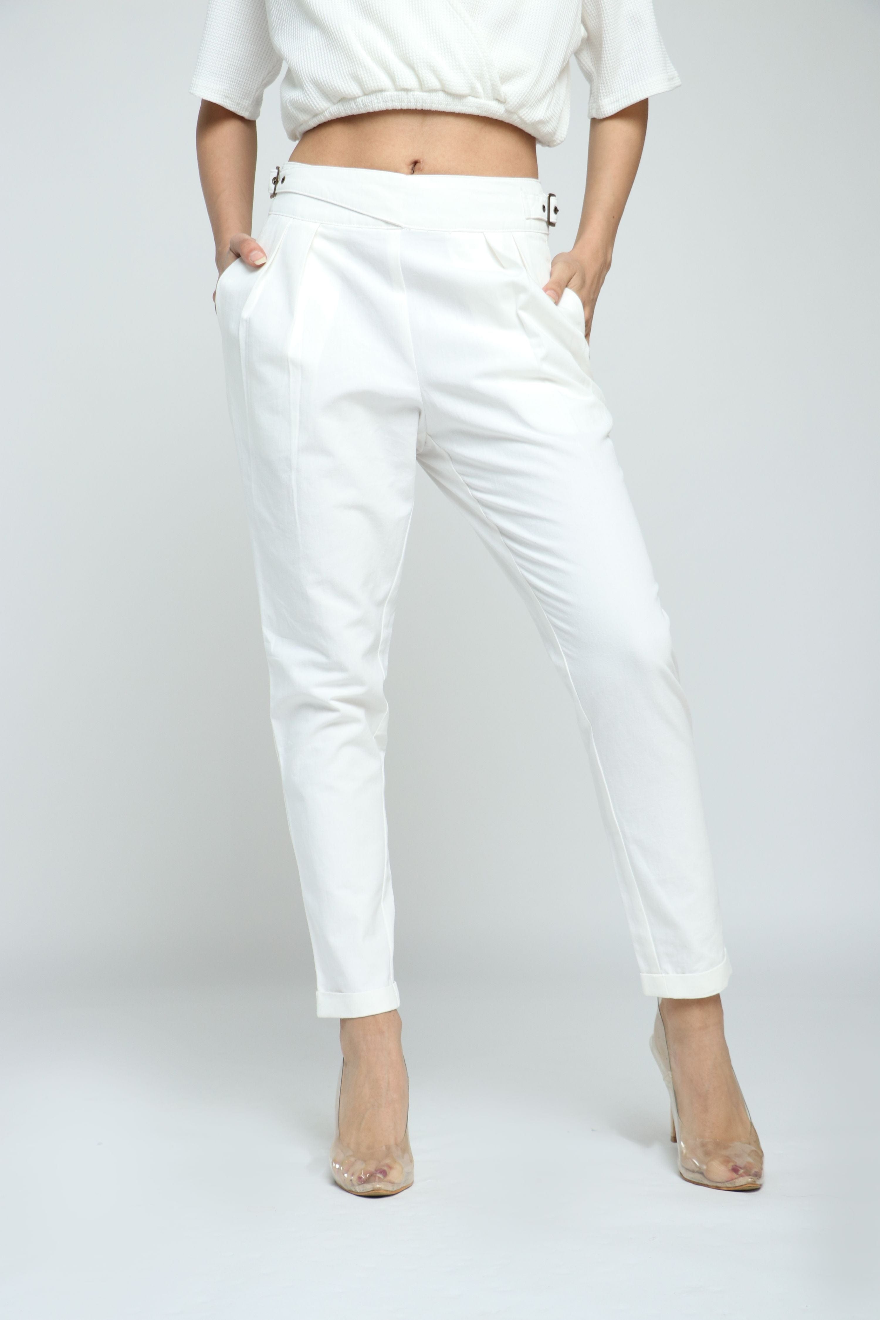 You can be dreamy, amazing, light, flexible, and always ready for what is coming, and on a daily basis, coordinate a highly official, formal, silver, white, and white waist pants with a different design through Fashion.
