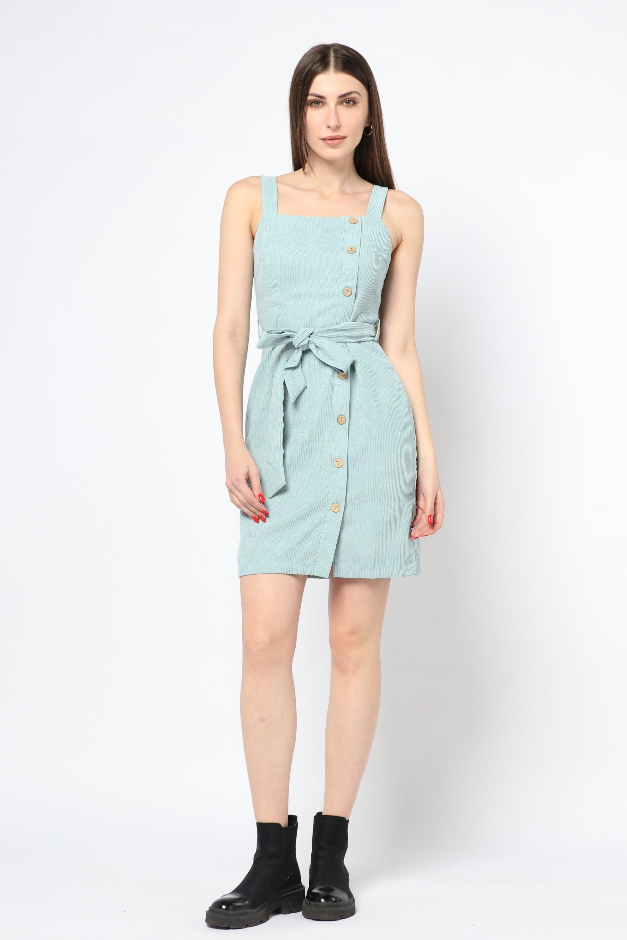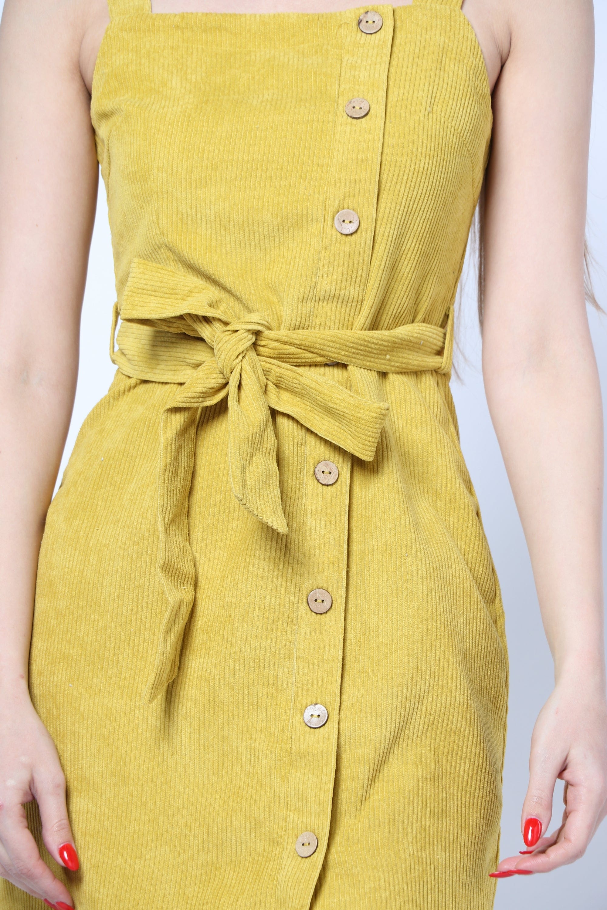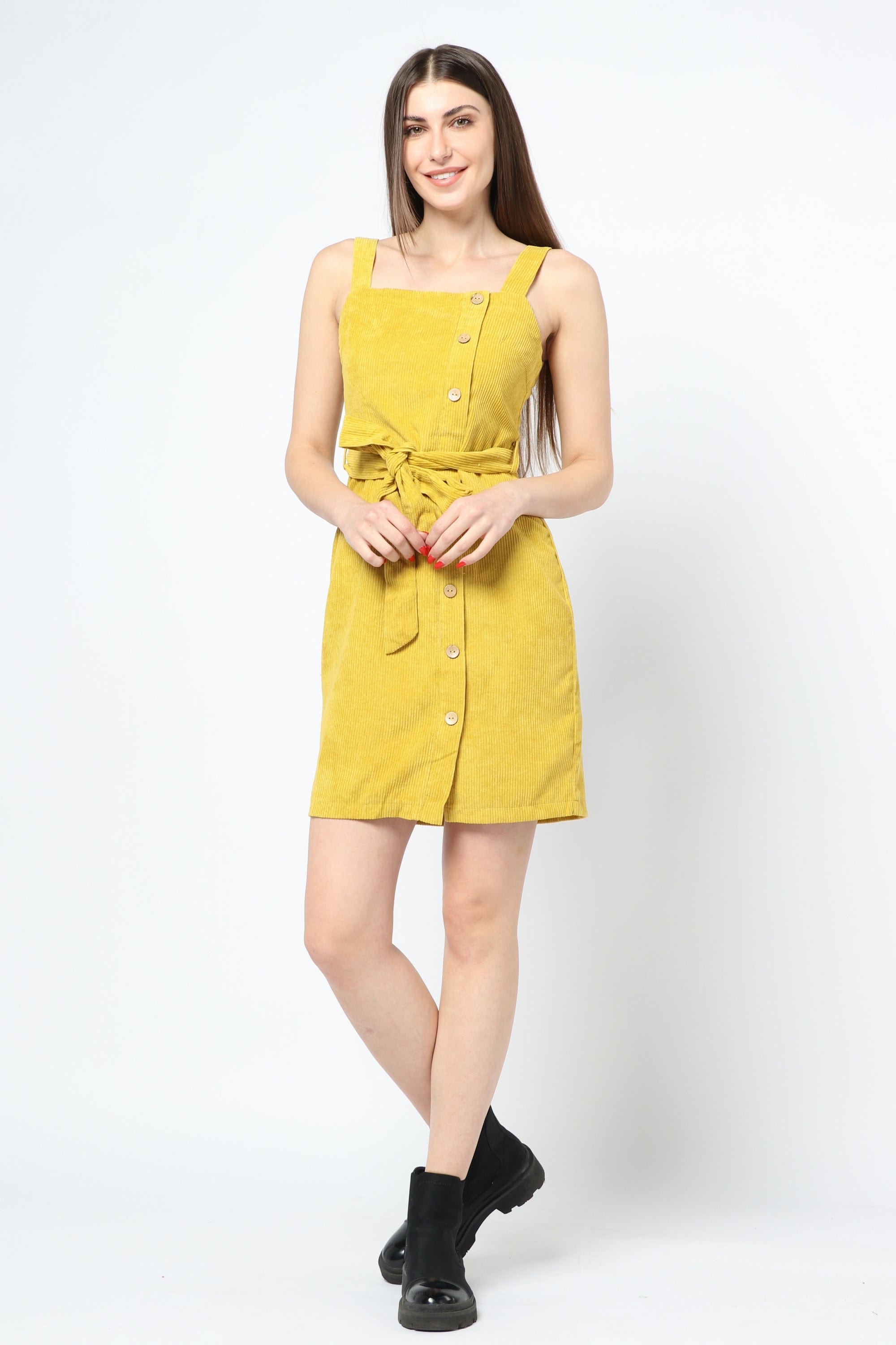This sunny yellow mini belted dress delivers playful polish for everyday moments with a flattering A-line silhouette and smart detailing. Cut from a medium-thickness fabric that provides structure with comfortable movement, the sleeveless design and thick straps balance coverage and breathability while a square collar frames the neckline for a modern finish. The buttoned front and included self-tie belt let you define the waist for a cinched or relaxed look, and the plain solid surface keeps styling effortless. Short length gives a youthful, casual edge ideal for spring and autumn wear — perfect for weekend brunches, city strolls, or laid-back office days when layered. Discover this youthful piece from Fashion SA and add instant sunshine to your casual wardrobe — shop now for everyday versatility.