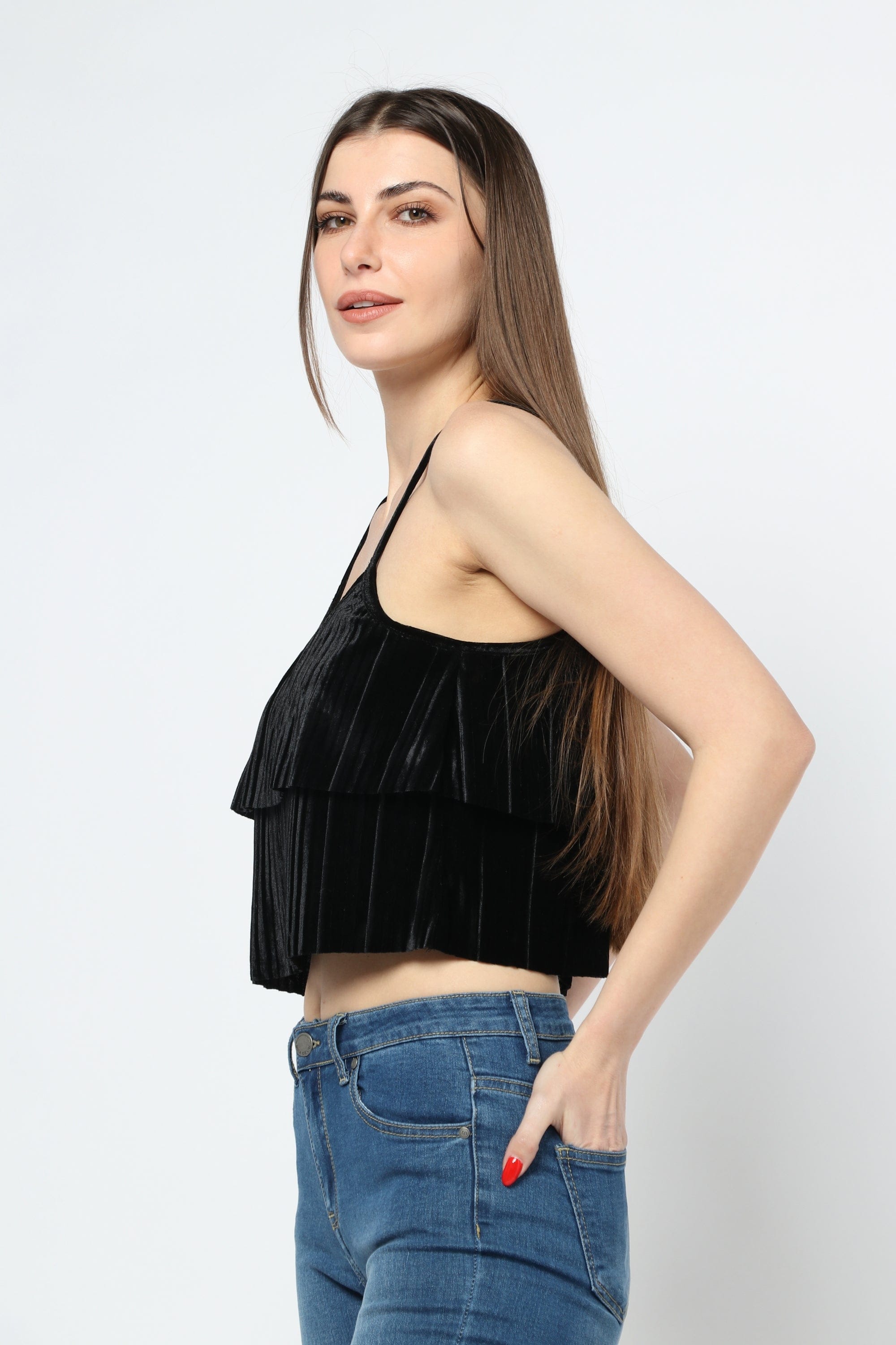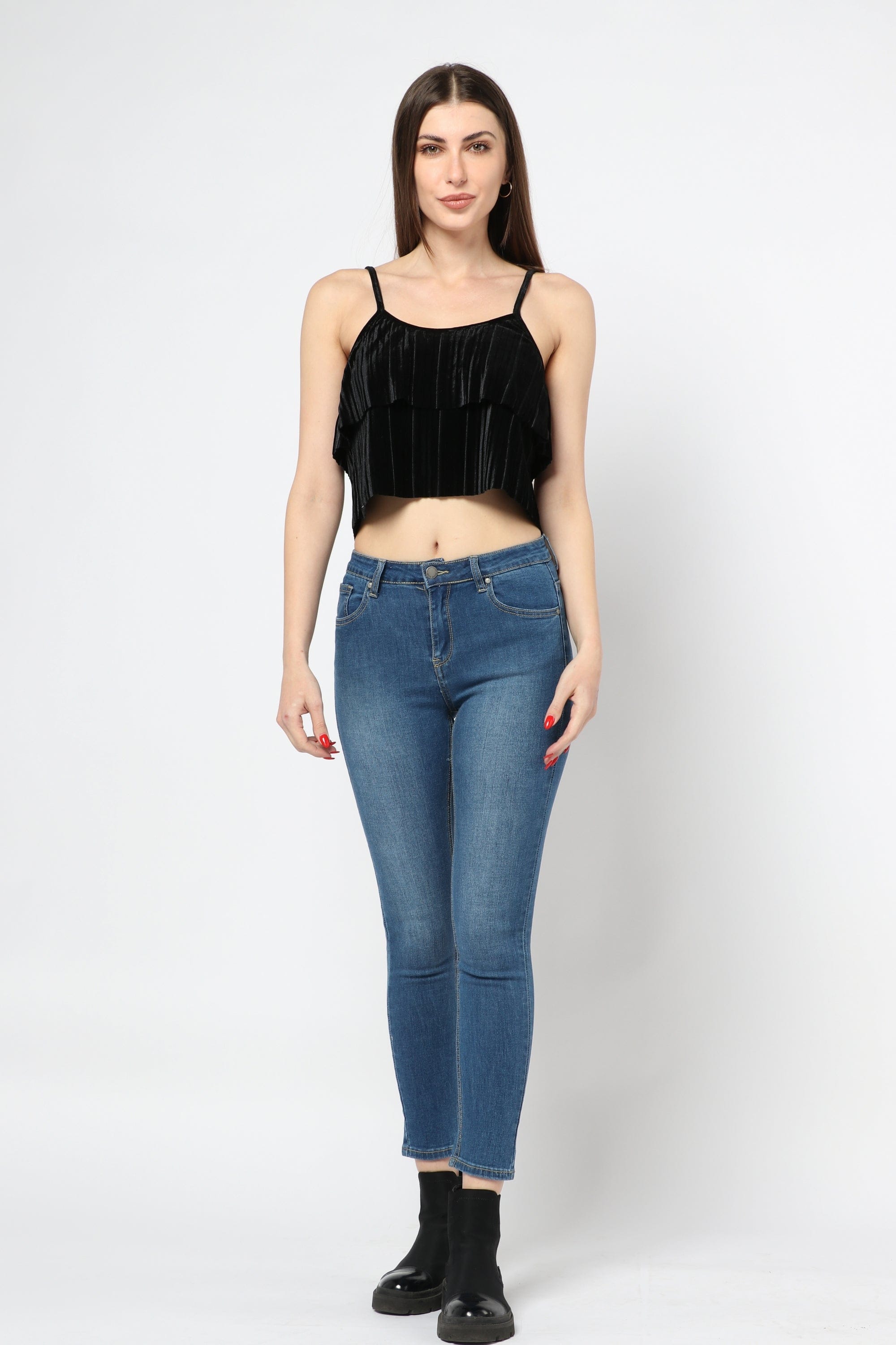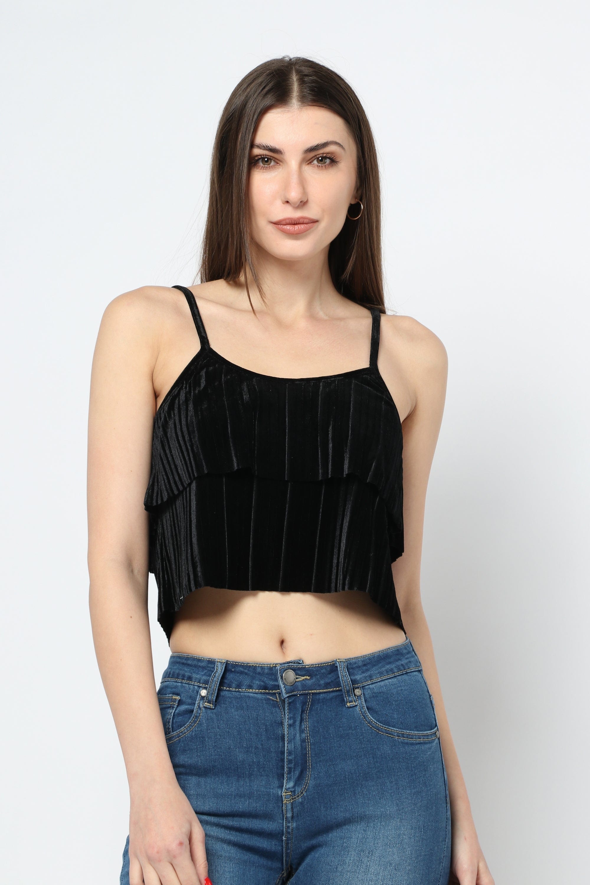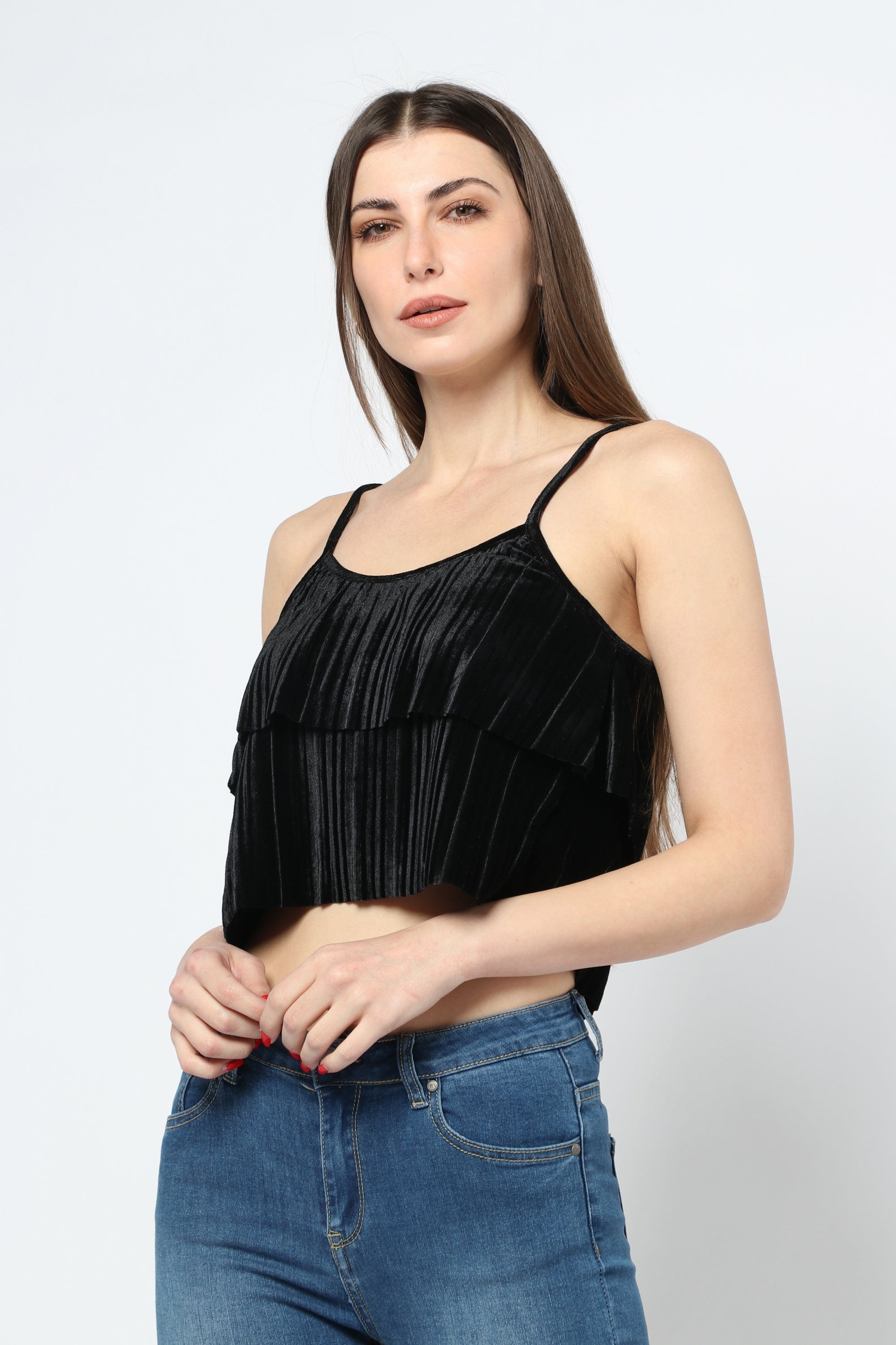 Black Cropped Strappy Top