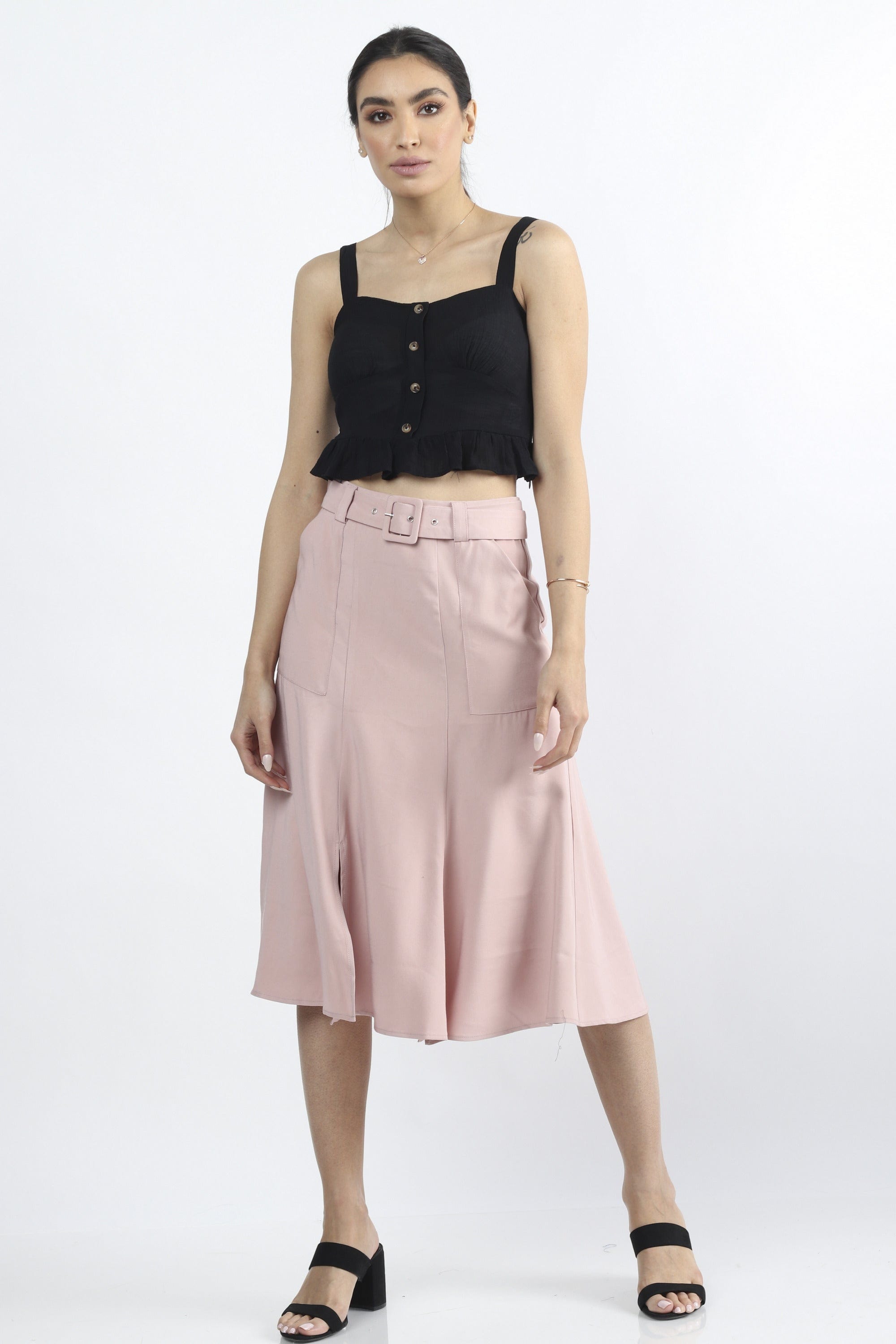 Get ready for a stylish and modern look with a wide waistband midi skirt with pockets from Kitschen. This skirt is designed in a sleek and unique silhouette, and features a wide waistband that enhances the figure. Made of high-quality material to ensure comfort and durability. Wear this skirt to formal occasions or parties, and it will add a feminine touch to your look. Available in black and pastel pink, you can choose the color that suits your taste. Get now a midi skirt with a wide waistband with pockets from Kitschen And get ready to shine in style. Order it now and enjoy the shopping experience through Fashion KSA! Product Number: 66-0039