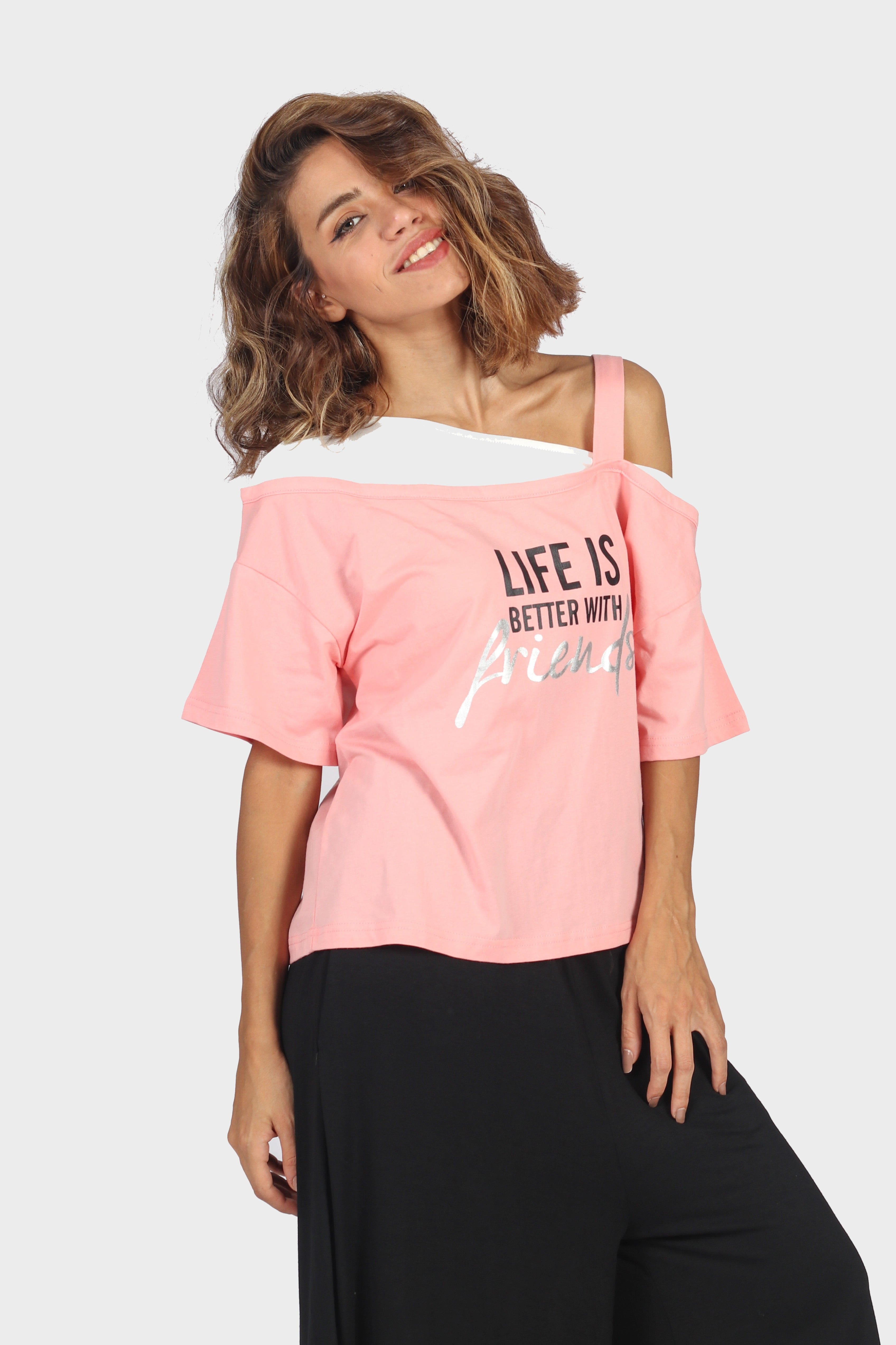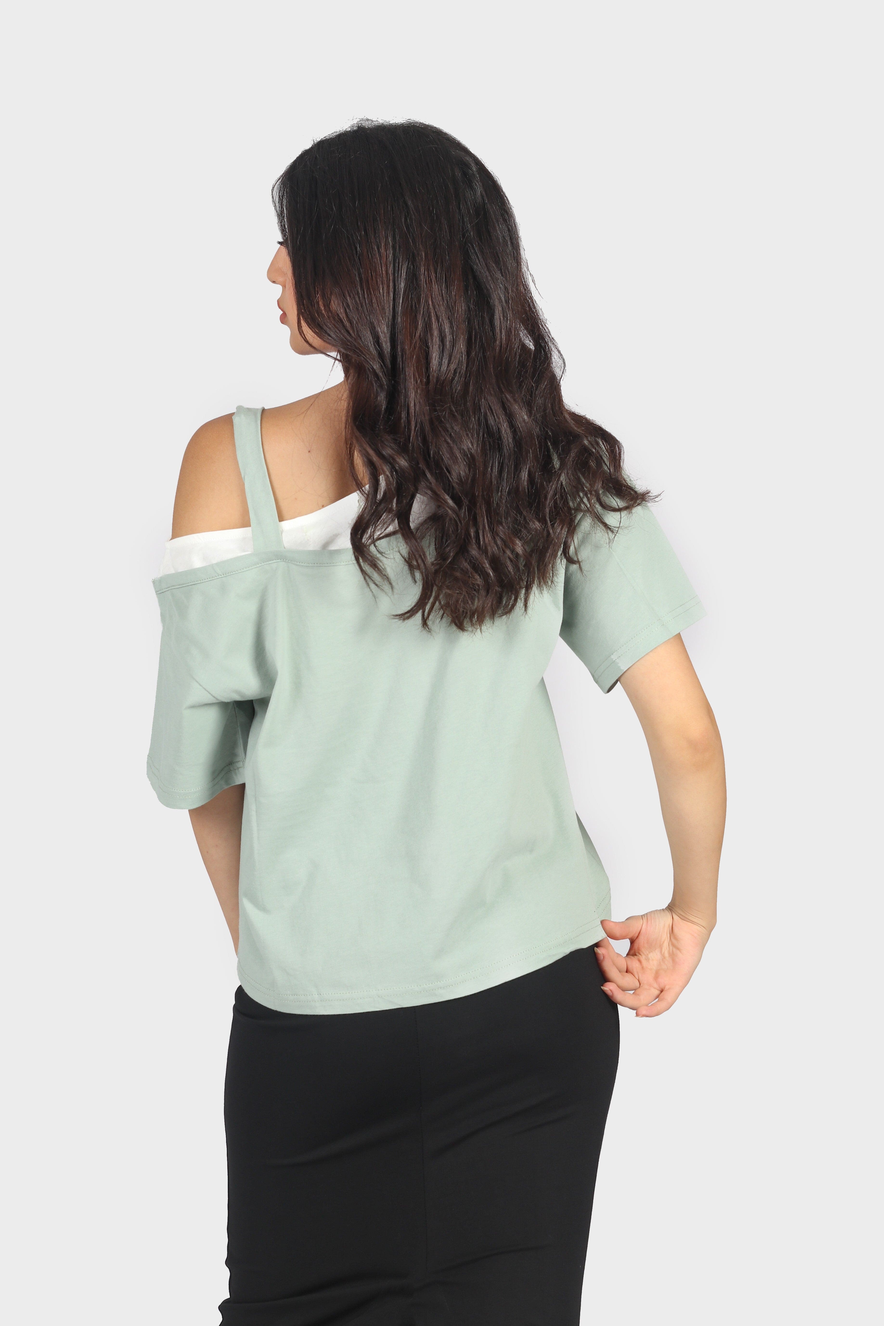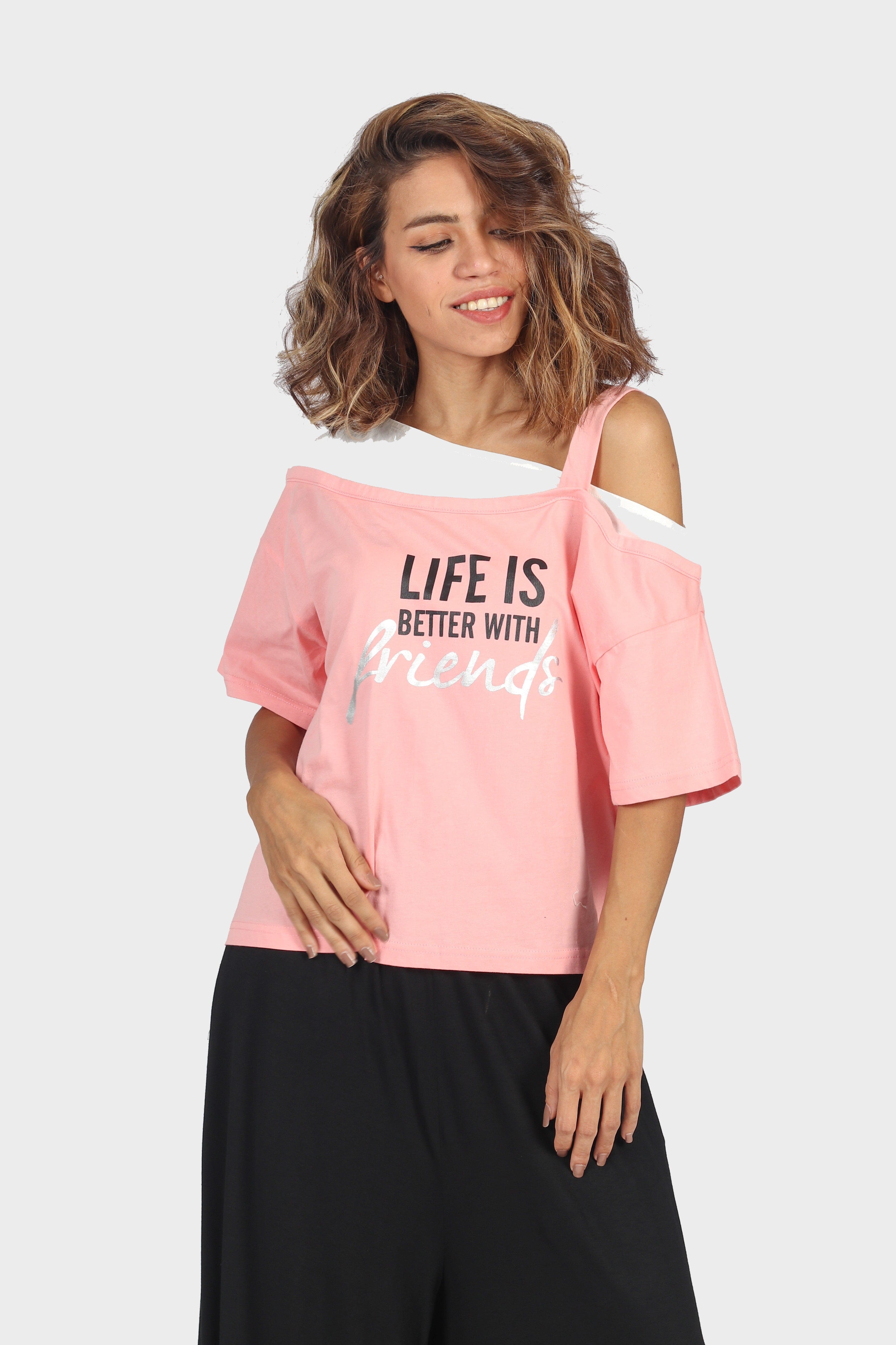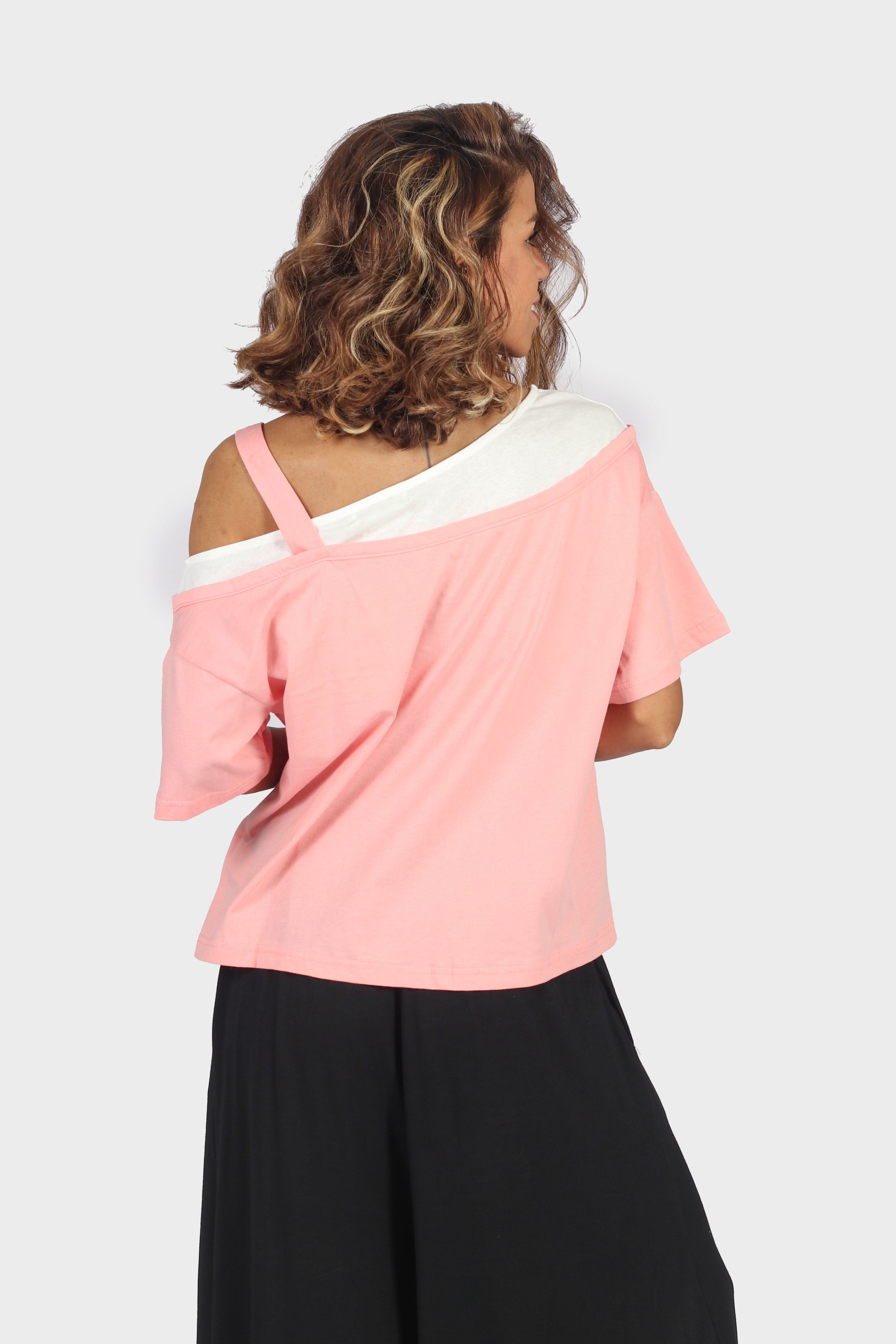 Printed Drop-Shoulder Half-Sleeve Top