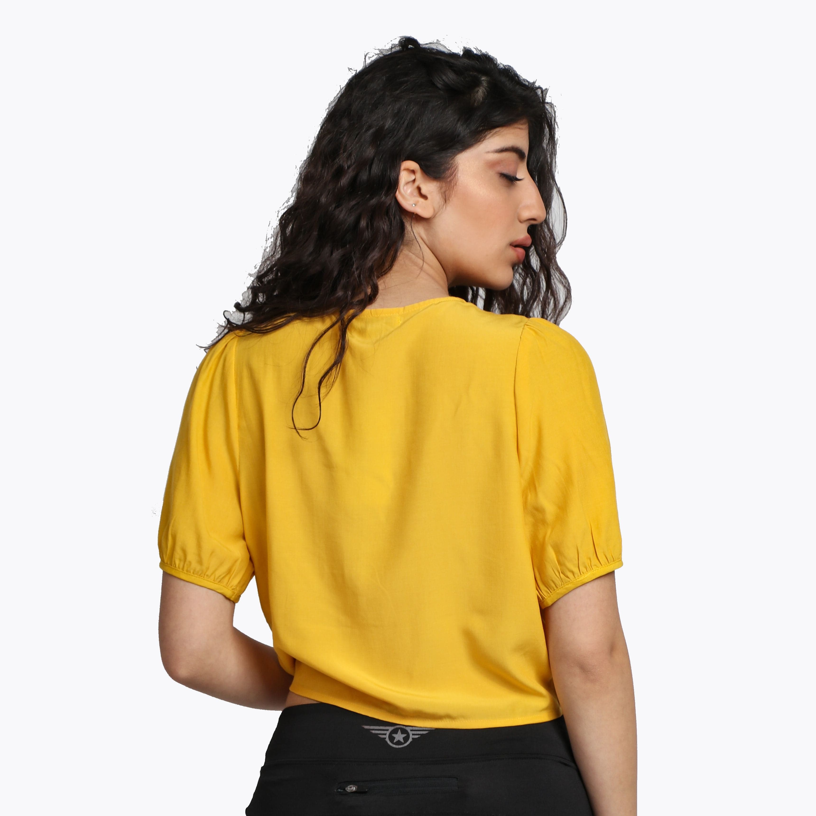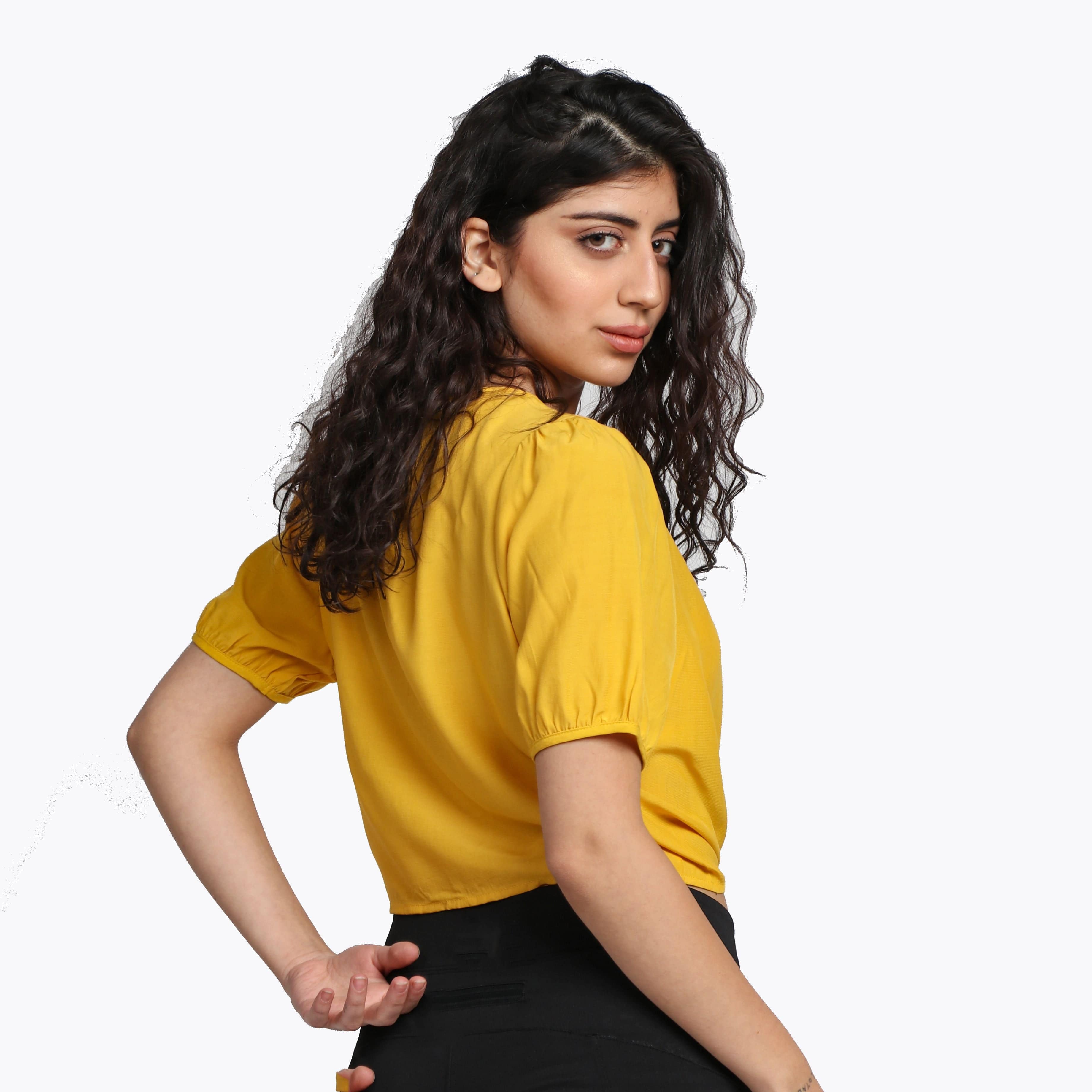 Enjoy the atmosphere of modern fashion with a cherub Top blouse with a front tie decorated with the buttons of women's text from Mica. This blouse is available in an elegant and magical design that gives a touch of beauty to your look. It comes with a front tie decorated with buttons to enhance elegance and femininity. Made of the finest materials to provide comfort and quality. The Crop -Top Blouse is available with a front tie decorated with the texts of the text of the women in amazing colors such as black and yellow to meet all tastes. Get it now and glow on every occasion. Ask it now via Fashion Saudi Arabia and enjoy a distinctive and modern look. Product number: Mol0138-20Q304