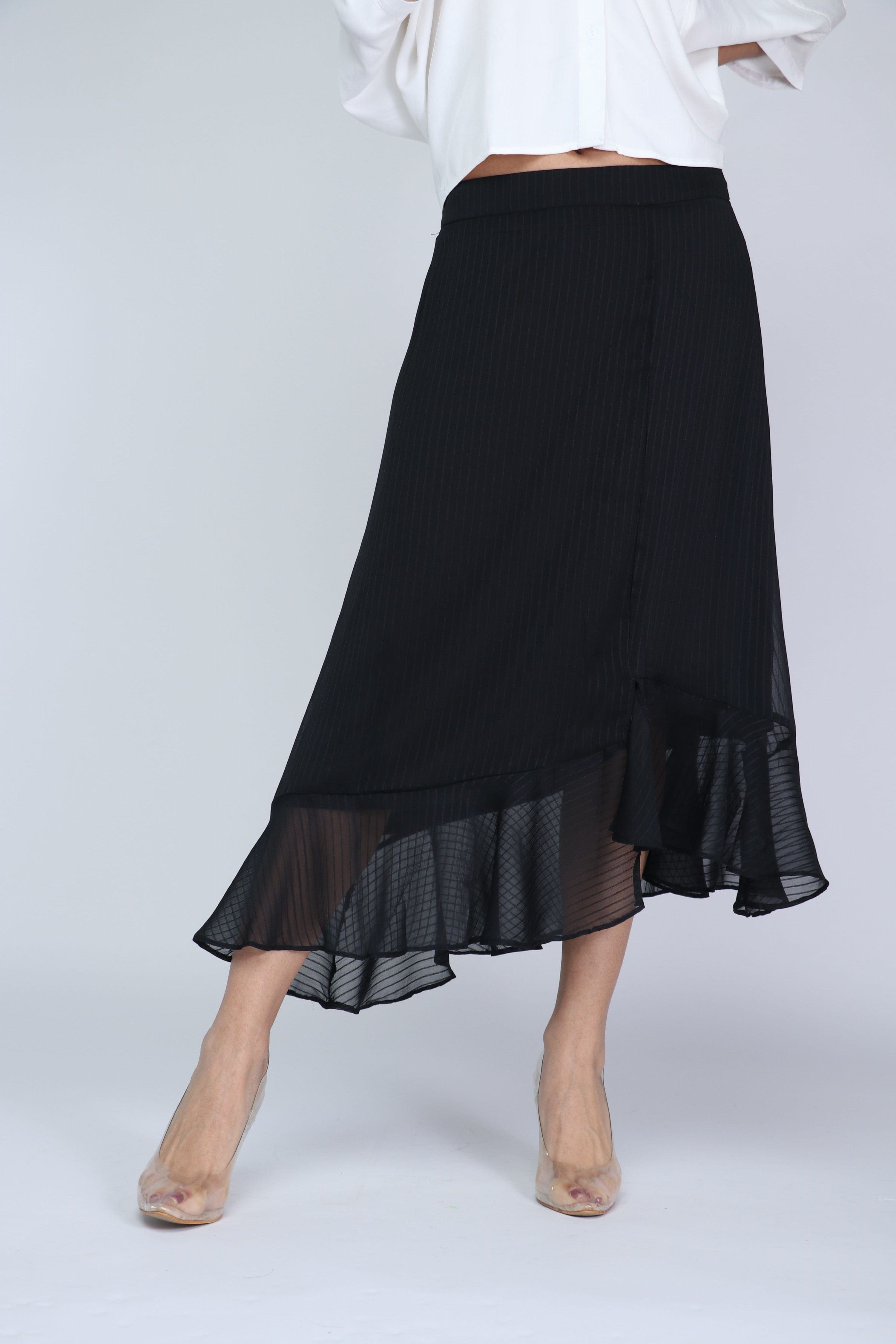 Woven Midi Skirt with Asymmetrical Cut