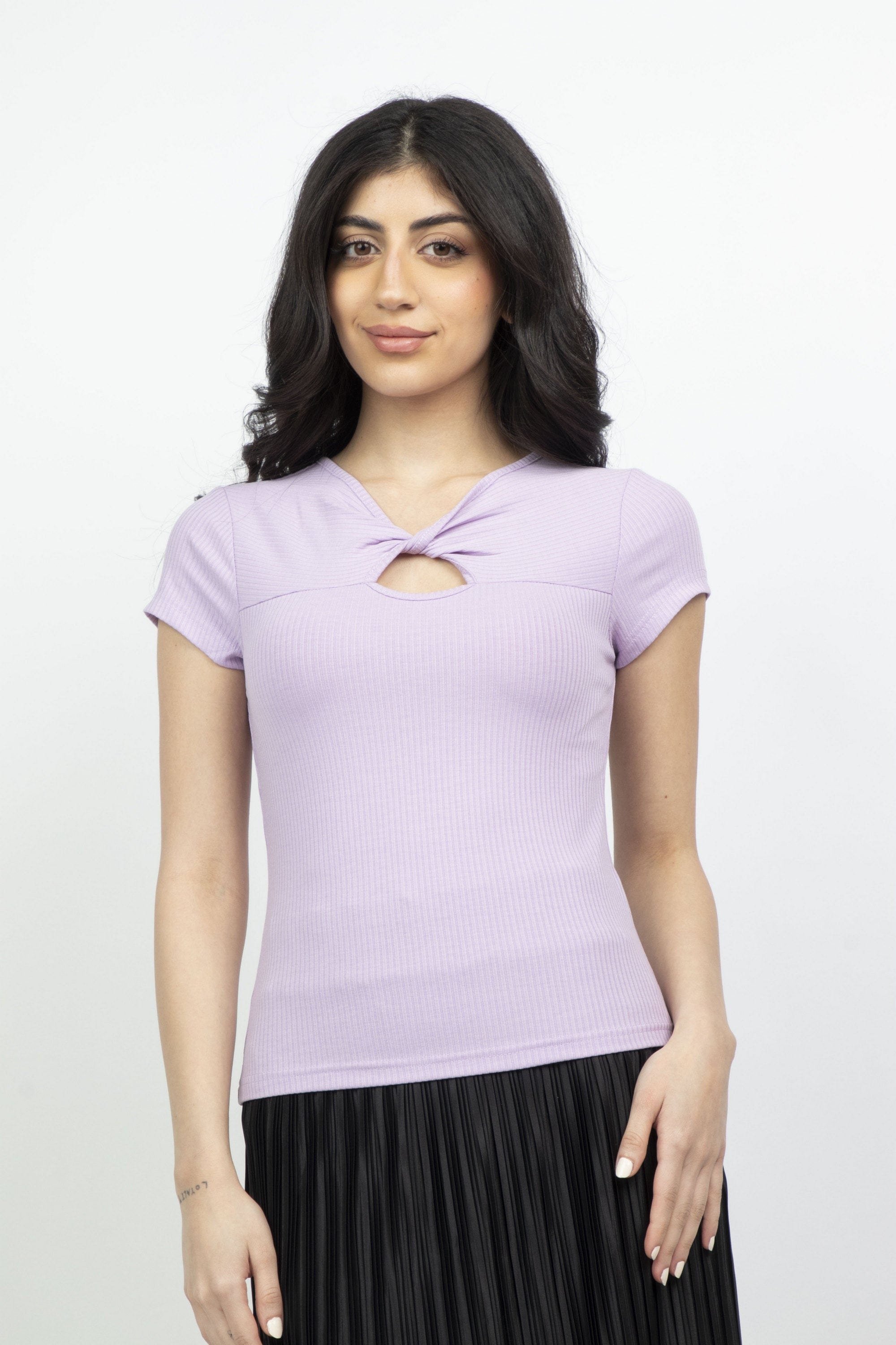 Dying in the splendor of fashion with a plain blouse with a bow and front hole. Mica. This elegant blouse is available in three different colors, black, purple and light yellow. This blouse is designed with unique elegance and feminine details such as the elegant bow and the front hole that gives an aesthetic touch to the look. This classic style features short sleeves and a comfortable story that guarantees comfort throughout the day. Choose the color that fits your taste and enjoy a great look on any occasion. Now get a plain blouse with a bow and front opening of a short woman Mica Enjoy unparalleled elegance. Ask now via Fashion Saudi Arabia. Product number: mzx0216-22Q304