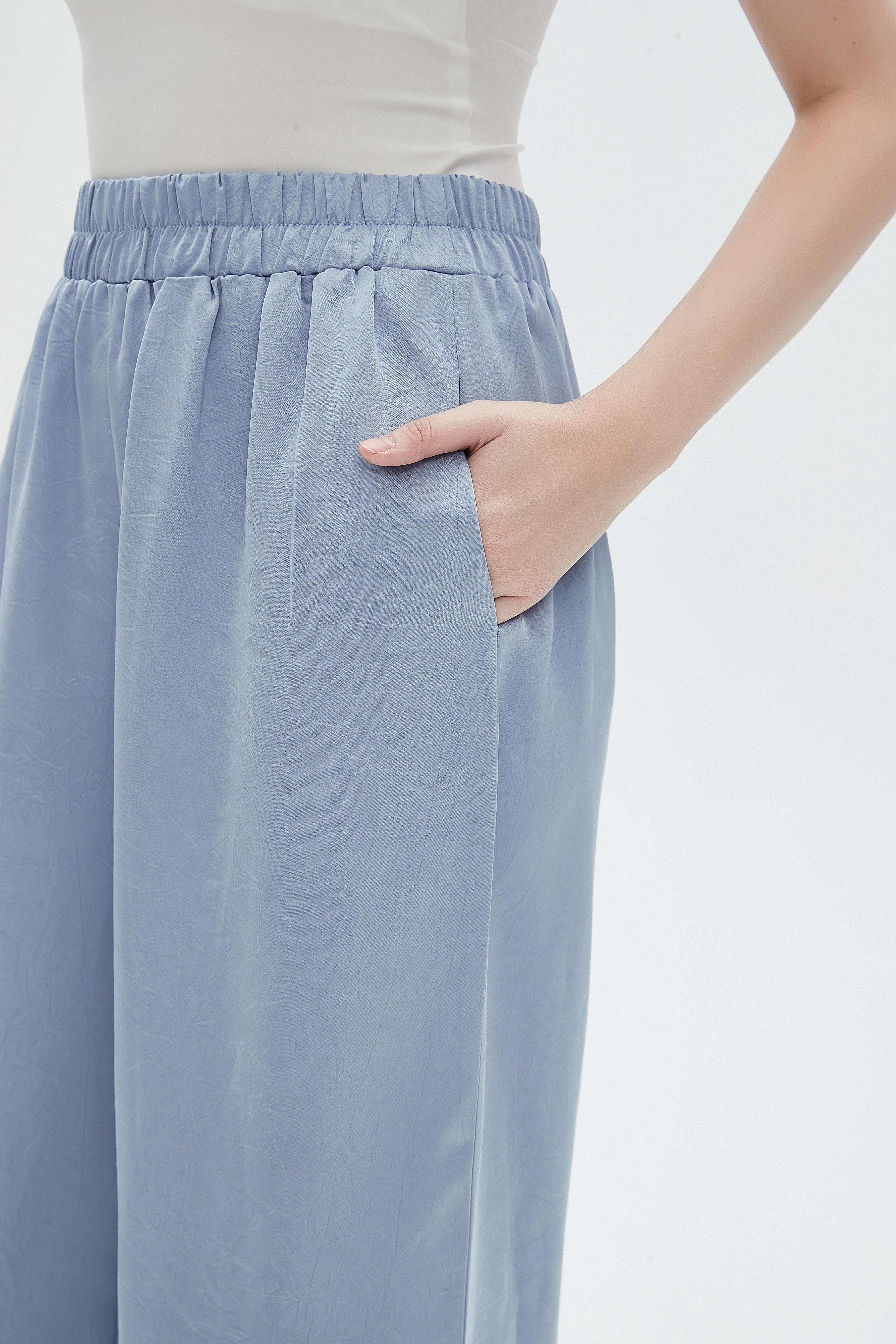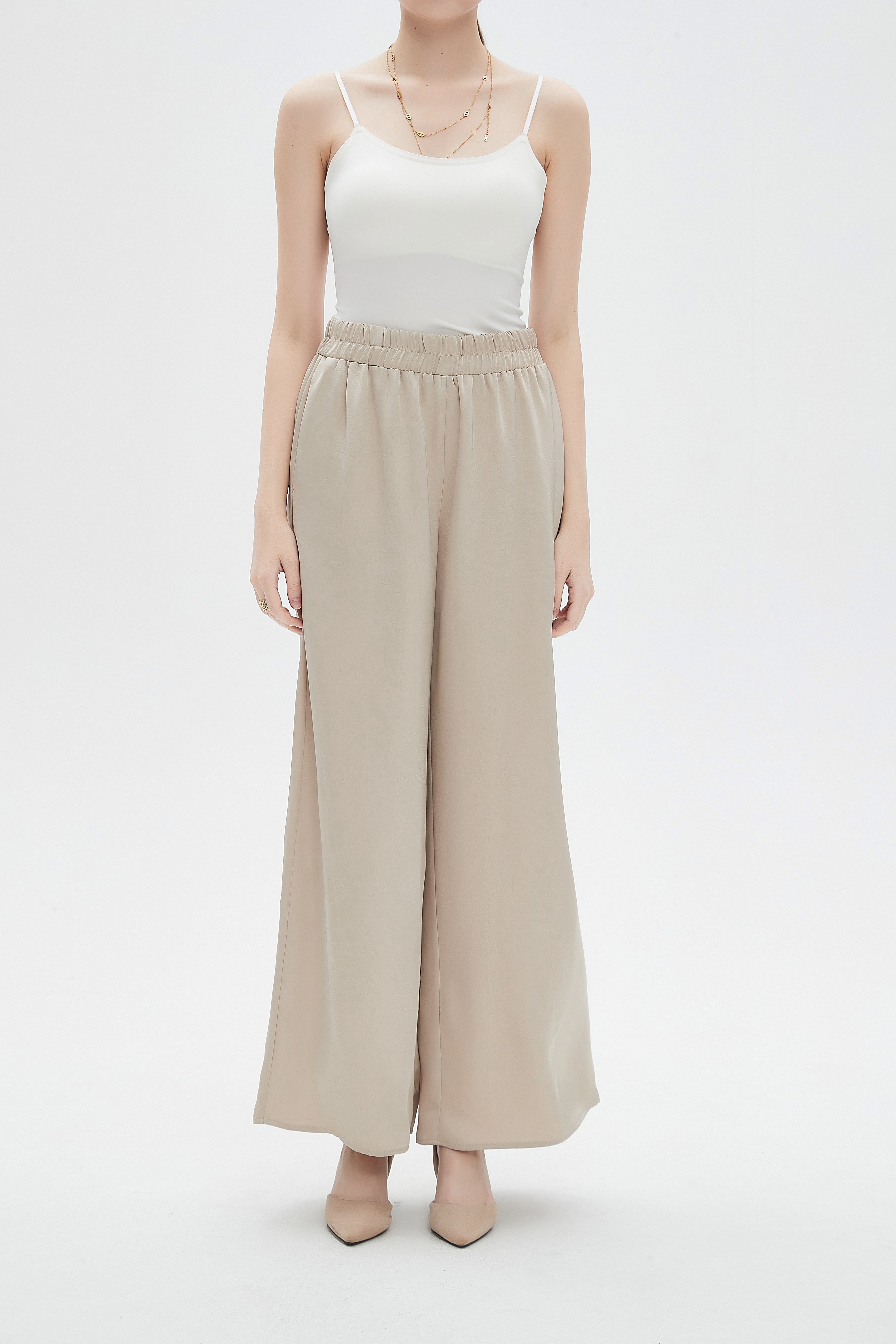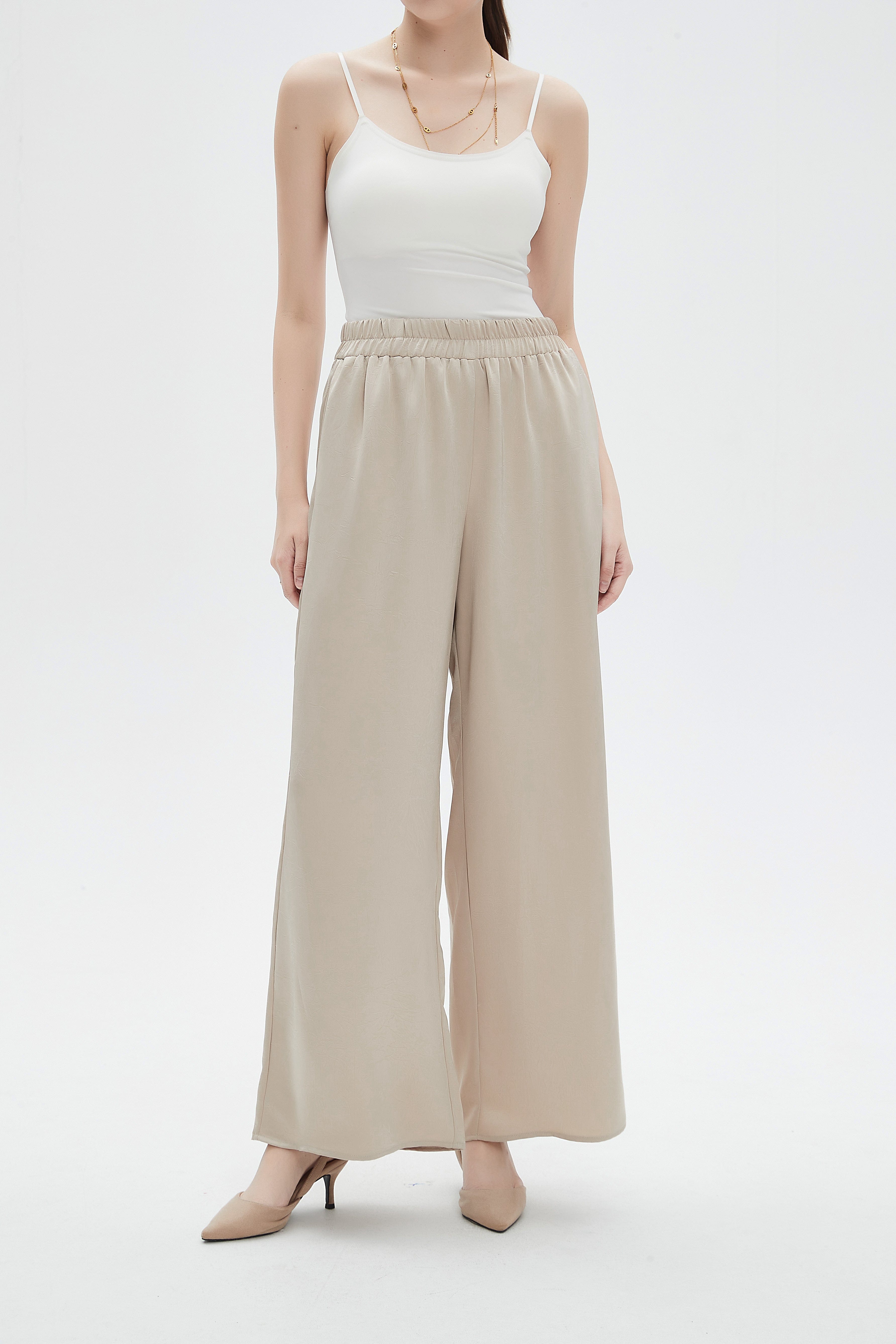 Solid High-Waist Wide-Leg Pants