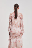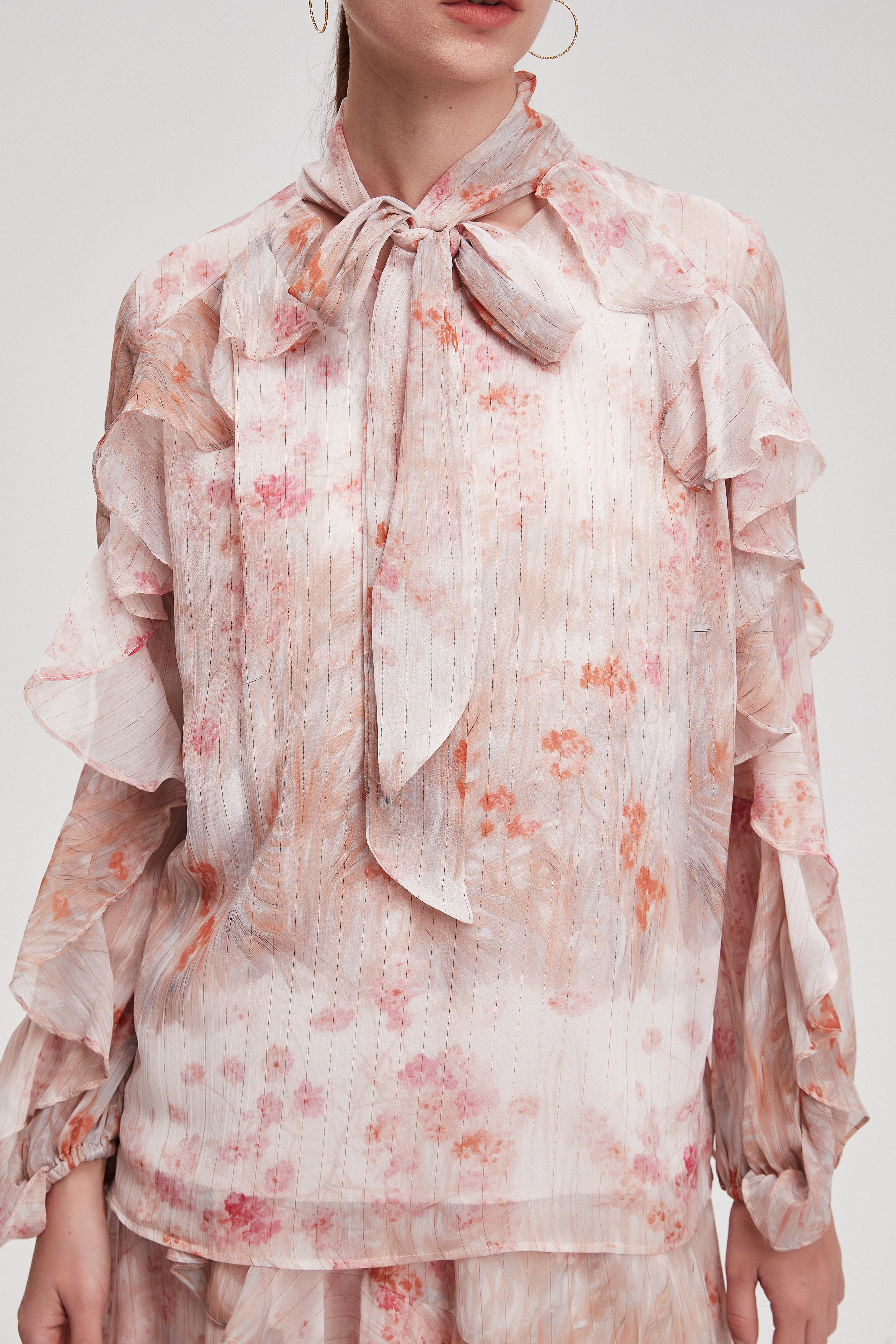 Long Sleeve Ruffled Neck Tie Blouse