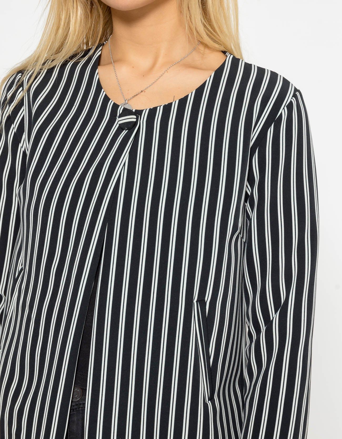 Wrap yourself in style with the Long Striped Women's Jacket from Shana. This chic jacket features a contemporary striped design that effortlessly blends elegance with casual flair. Its long sleeves provide warmth and comfort, making it a perfect choice for any season. Crafted with quality materials, this piece is not just about looks; it's designed for a comfortable fit that flatters every figure. Pair it with your favorite jeans or dress it up for a night out. Don’t miss out on this must-have wardrobe staple! Order now at Fashion Saudi and redefine your style today! Product Number: ch000318