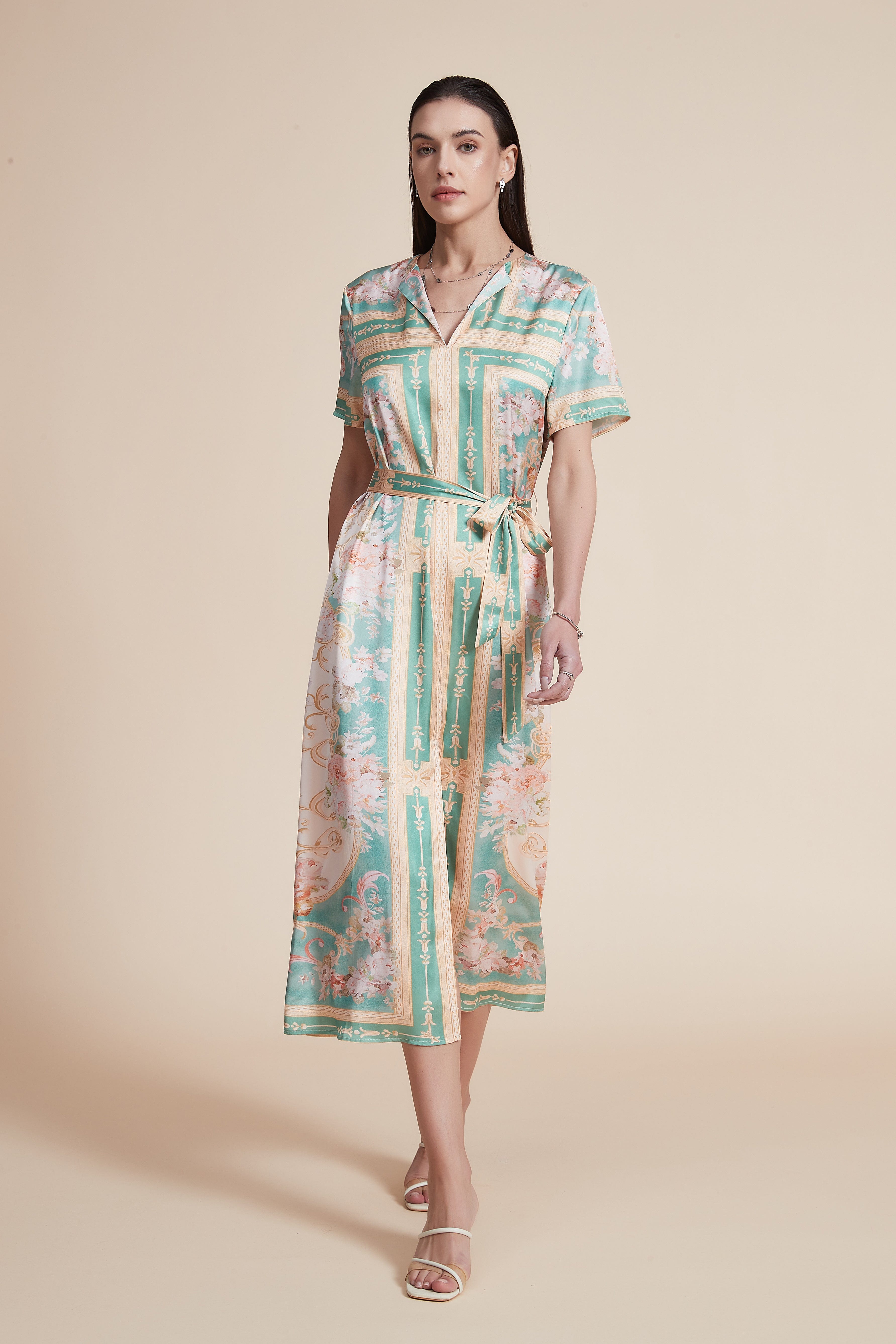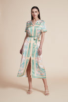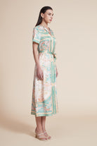 Bright, easygoing and endlessly flattering, this multicolor patterned midi dress is a casual wardrobe workhorse that balances polish with comfort. Cut in a forgiving A-line silhouette with a belted waist, the regular-fit design skims the body and defines your shape without clinging. Tailored shirt collar and button-front closure lend a crisp, put-together feel while short sleeves and an unlined, medium-weight 100%POLYESTER fabrication keep the piece lightweight, wrinkle-resistant and ideal for all seasons. The midi length provides elegant coverage for daytime errands or weekend brunch, yet dresses up with heels for informal office days or dinners. Pocketless styling keeps the lines clean, and the included belt lets you customize the fit. Designed by Yola and available at Fashion SA—add this versatile patterned midi to your rotation and shop now to elevate casual ease.