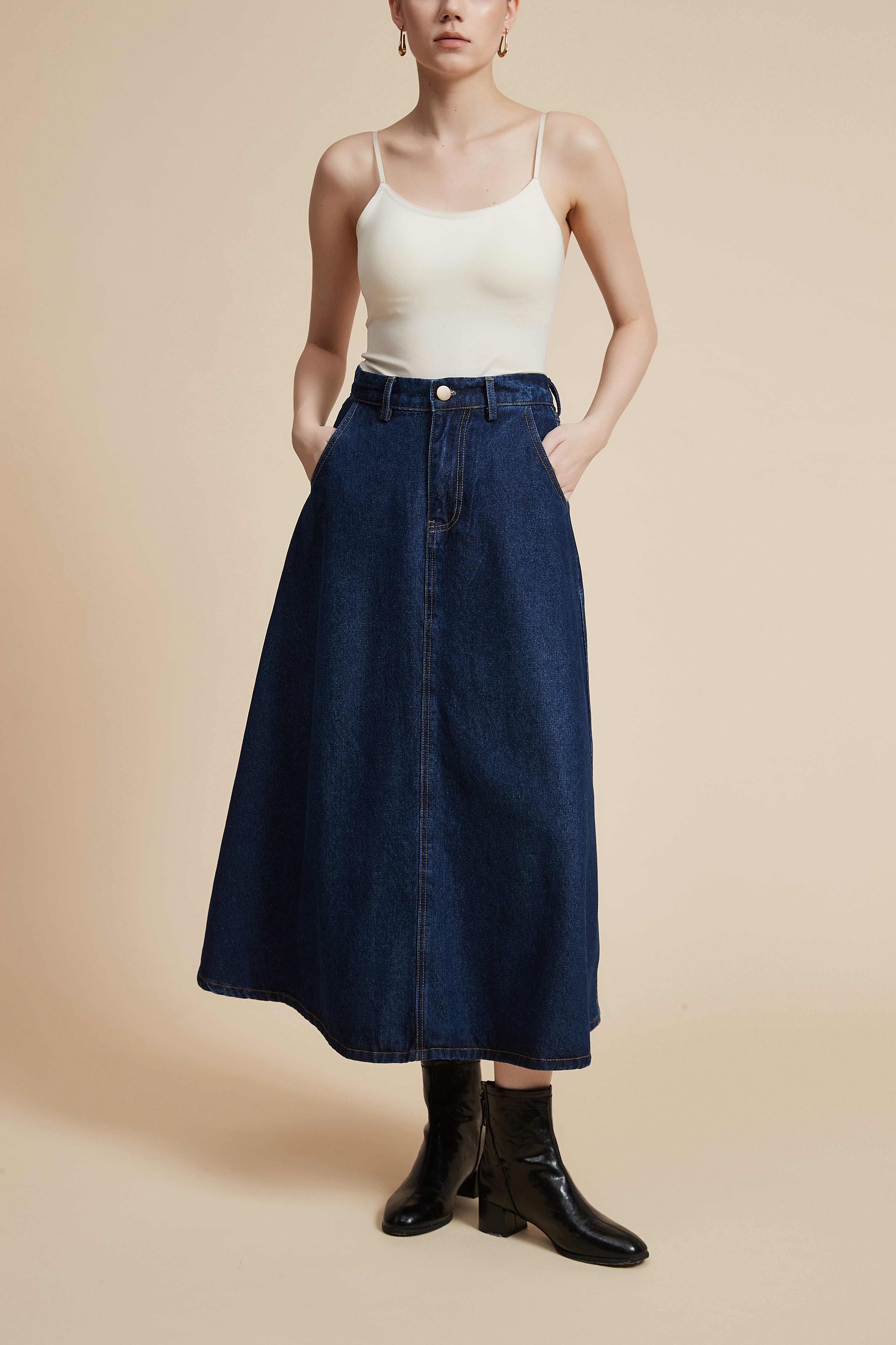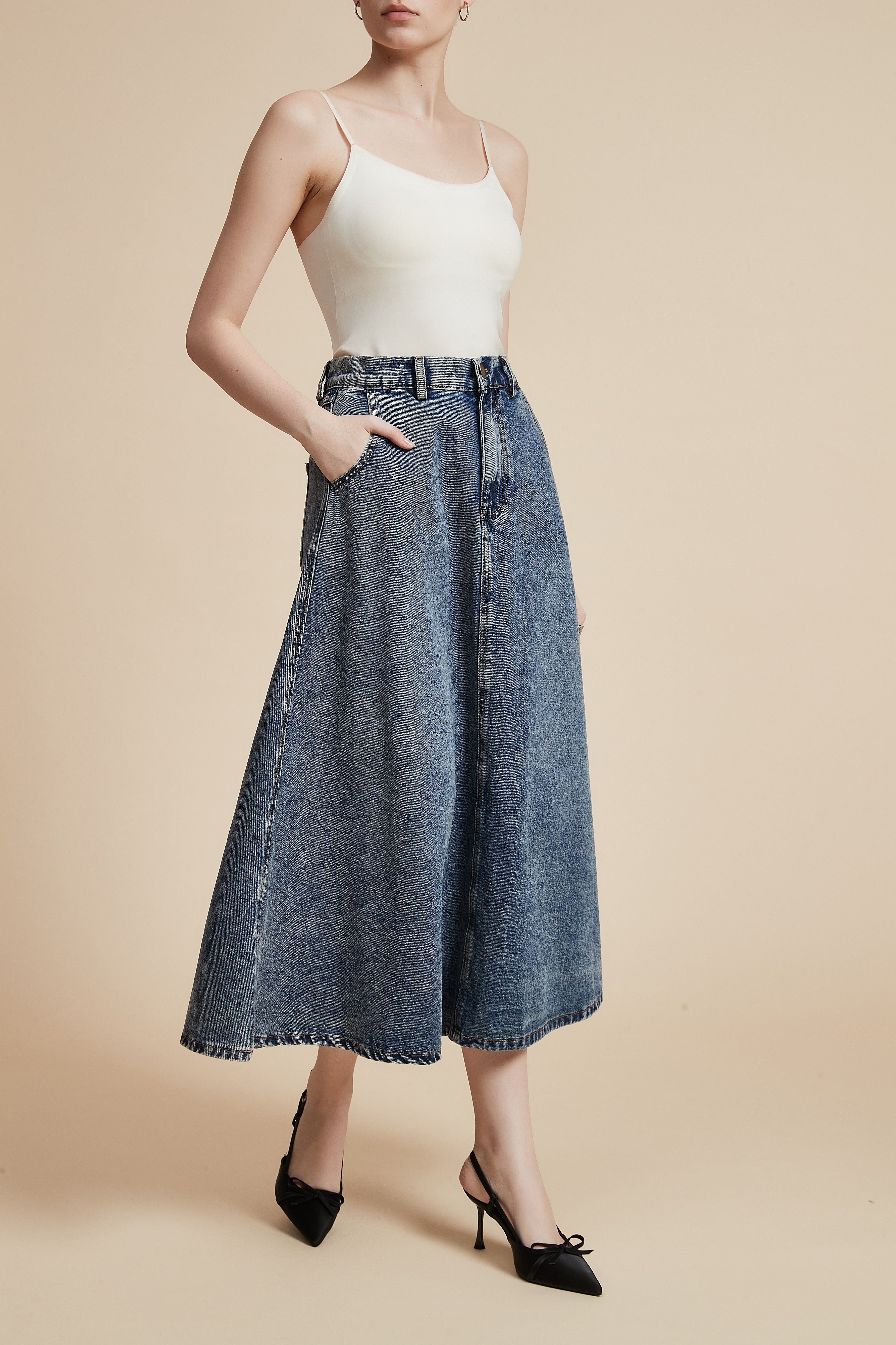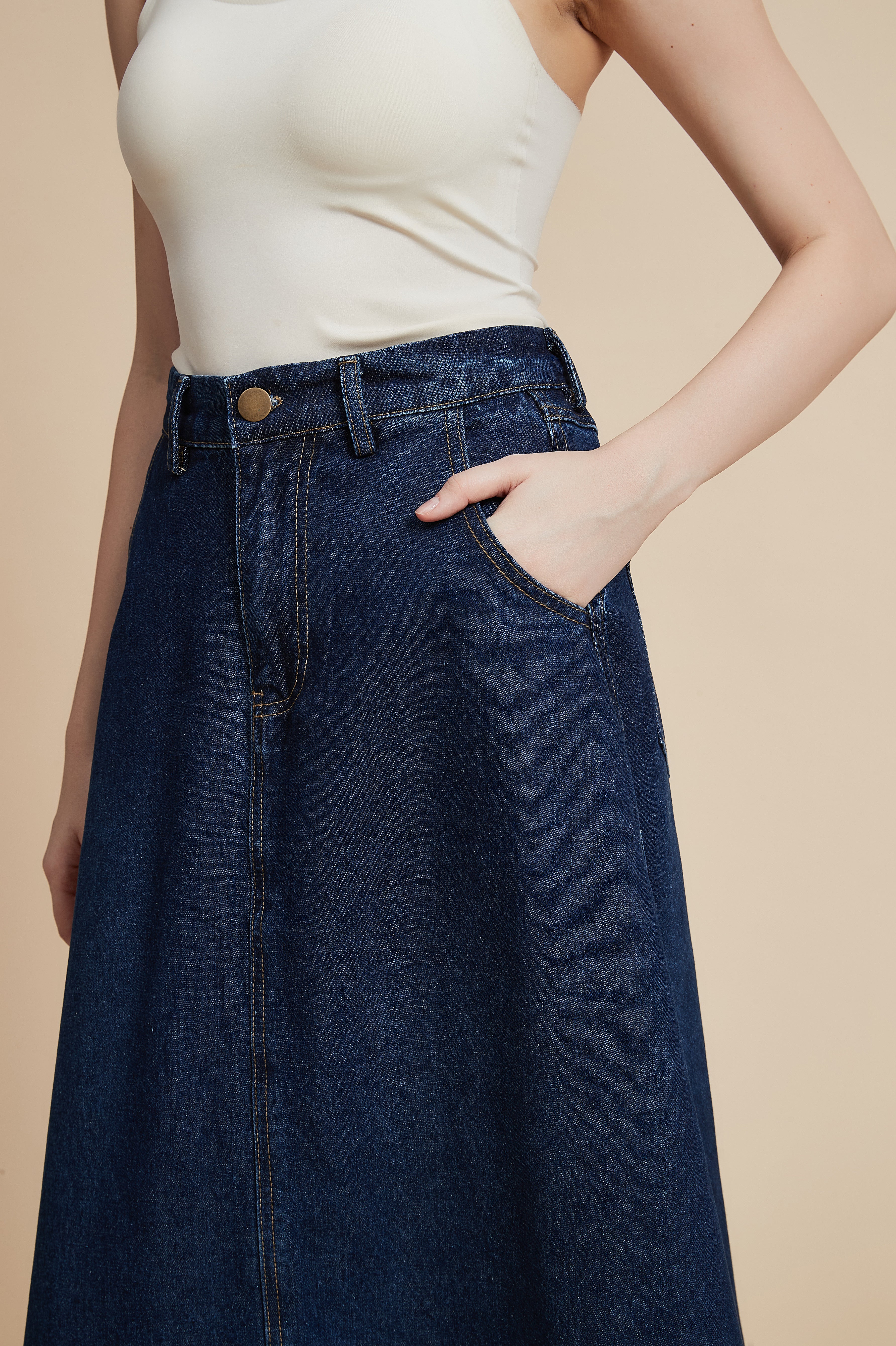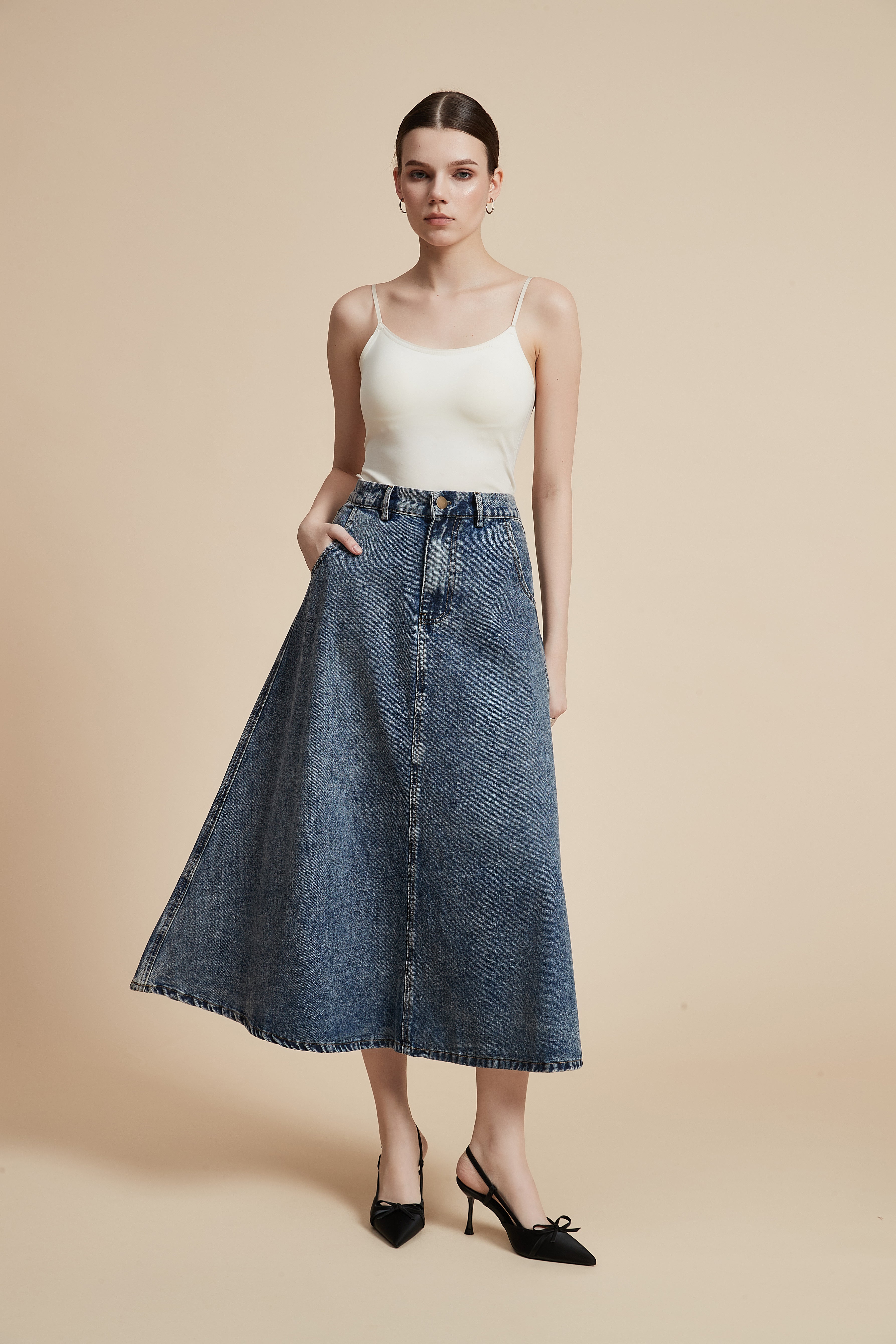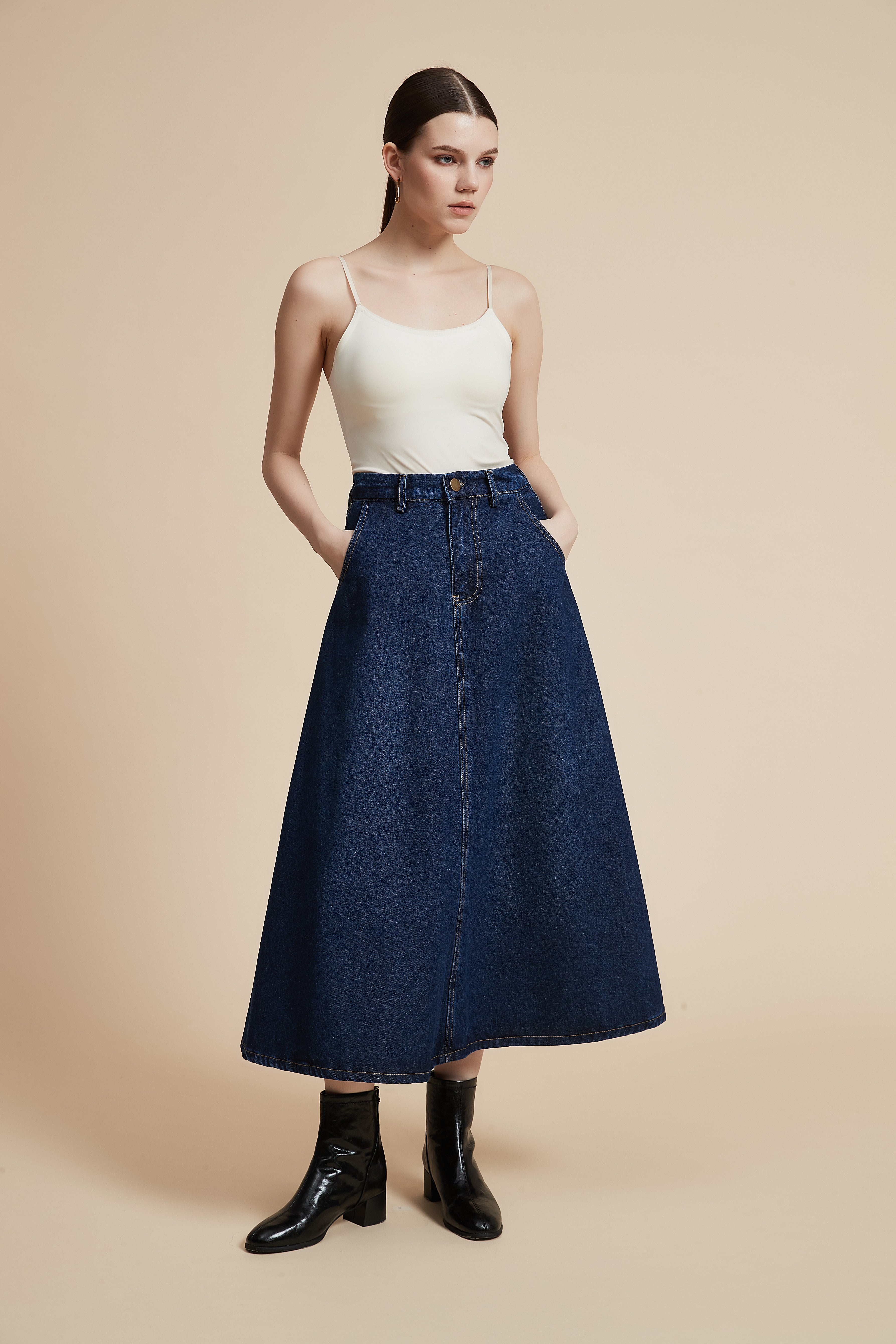 Yola's Plain Midi Denim Skirt adds a touch of modern elegance to your wardrobe. Featuring a comfortable fit that flatters all body types, this skirt is a perfect choice for every occasion. It can be easily paired with shirts or blouses for a simple yet elegant design. Made from high-quality denim, it offers all-day comfort. Don't miss the opportunity to flaunt a unique look. Order online now and enjoy a convenient shopping experience! Product Number: iy787s253sp