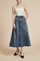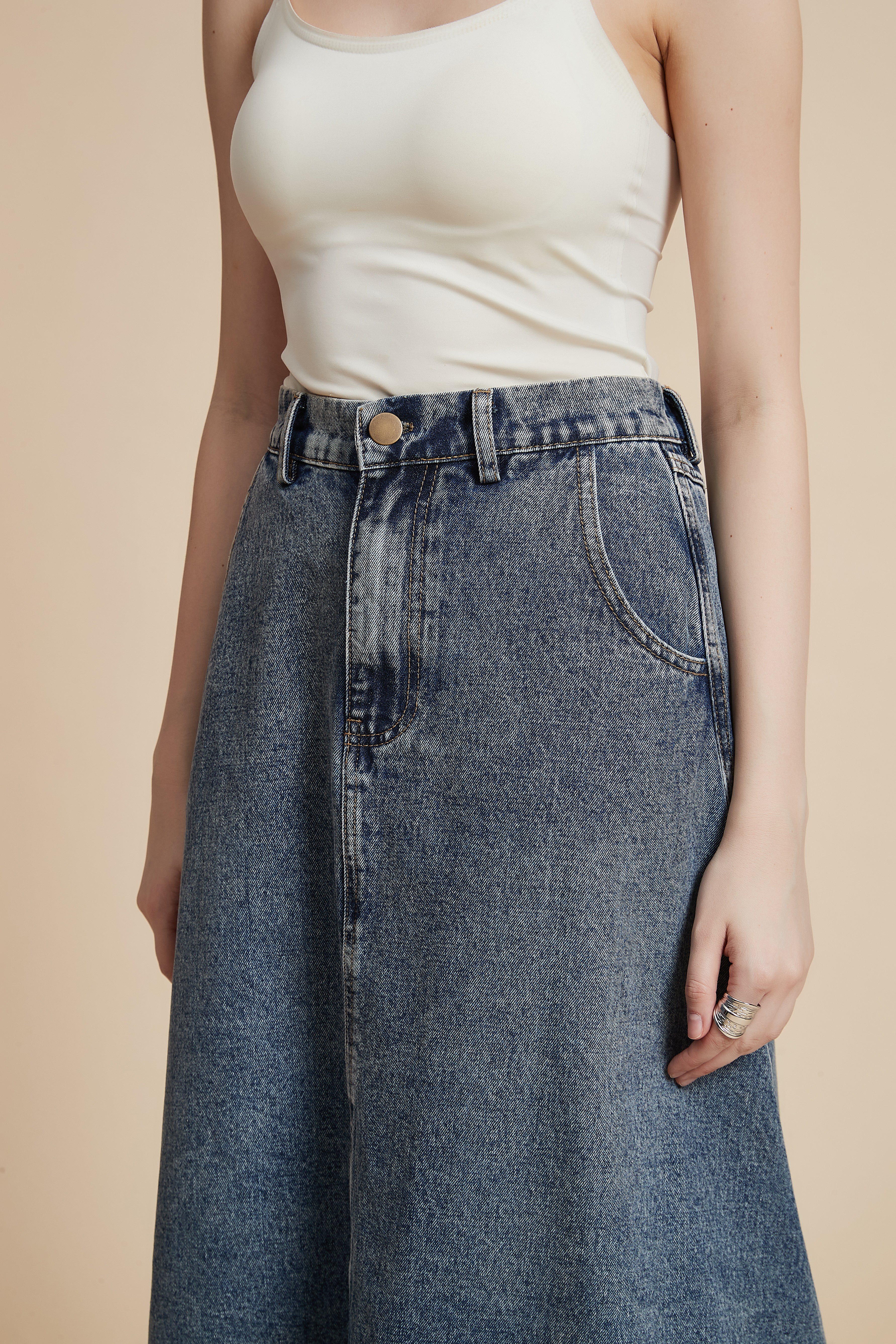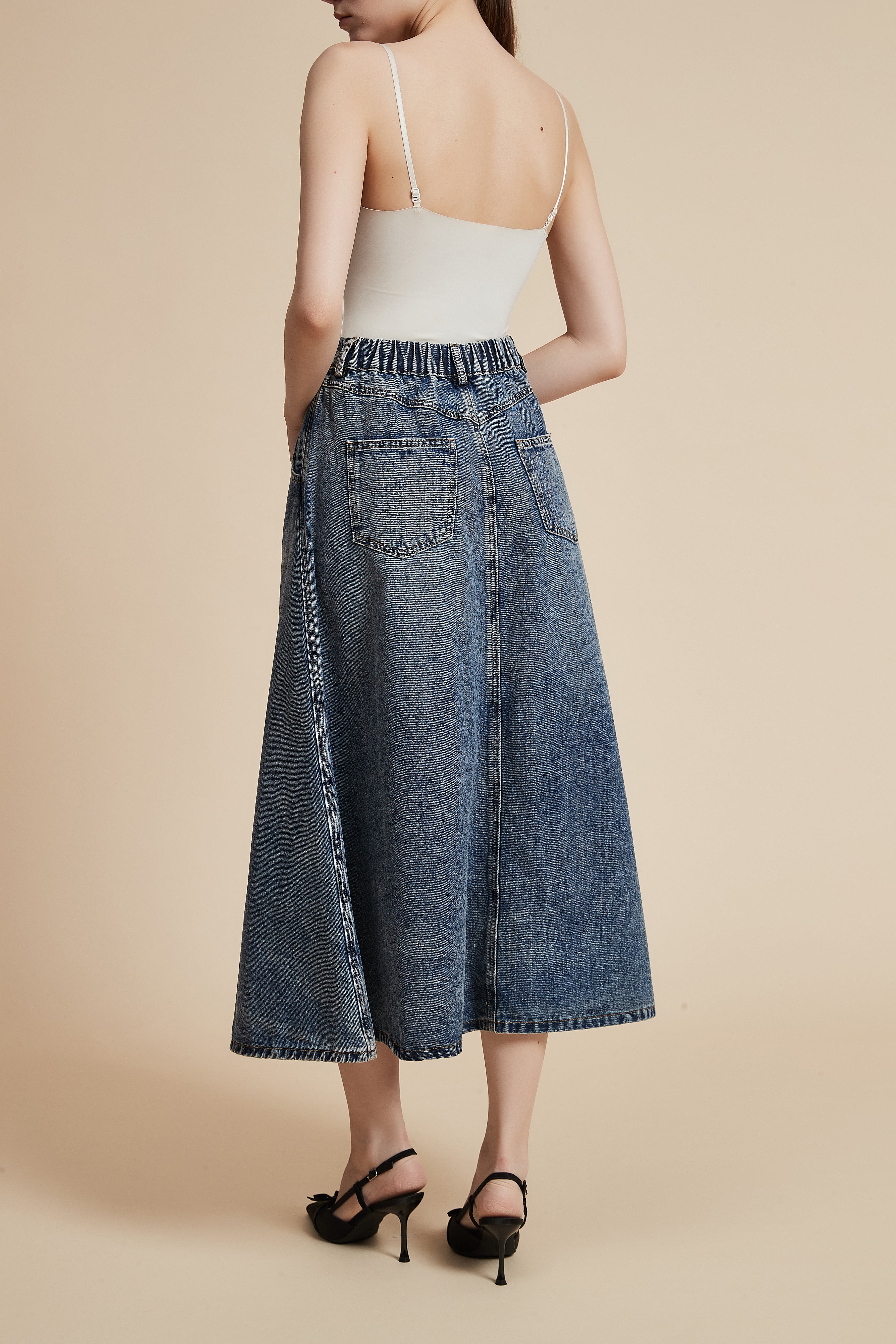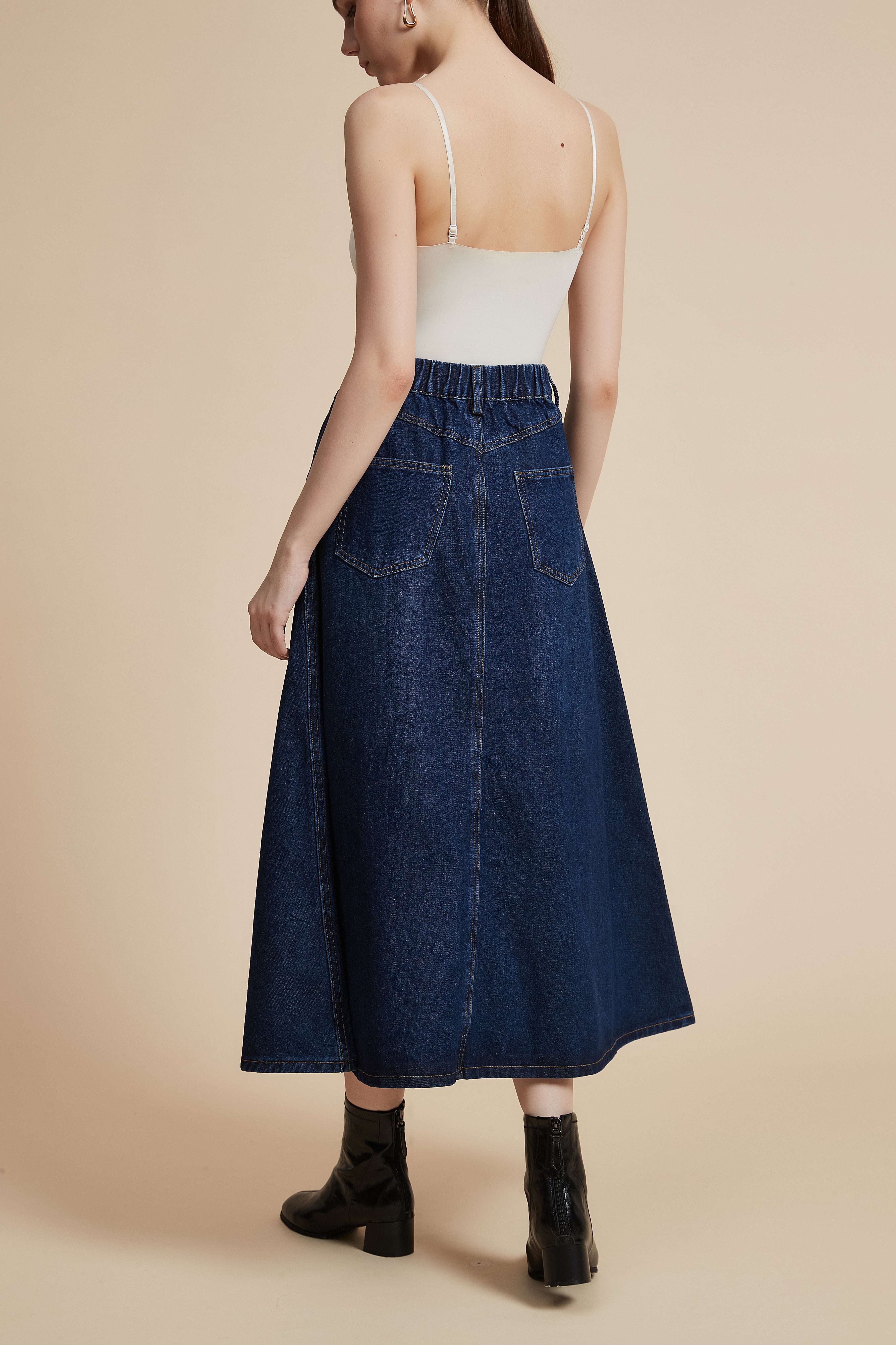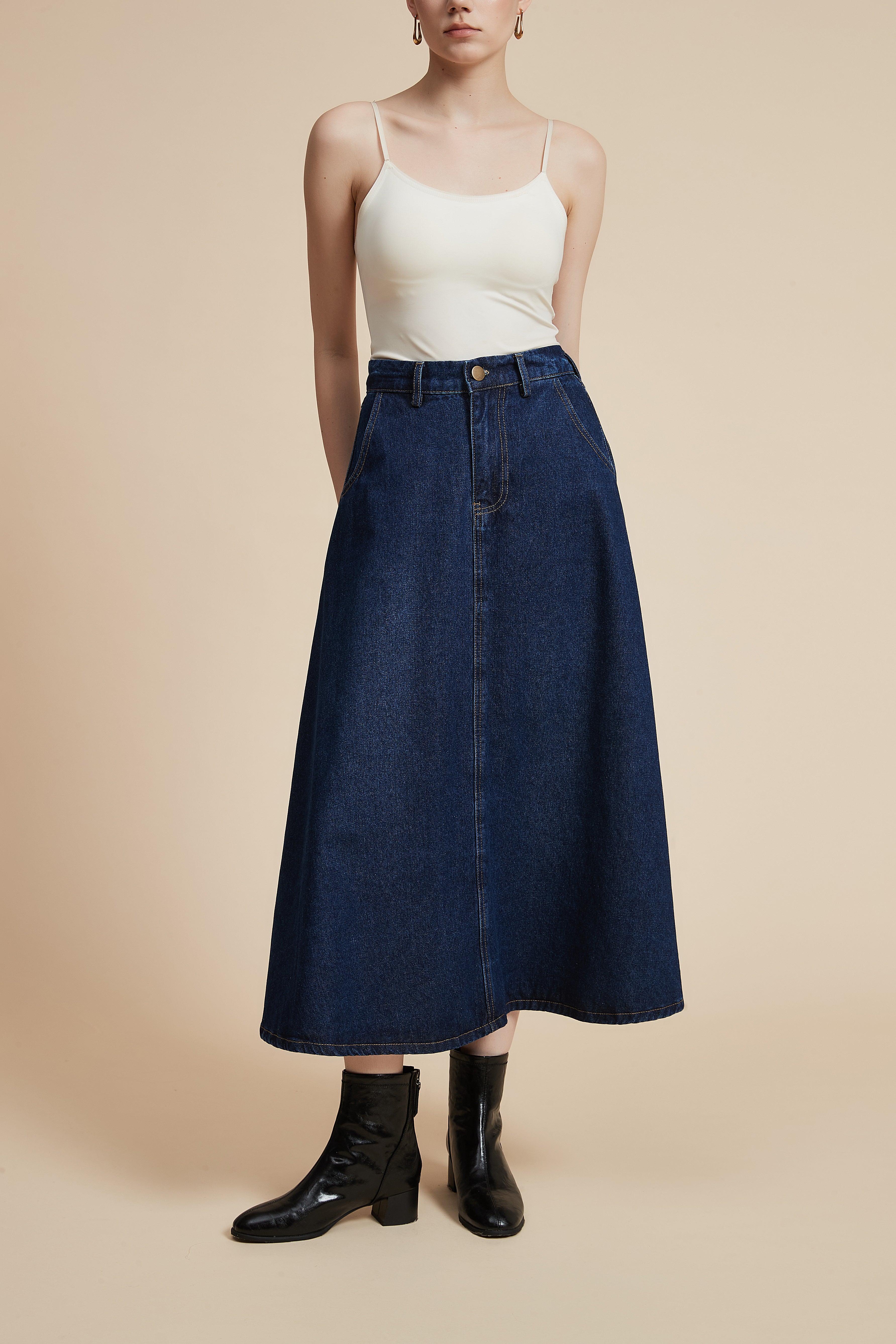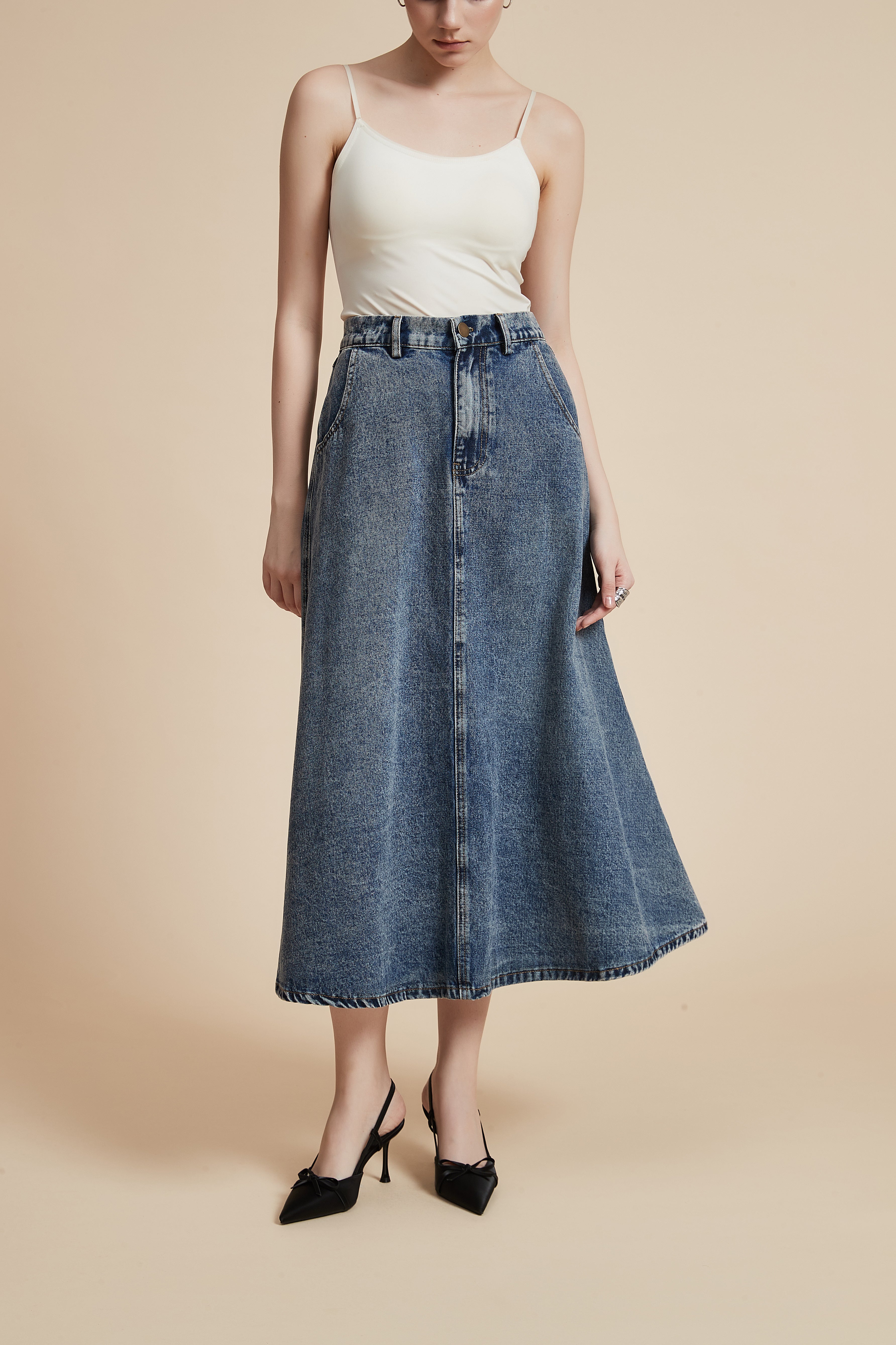 Yola's Plain Midi Denim Skirt adds a touch of modern elegance to your wardrobe. Featuring a comfortable fit that flatters all body types, this skirt is a perfect choice for every occasion. It can be easily paired with shirts or blouses for a simple yet elegant design. Made from high-quality denim, it offers all-day comfort. Don't miss the opportunity to flaunt a unique look. Order online now and enjoy a convenient shopping experience! Product Number: iy787s253sp