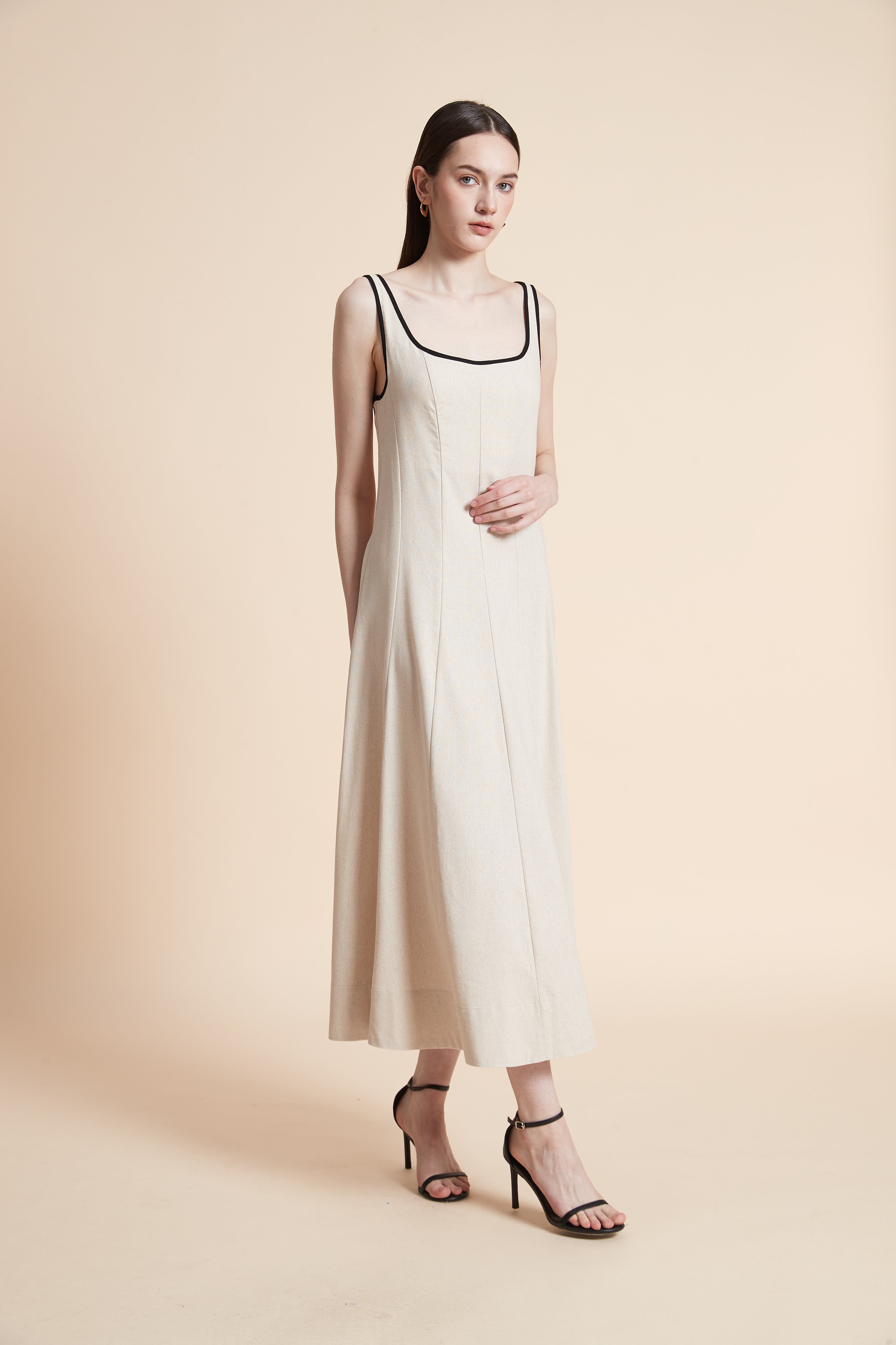 Solid Midi Dress with Straps