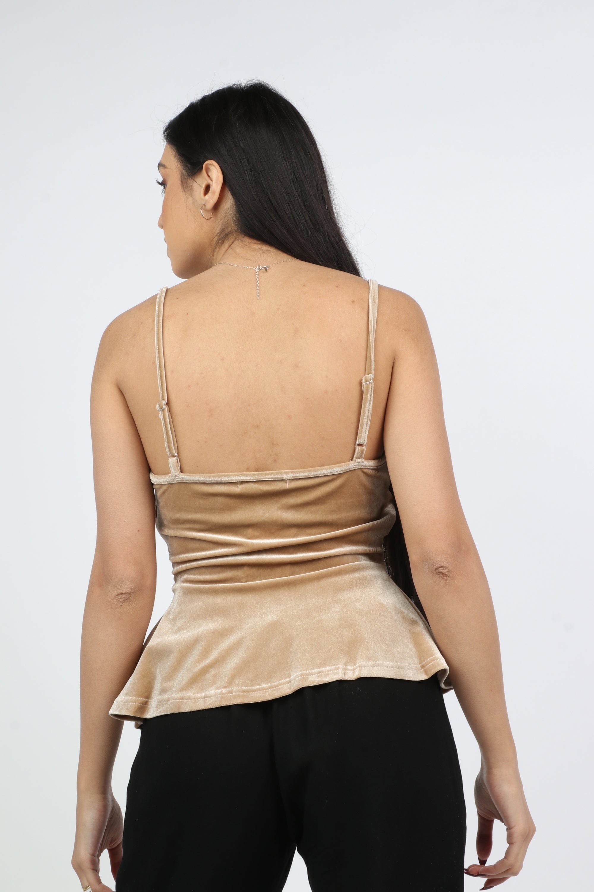 Turn heads with a delicate strap women's velvet blouse from Fashion Saudi Arabia. This blouse is distinguished by its luxurious velvet fabric, which adds a touch of elegance and sophistication to your look. It comes with delicate straps that add a feminine touch. Available in charming gold and pink colors, to meet your personal preferences. You can wear this blouse to special occasions or parties to look your best. Order now a women's velvet blouse with delicate straps from Fashion Saudi Arabia and get ready for a glamorous and distinctive look. Order it now and be the center of attention for every occasion. Product Number: 03-0315