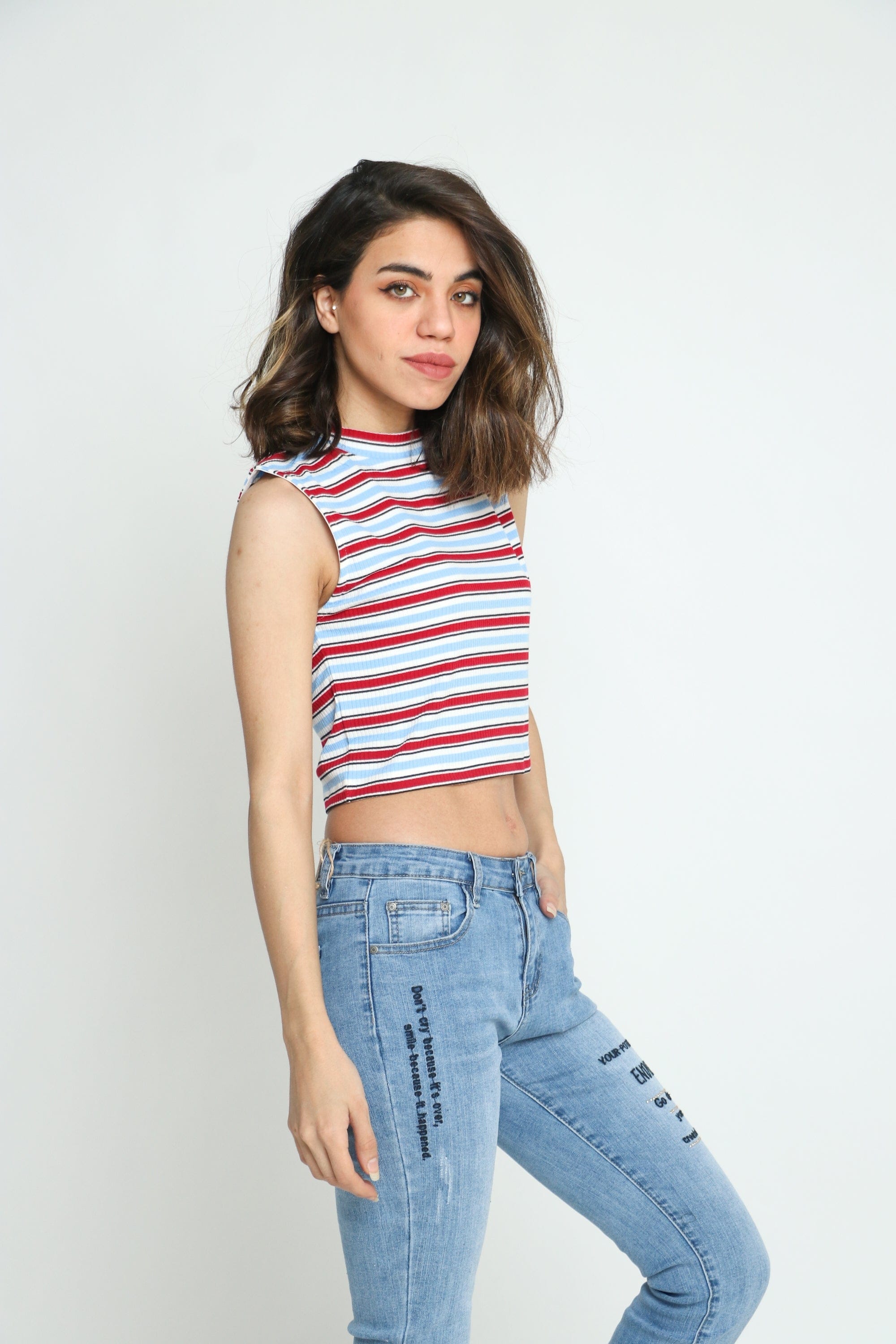 Get ready to shine with a women's striped half-belly blouse from Fashion Saudi Arabia. This blouse is available in three gorgeous colors: blue, maroon and yellow. This piece is designed with great elegance and distinctive striped details make it perfect for contemporary looks. It's cut for a relaxed cut and a half-belly silhouette that adds a flattering touch to your look. Wear it with jeans or a skirt for any occasion. Get now a women's striped half-belly blouse from Fashion Saudi Arabia and get ready to shine with your own elegance. Order now and enjoy the most beautiful fashion from Fashion Saudi Arabia. Product Number: 04-1172