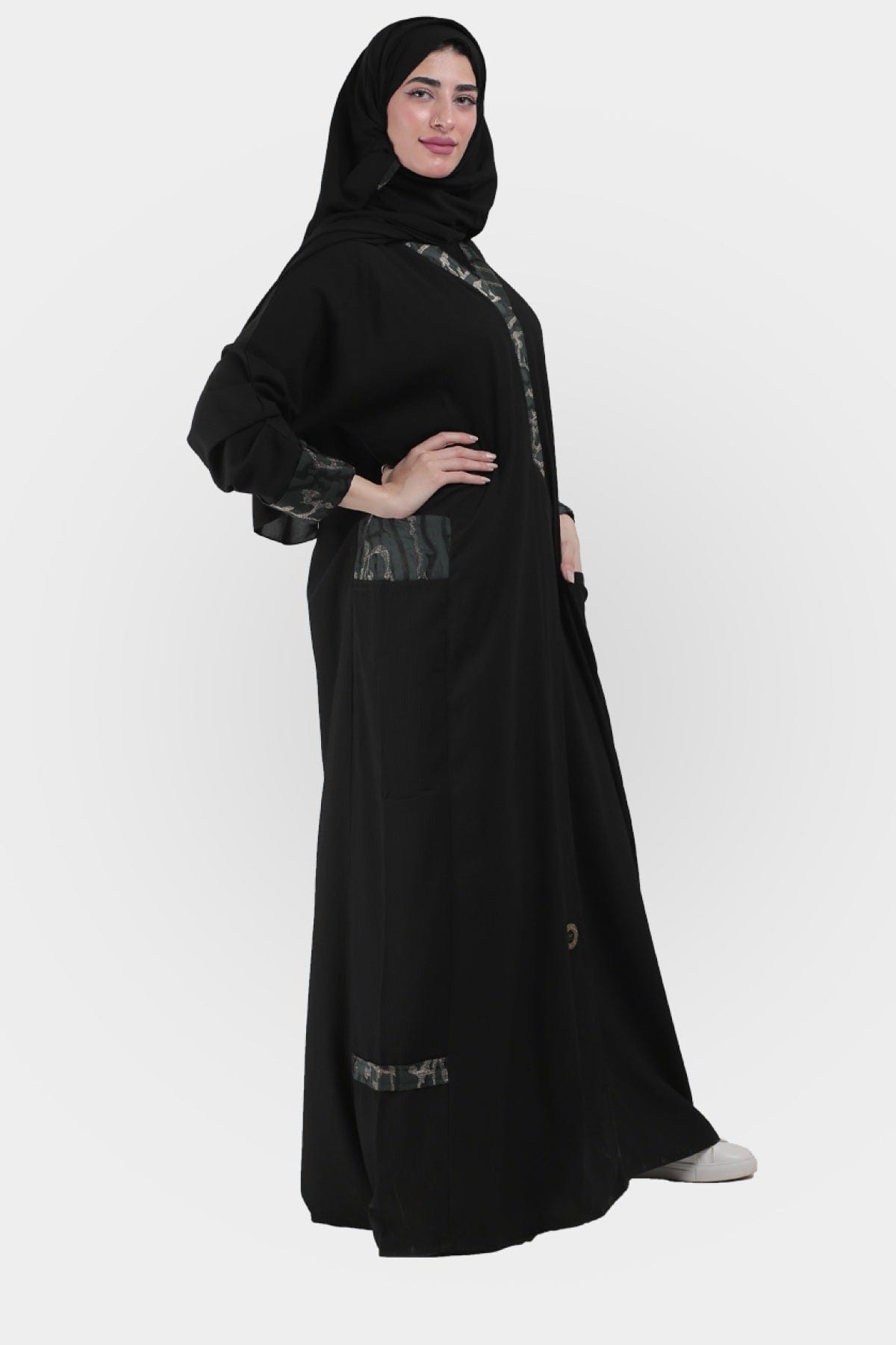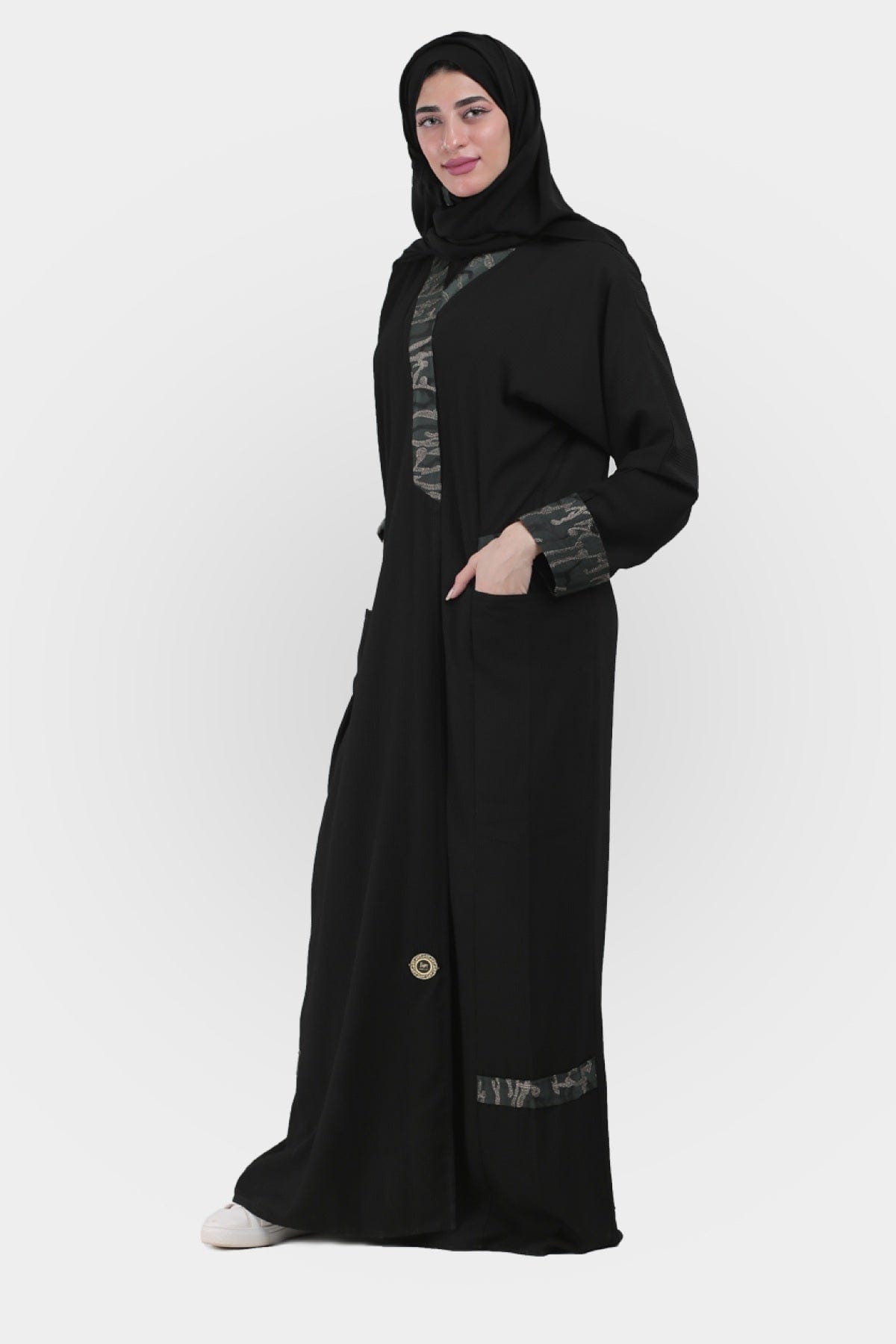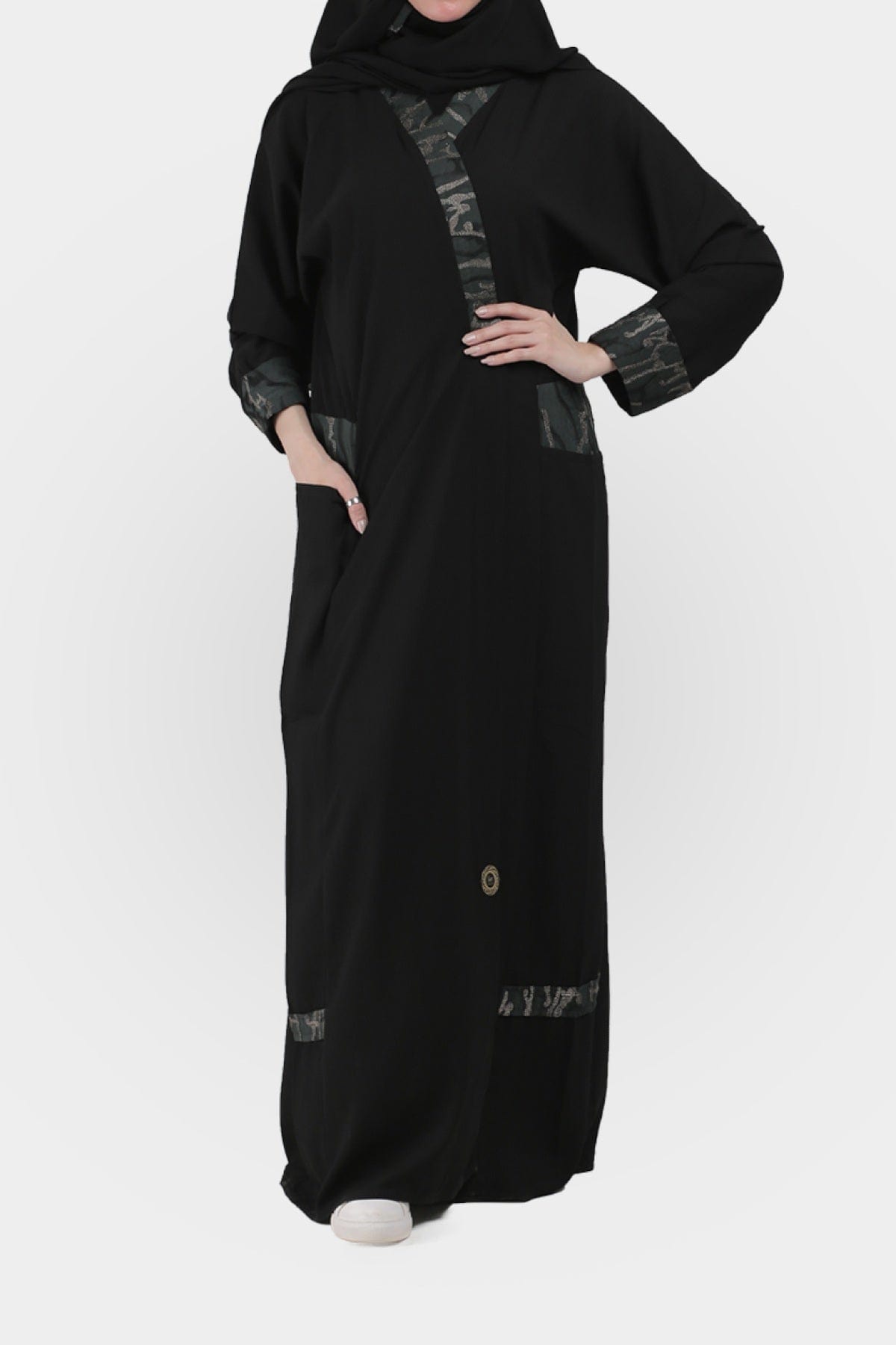 Get ready for a glamorous look with a crepe abaya wrapped in green taffeta with a pocket at the front from Johrh. This abaya comes in an attractive green color that adds a touch of elegance and distinction to your look. They are designed with high-quality fabric for comfort and durability. It features unique wrap details and a comfy front pocket. Wear it with evening dresses or the right outfit for every occasion. Don't miss the opportunity to get a crepe abaya wrapped in green taffeta with a pocket on the front from a jewel, order it now through Fashion Saudi Arabia and get ready to shine with your own elegance. Product ID: 10189