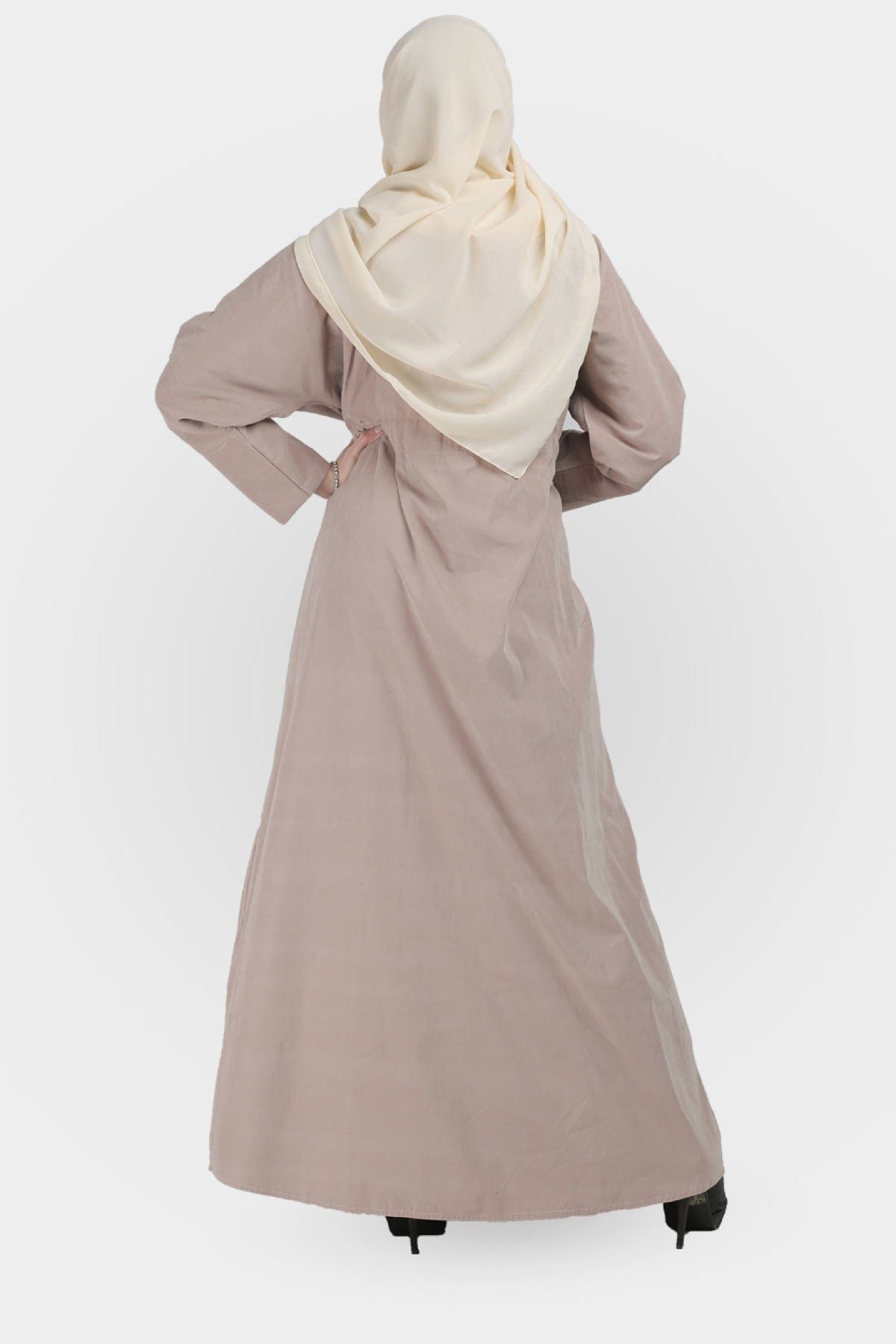 Get ready to shine with a classic suede button abaya for women with pockets, from the leading brand Johrh. This elegant and modern design is made of soft suede to add comfort and elegance at the same time. With classic button details and practical pockets, this abaya is an ideal choice for women looking for style and useful functions. Available in a beautiful light pink color that gives you a bright and lively look. Get now a classic buttoned abaya for women in suede with pockets from Johrh Get ready to shine in your own style. Order it now through Fashion Saudi Arabia. Product ID: 10206