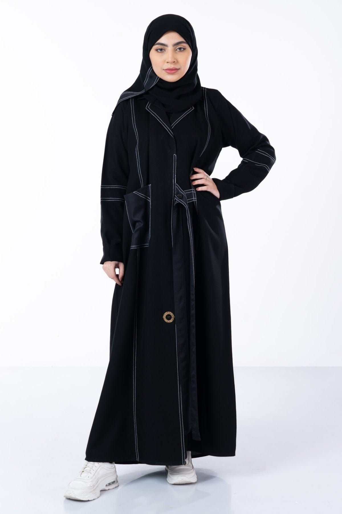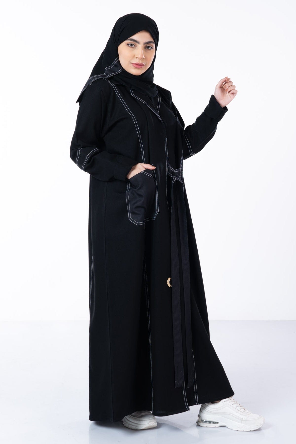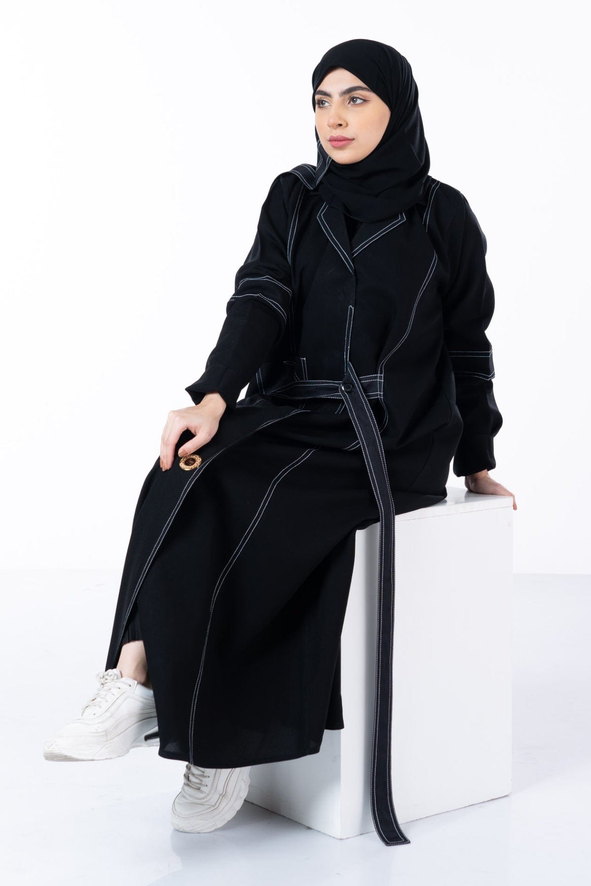 Get ready to shine in a linen abaya with white stripes with long sleeve pockets of Johrh. This abaya is characterized by its elegant and comfortable design, making it ideal for the modern woman. It comes in a gorgeous black color that adds a touch of elegance and distinction to your look. Made from soft, high-quality linen, it features attractive white stripes and functional pockets. Wear this abaya with your favorite accessories to complete your look in style. Get a linen abaya with white stripes with long sleeve pockets of Johrh Now be the center of attention on every occasion. Order it now through Fashion KSA and enjoy your unique elegance. Product ID: 10744