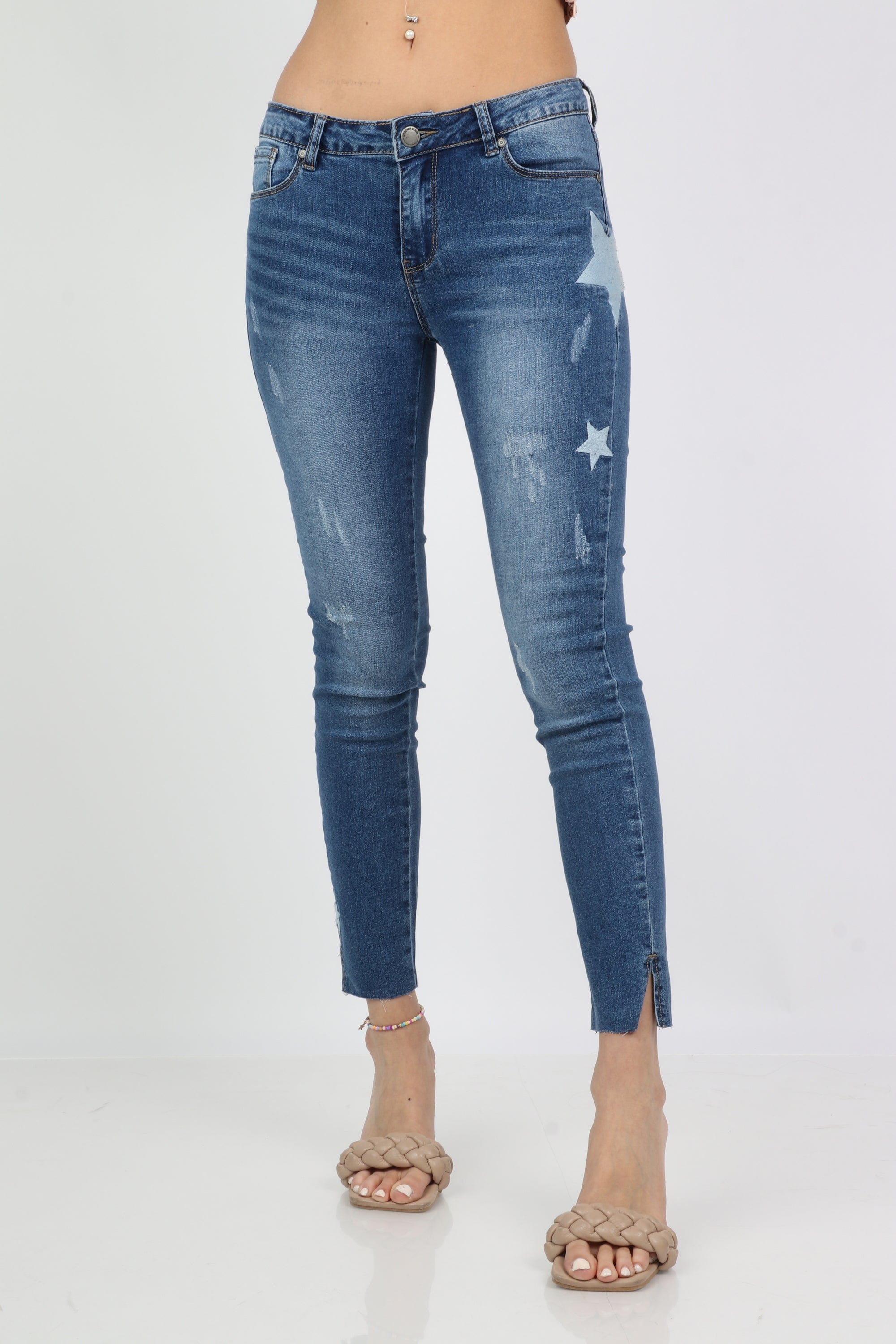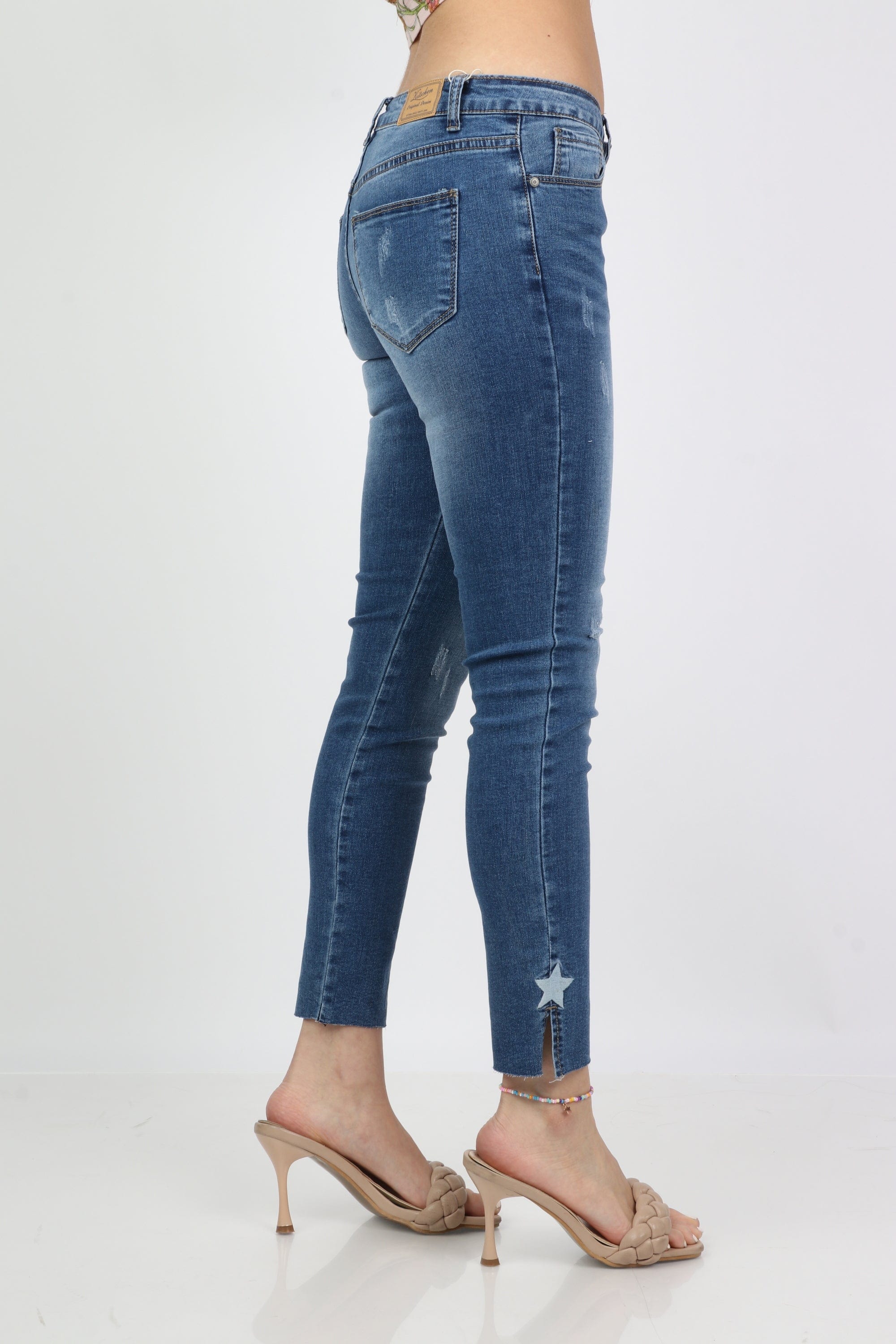 Get ready for a trendy look with women's star-studded skinny jeans from Kitschen. These trousers are bold and accentuated by stars drawn on them, adding a unique touch to your look. Our trousers are available in dark blue and light blue colours, so you can choose what suits your taste. Made with high quality to give you comfort and style at the same time. Order now skinny jeans with women's stars from Fashion Saudi Arabia and enjoy a distinctive and sexy look. Book your order now and get ready to be the center of attention! Product Number: 11-0687