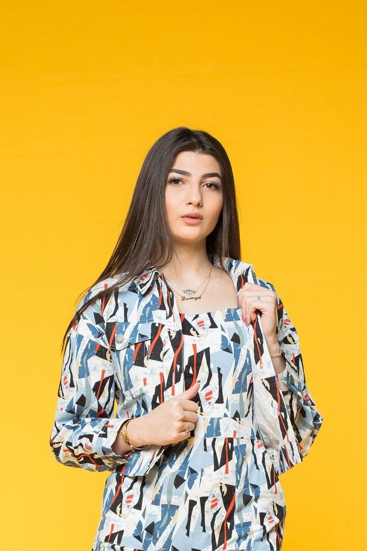 Enjoy a distinctive look with a short -sprayed jacket with a long time of Kitchen, now available in bright colors such as blue. This jacket is specially designed for modern women, as it combines elegance and comfort. It has beautiful patterns that add a vibrant touch to your look, and features long sleeves that keep your warmth on cold days. You can wear it with your favorite dresses or even with jeans for a modern and distinctive look. Do not miss the opportunity! Get a short jacket engraved in a long time today from Yola and enjoy your elegance. Ask now! Product number: 180505