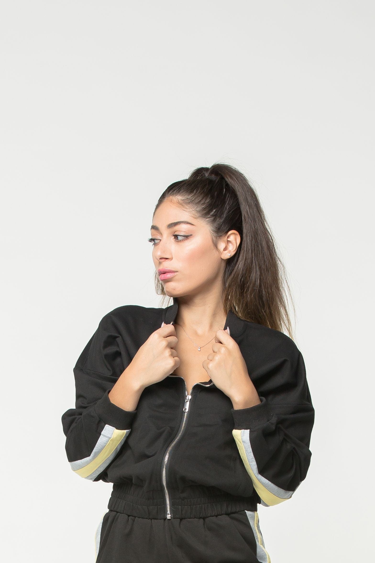 Fitted Zip Jacket with Small Collar