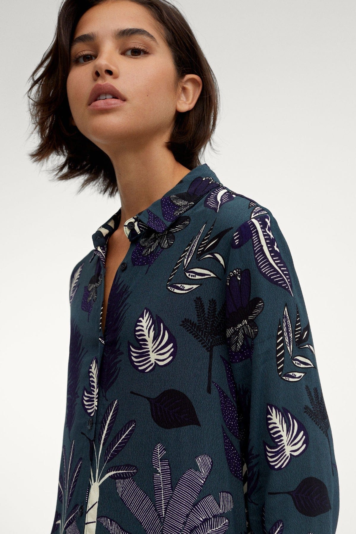 - Medium-weight woven fabric offers subtle structure, comfortable drape and easy wear