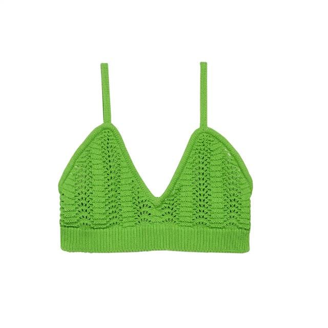 Solid V-Neck Crochet Crop Top