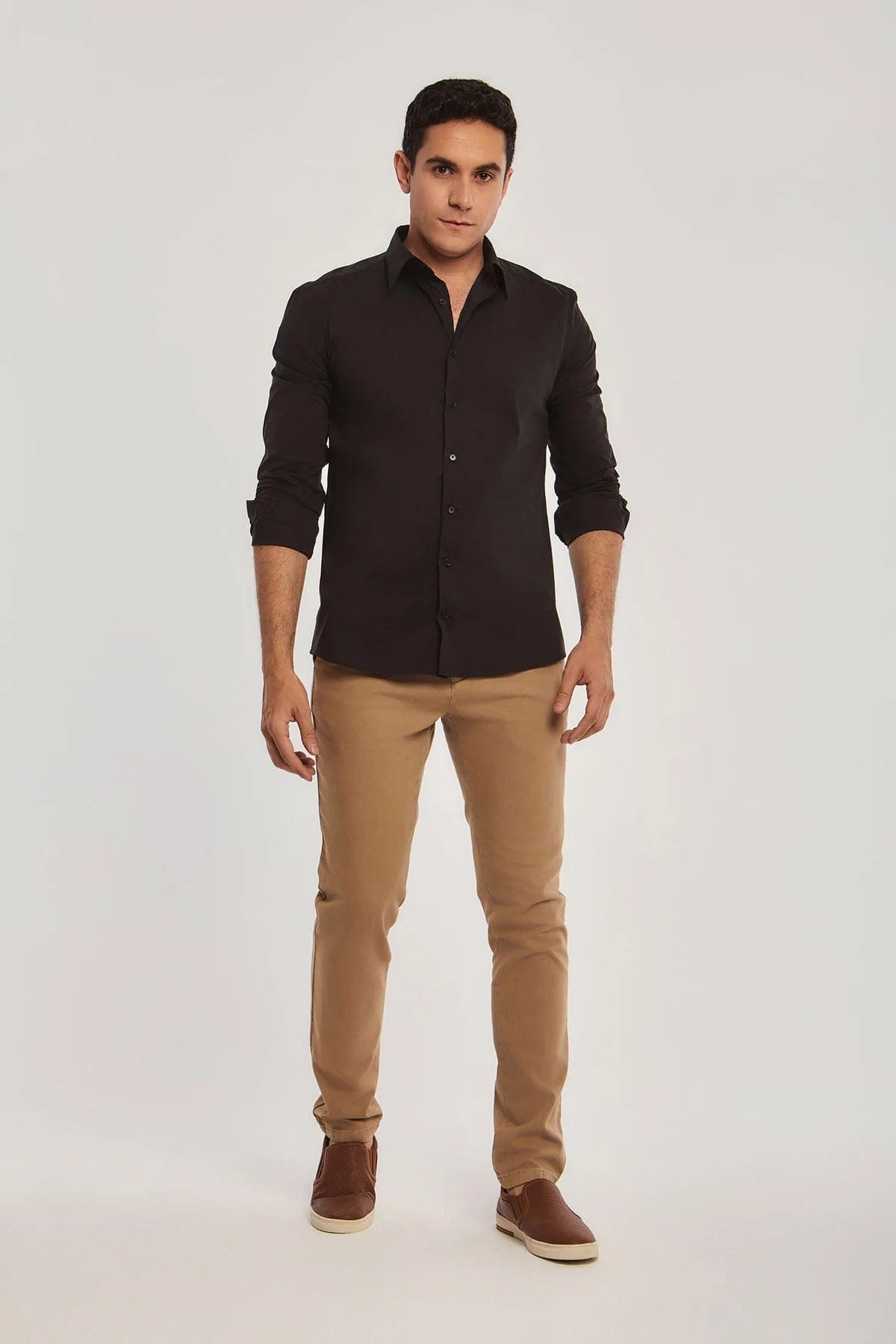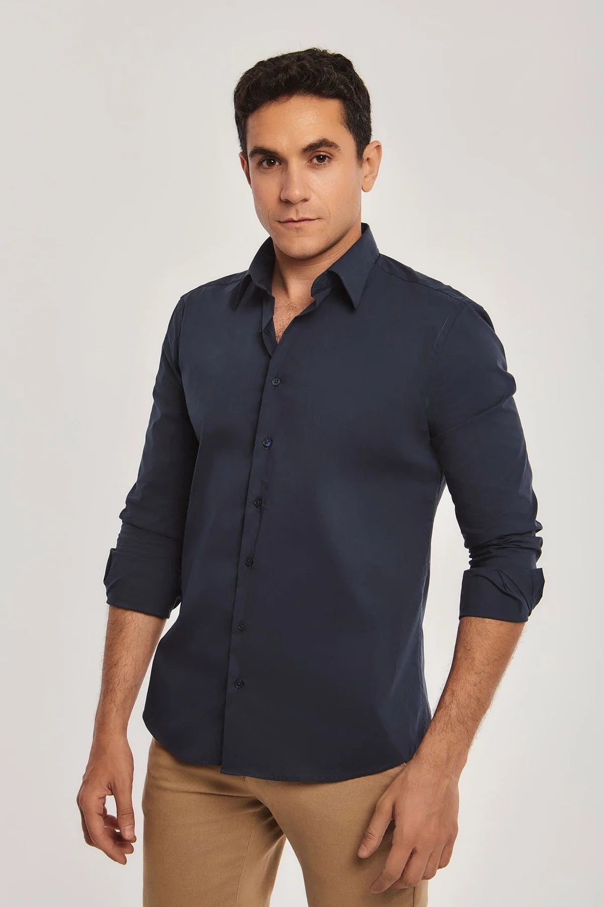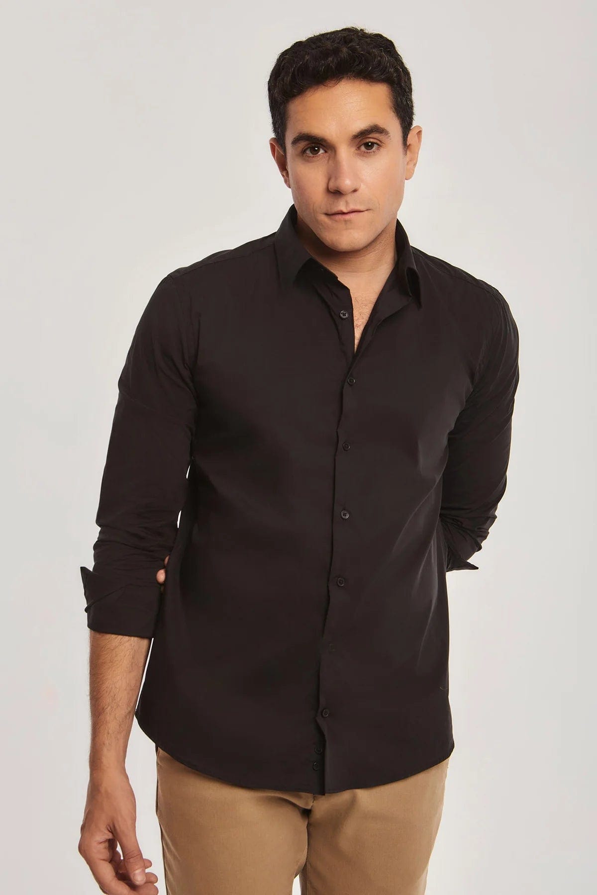 Mens Solid Button-Front Shirt