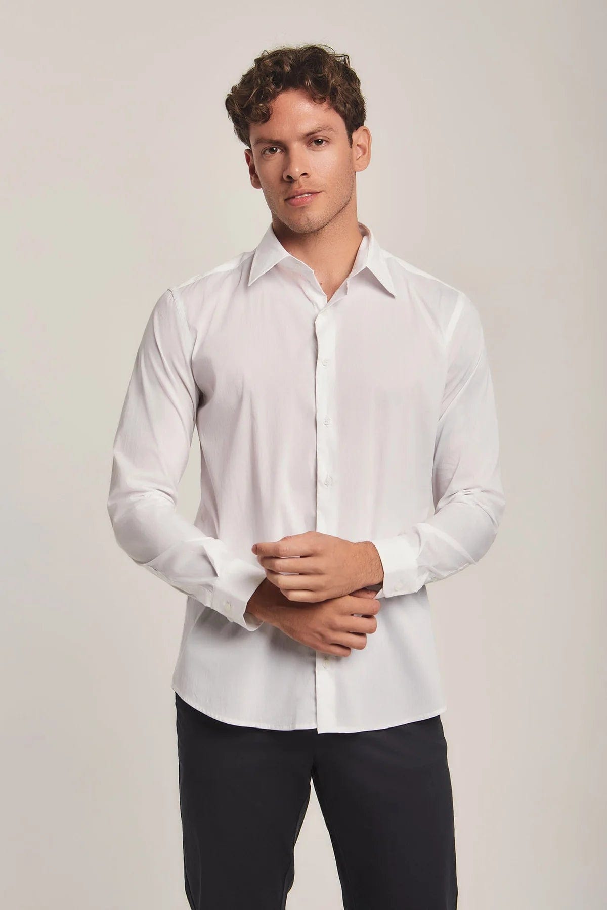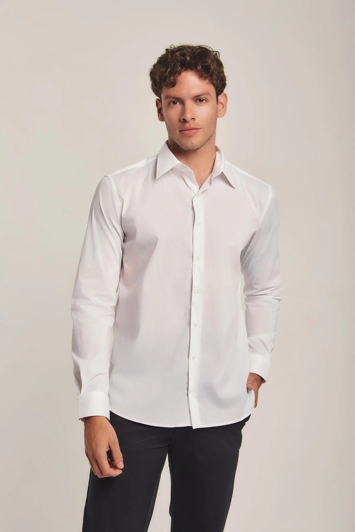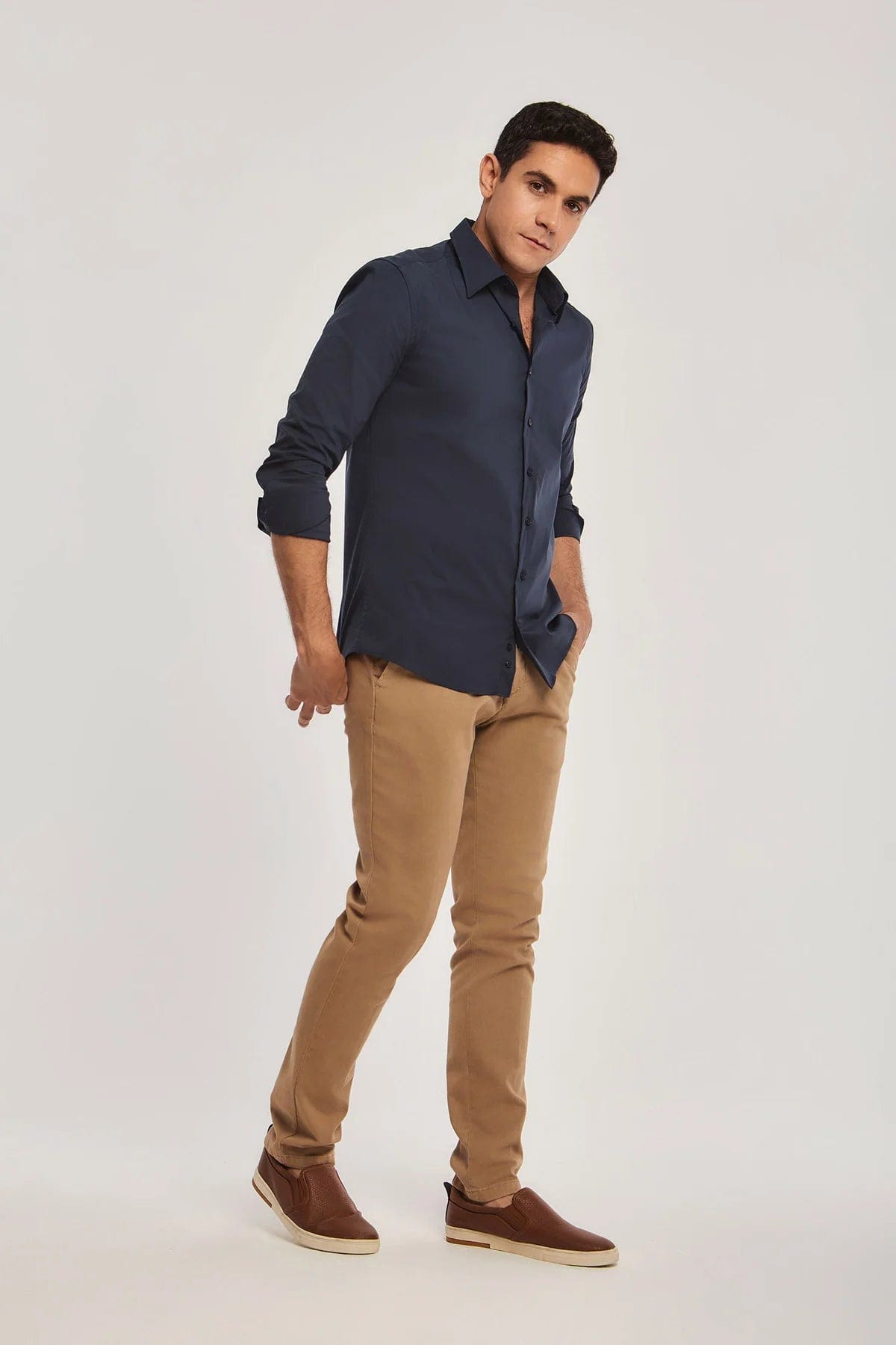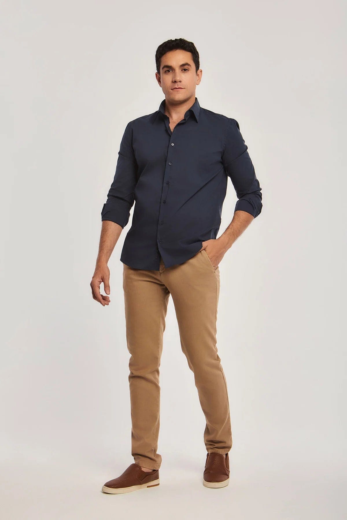 Mens Solid Button-Front Shirt