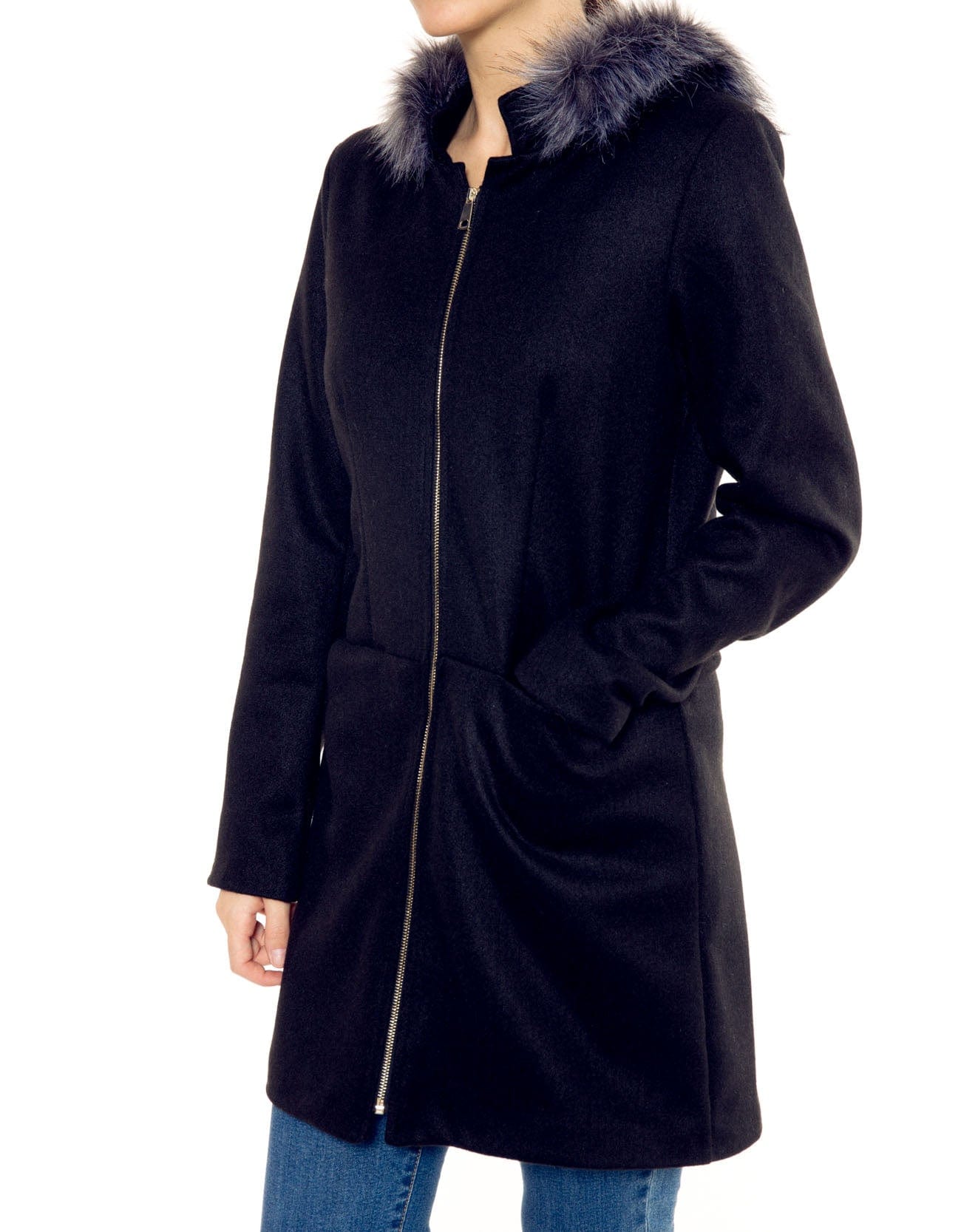 Fur-Trim Long Jacket