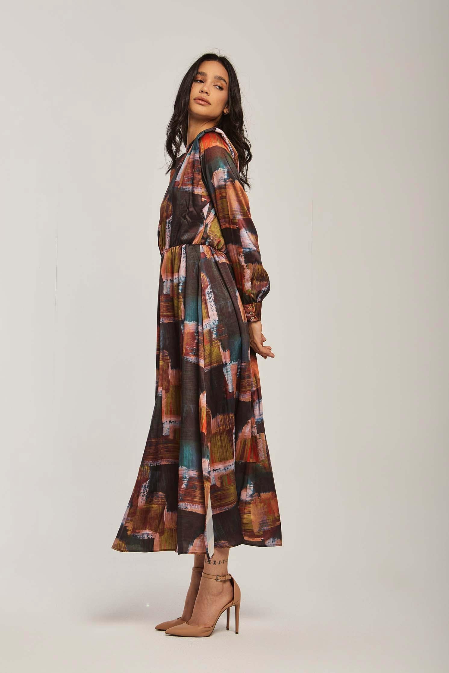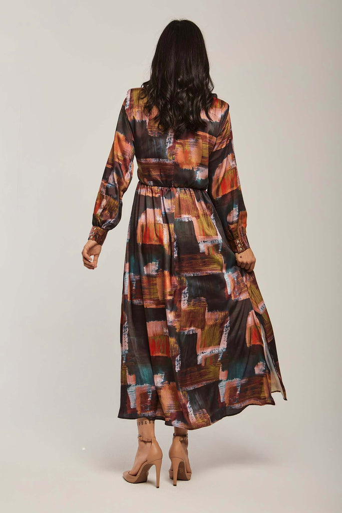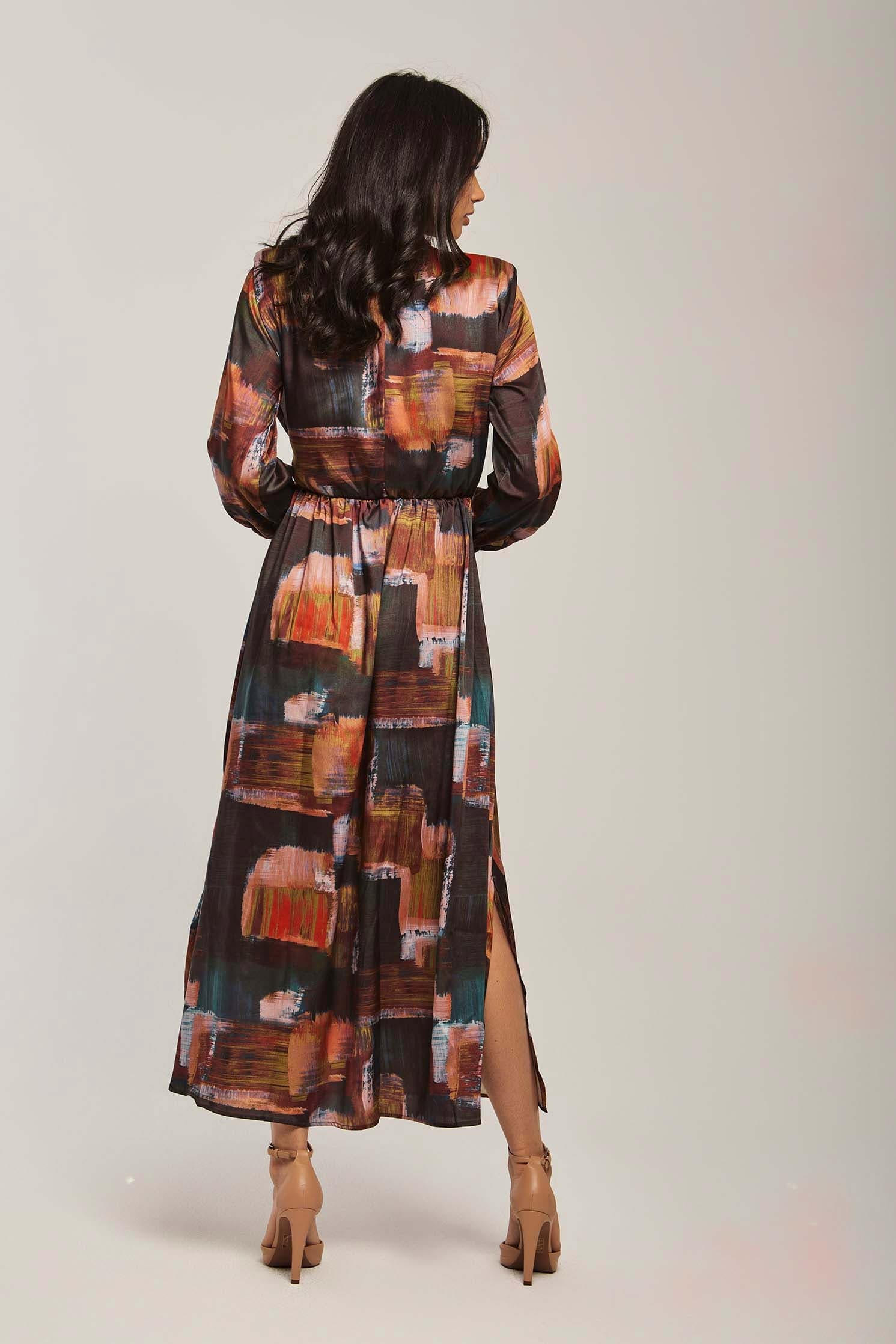 Make a vibrant statement in the Multicolor Abstract Maxi Long-Sleeve Dress โ an A-line silhouette designed to flatter while offering effortless movement. The multicolor abstract pattern brings artistic energy to a medium-weight fabric blend that transitions beautifully between spring and autumn. Long sleeves and a neat mandarin collar with button closure create a polished, wearable look; the unlined construction keeps the dress breathable and comfortable for all-day wear. With a regular fit and flowing maxi length, this piece provides graceful coverage without sacrificing ease โ perfect for weekend brunches, city strolls or relaxed office settings. Pocketless and beltless for a clean profile, itโs easy to accessorize for day or evening. Shop this versatile staple at Fashion SA and add instant personality to your casual wardrobe.