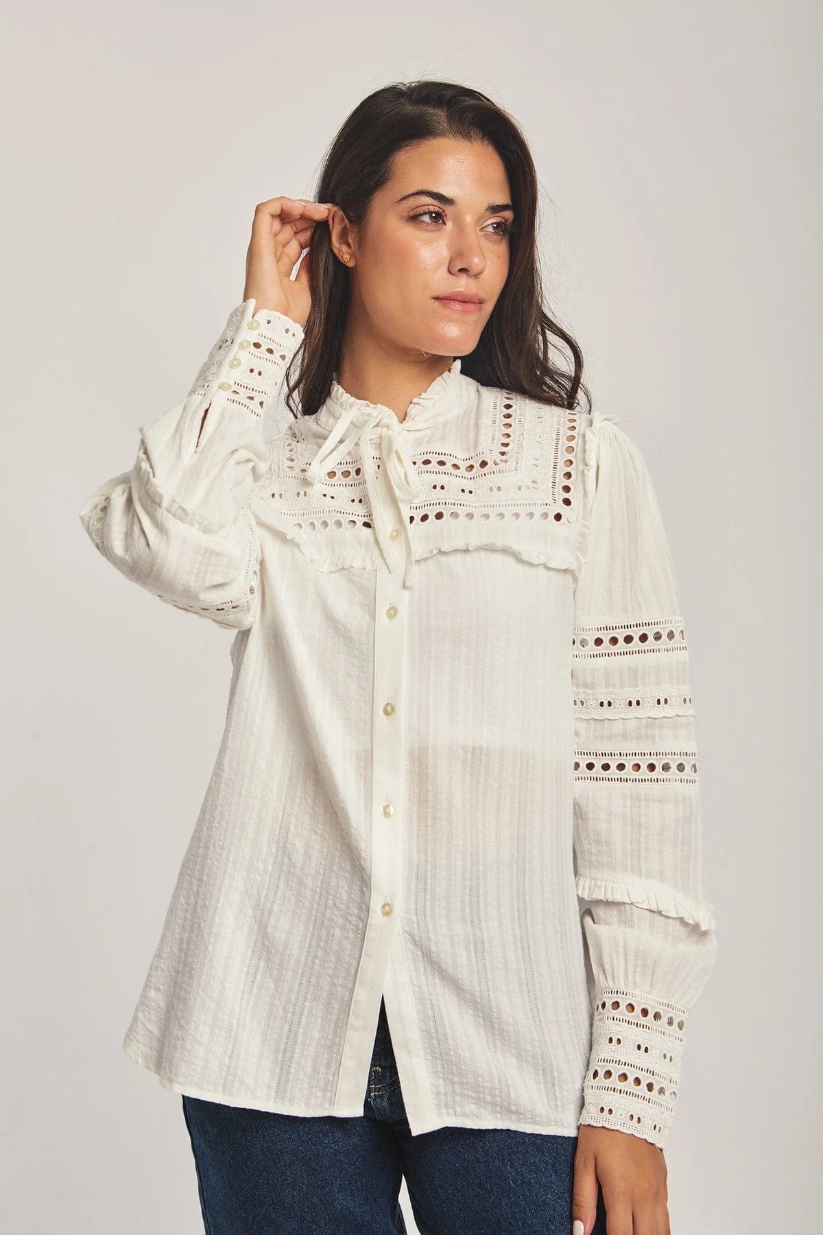 Lace Button-Front Top