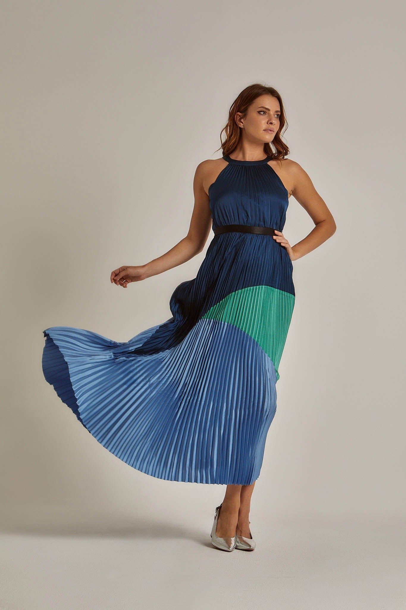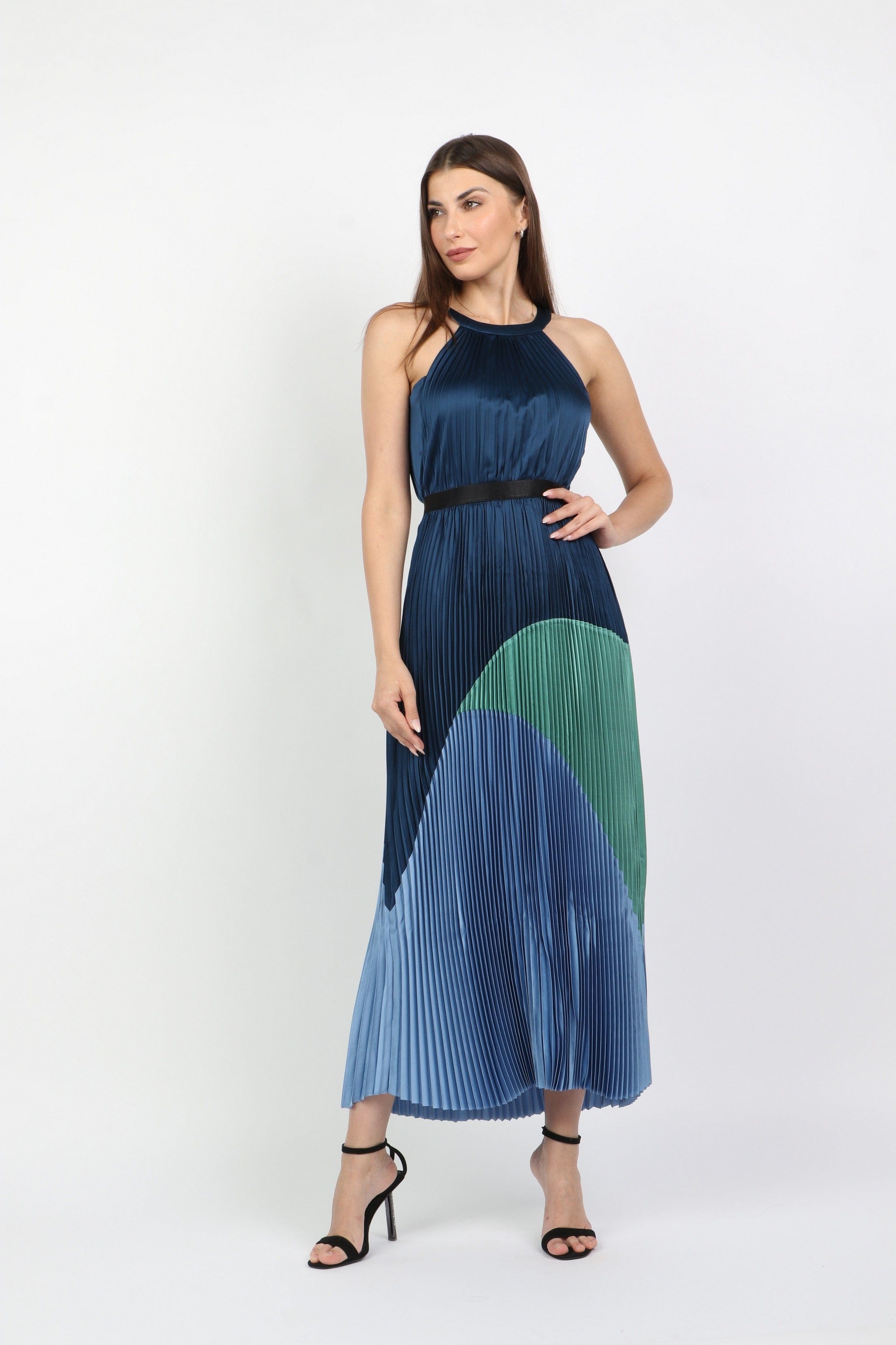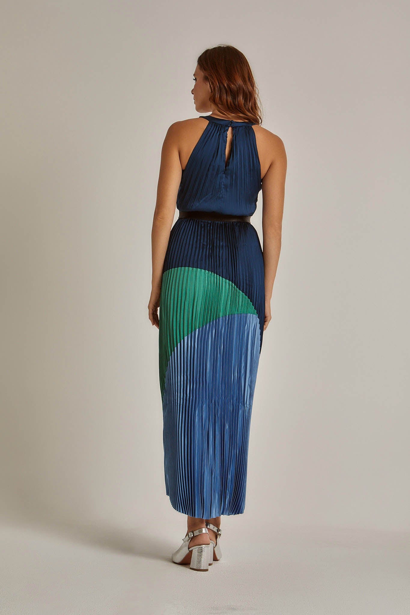 This striking Blue Color-Block Maxi Belted Dress merges modern graphic appeal with timeless ease, making it a go-to for evening plans and everyday style. The A-line silhouette and pleated skirt create graceful movement while the belted waist defines your shape without clinging, and the sleeveless halterneck offers breezy shoulder exposure. Crafted from a medium-weight woven that balances structure with soft drape, the regular-fit bodice includes non-padded cups and a discrete button closure for comfortable coverage. Thoughtfully pocketless to preserve the sleek line, the bold color-block panels add contemporary polish across the flowing maxi length. Equally suited to dinner dates or daytime errands, this versatile Dalydress design is offered at Fashion SA—shop now to elevate your rotation with an easy-care, fashion-forward staple.