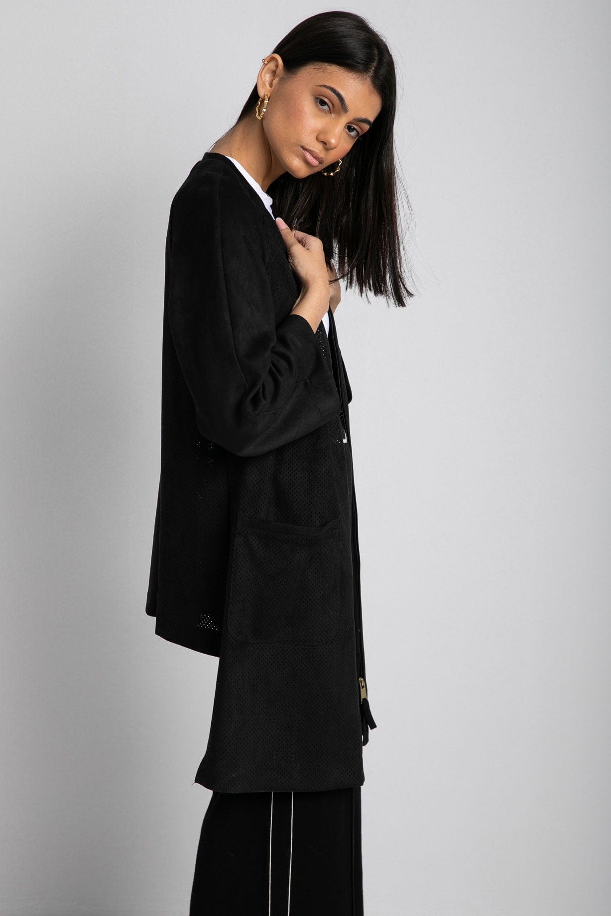 Uncover a blend of style and functionality with the DalyDress Suede Jacket featuring a chic leather pocket. This jacket is crafted from soft suede, offering a luxurious feel that complements any outfit. The unique leather pocket adds a touch of sophistication, perfect for storing essentials while on the go. Whether you're dressing up for a night out or keeping it casual, this versatile piece is a wardrobe must-have. Don’t miss out on enhancing your style—order your DalyDress Suede Jacket today through Fashion Saudi! Product Number: 24025091051