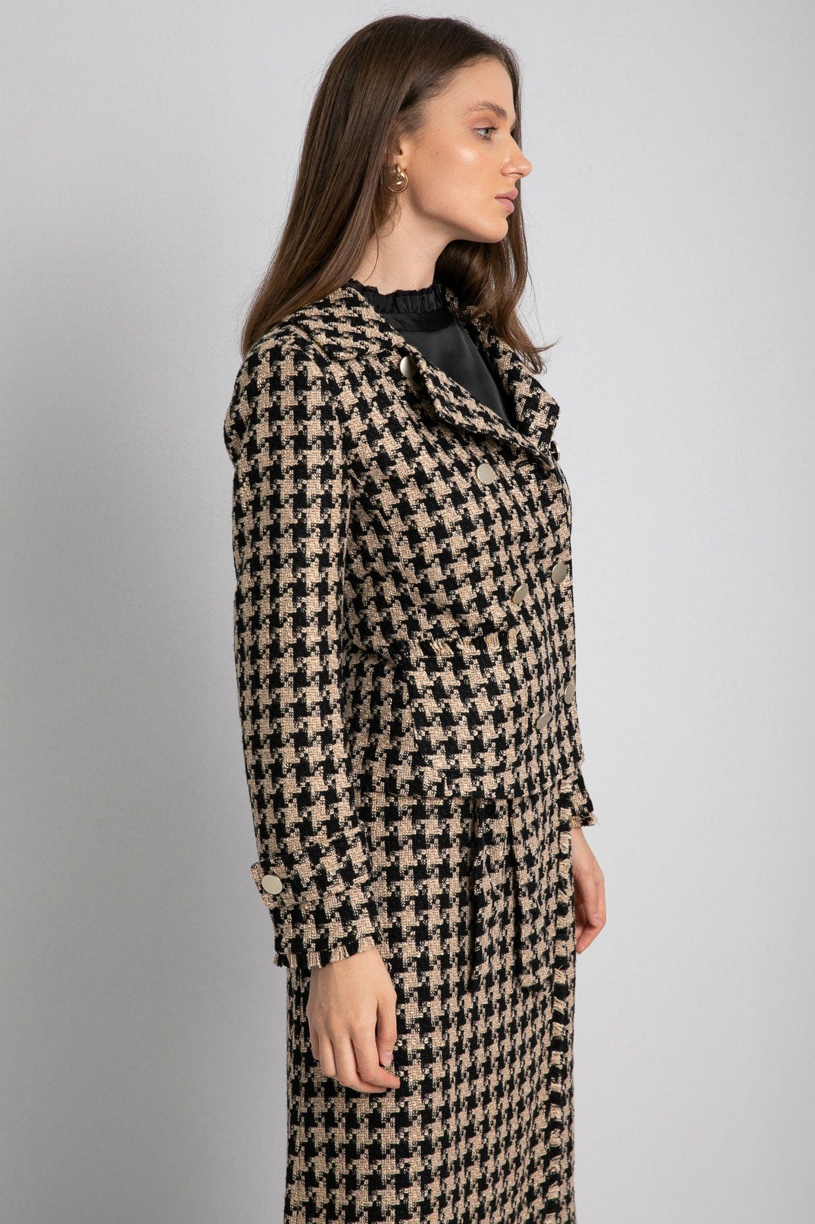 A timeless piece that effortlessly combines style and comfort, the Women's Long Sleeve Checkered Jacket from DalyDress is perfect for any occasion. Made with high-quality fabric, this jacket features a classic checkered pattern that adds a touch of sophistication to your outfit. Its long sleeves provide warmth while maintaining a chic look, making it ideal for layering. Dress it up for a night out or wear it casually during the day. Ready to upgrade your wardrobe? Order your DalyDress jacket today through Fashion Saudi and embrace effortless elegance! Product Number: 24025091053