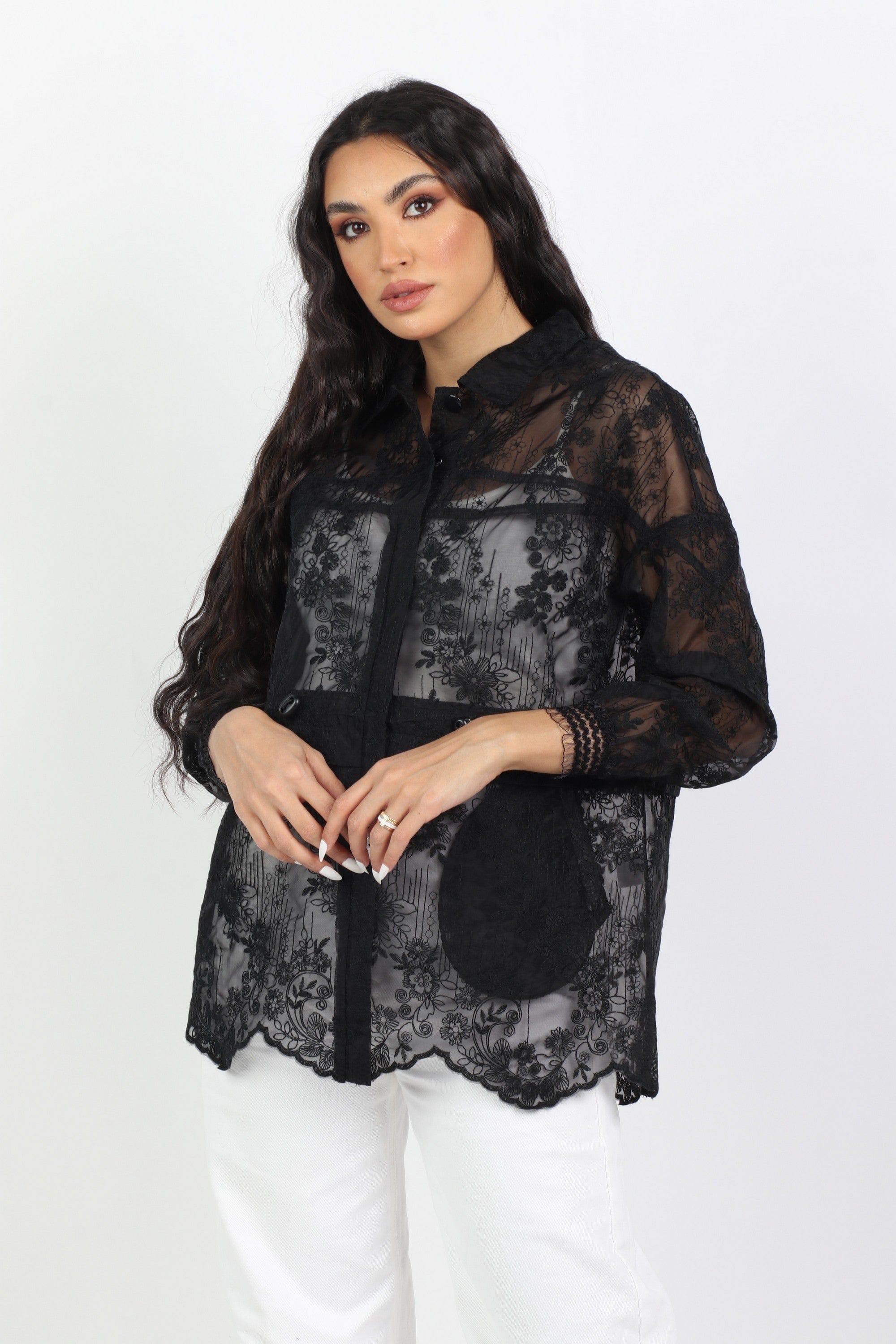 Wrap yourself in elegance with the Lace Jacket with Button Long Sleeves from DalyDress. This stunning piece combines delicate lace with a classic button-up design, offering a timeless look that can easily transition from day to night. The long sleeves provide a graceful touch, while the intricate lace overlay adds a hint of sophistication to any outfit. Perfect for layering over dresses or pairing with tailored trousers, this jacket is a must-have for fashion lovers. Don't miss out on adding this beautiful piece to your collection—order now through Fashion Saudi! Product Number: 24025091079
