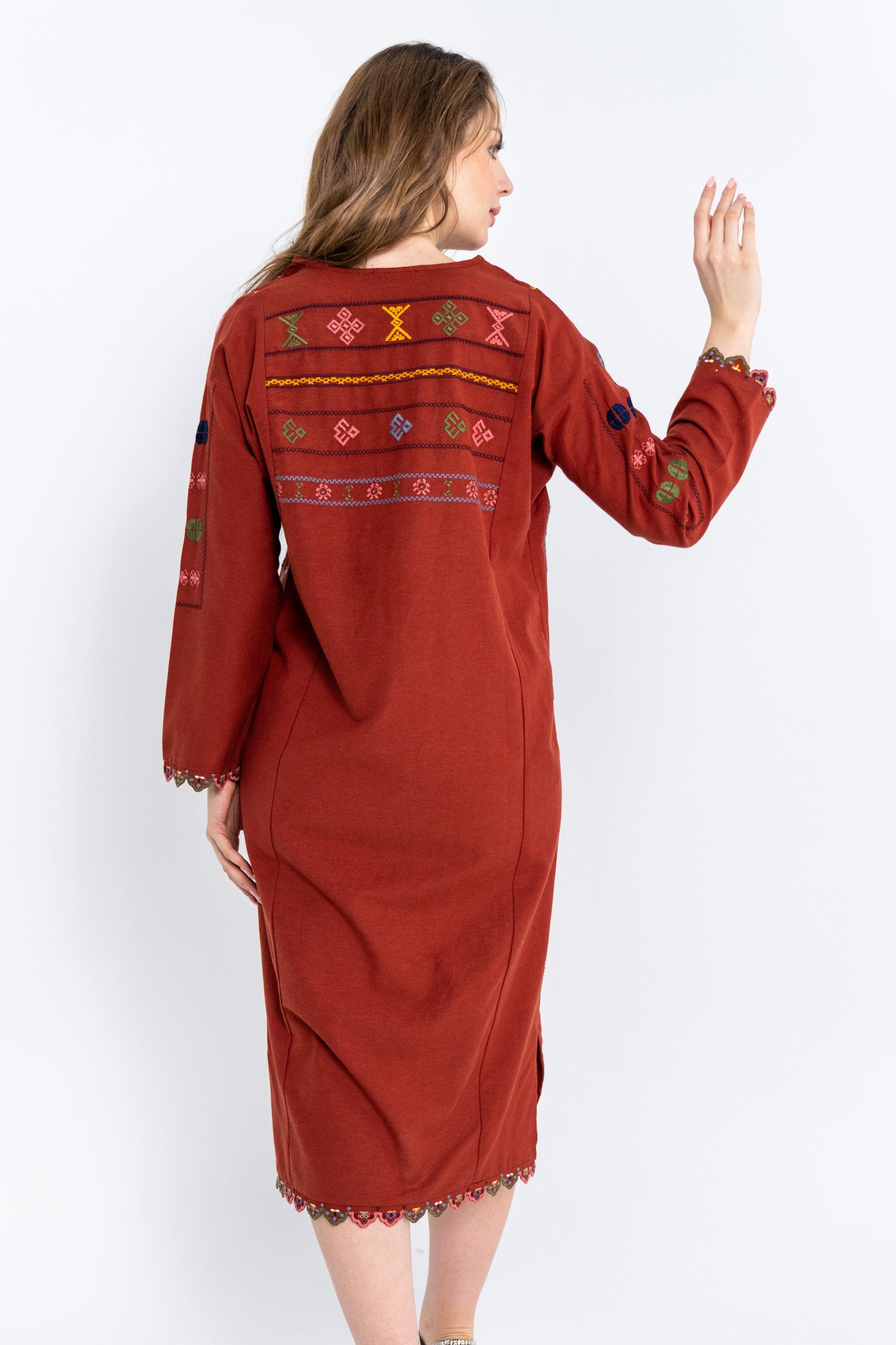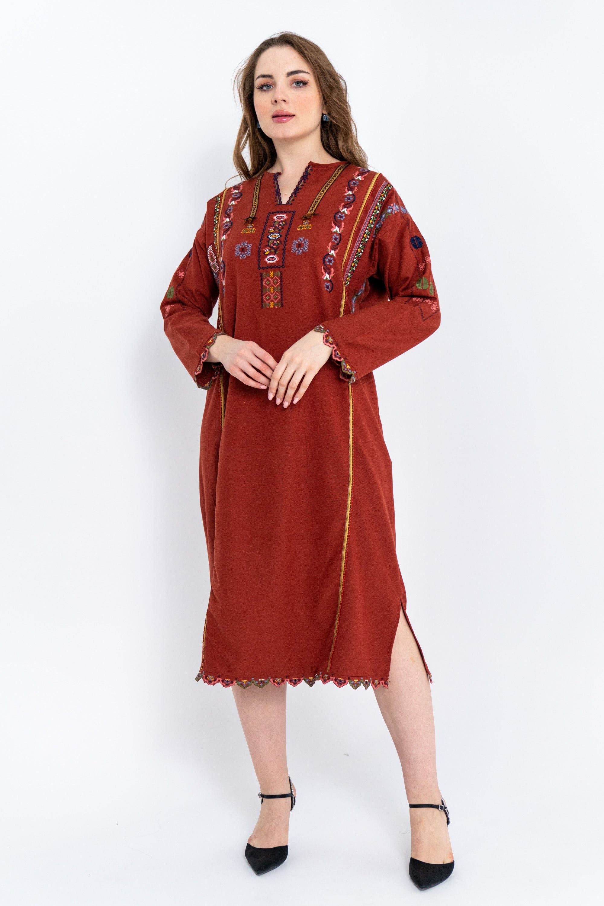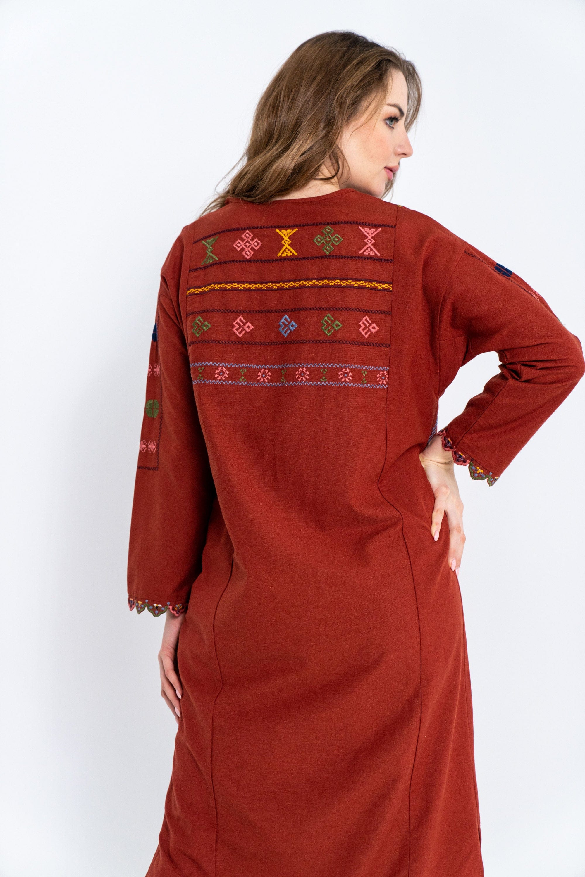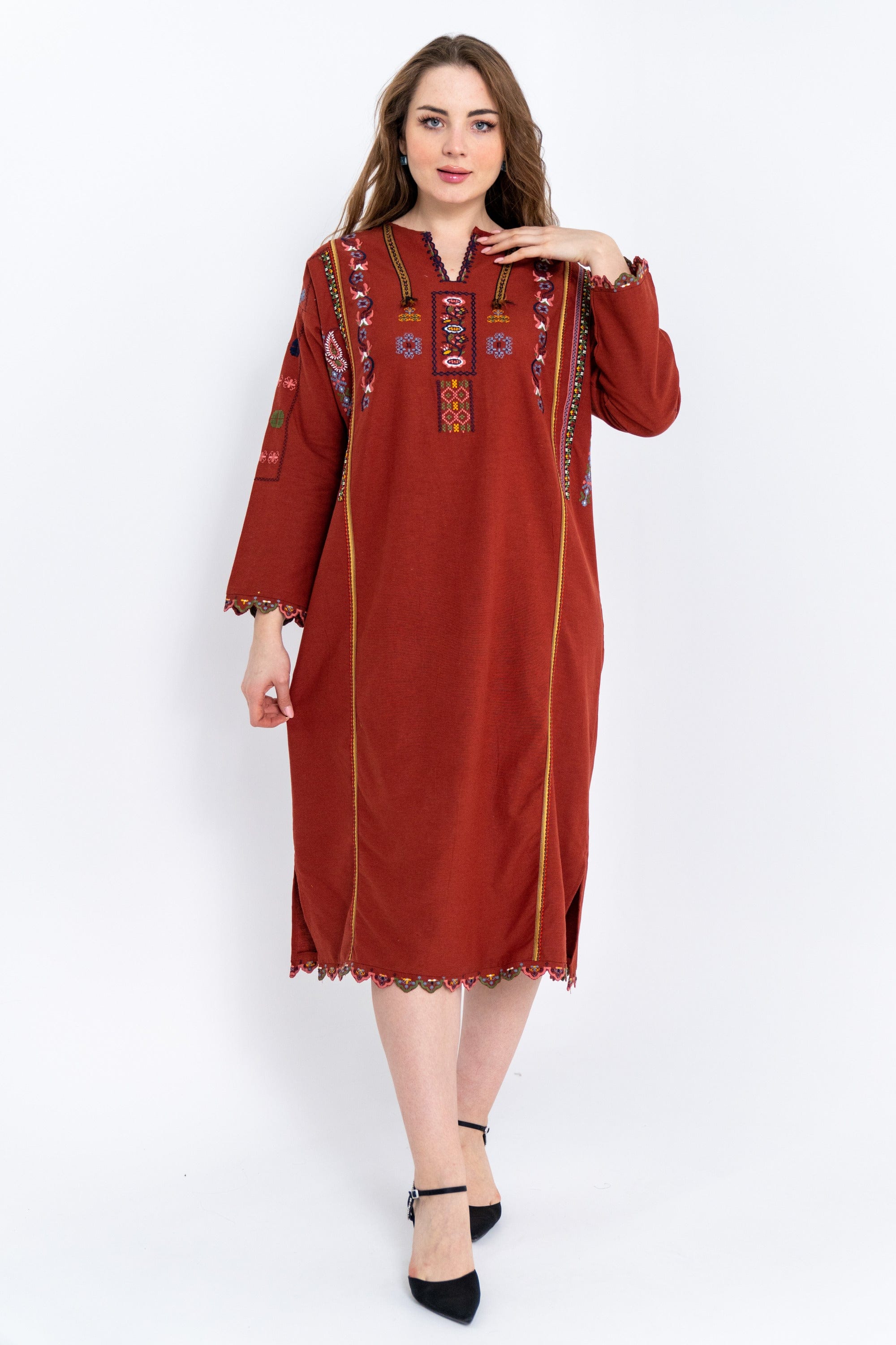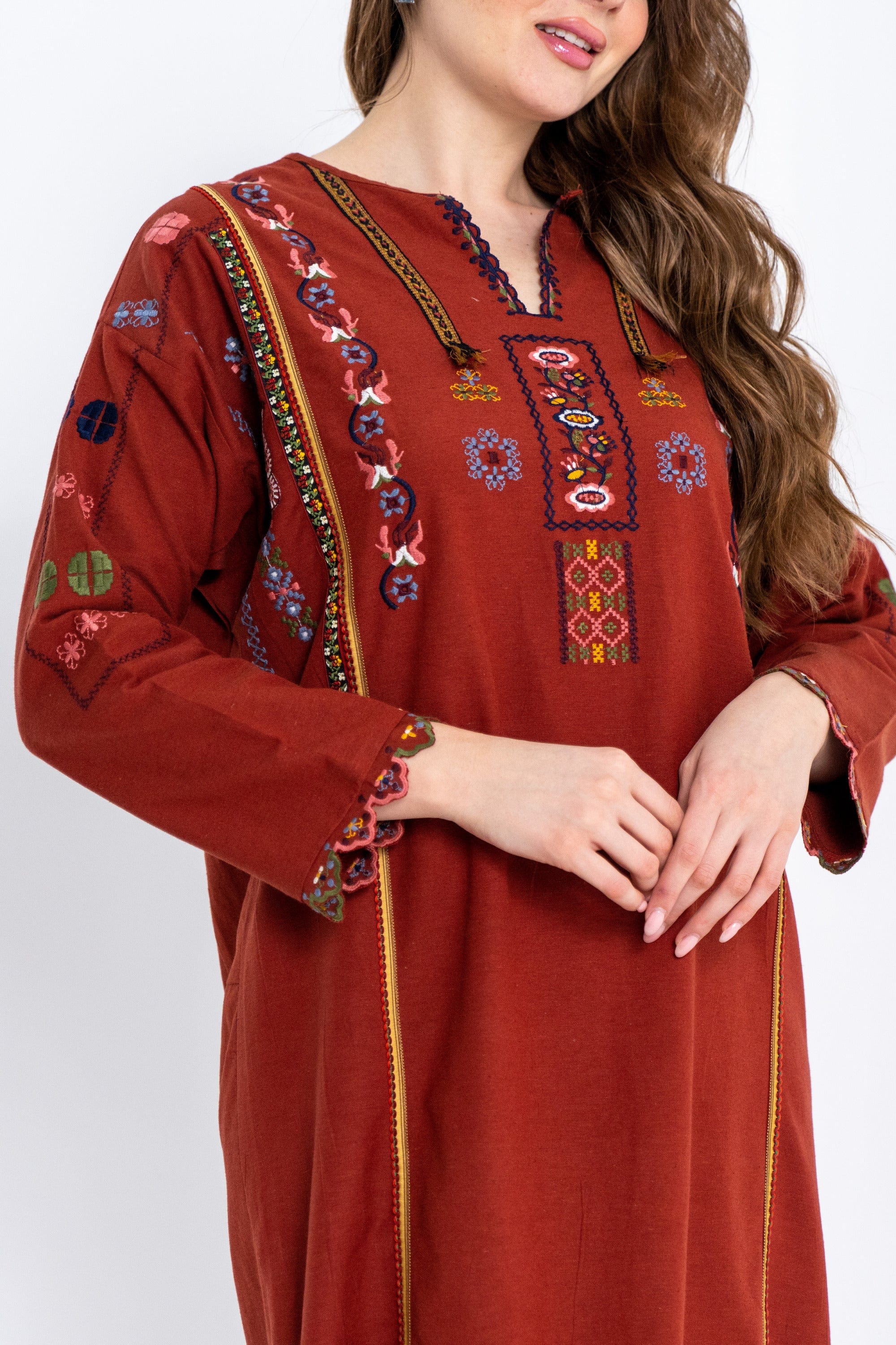Get ready to shine in this short women's kaftan embroidered with V-neckline from DalyDress. This kaftan is elegantly and tastefully designed to add a feminine touch to your look. It's crafted from high-quality material and embroidered with exquisite embroidery, and comes in a charming burnt orange color. You can wear this kaftan on special occasions and celebrations, as it will make you look very elegant and attractive. Get now a short women's kaftan embroidered with V-neckline from DalyDress In a burning orange color and ready for a brilliance like no other. Order it now from Fashion Saudi! Product Number: 240-314-910-6