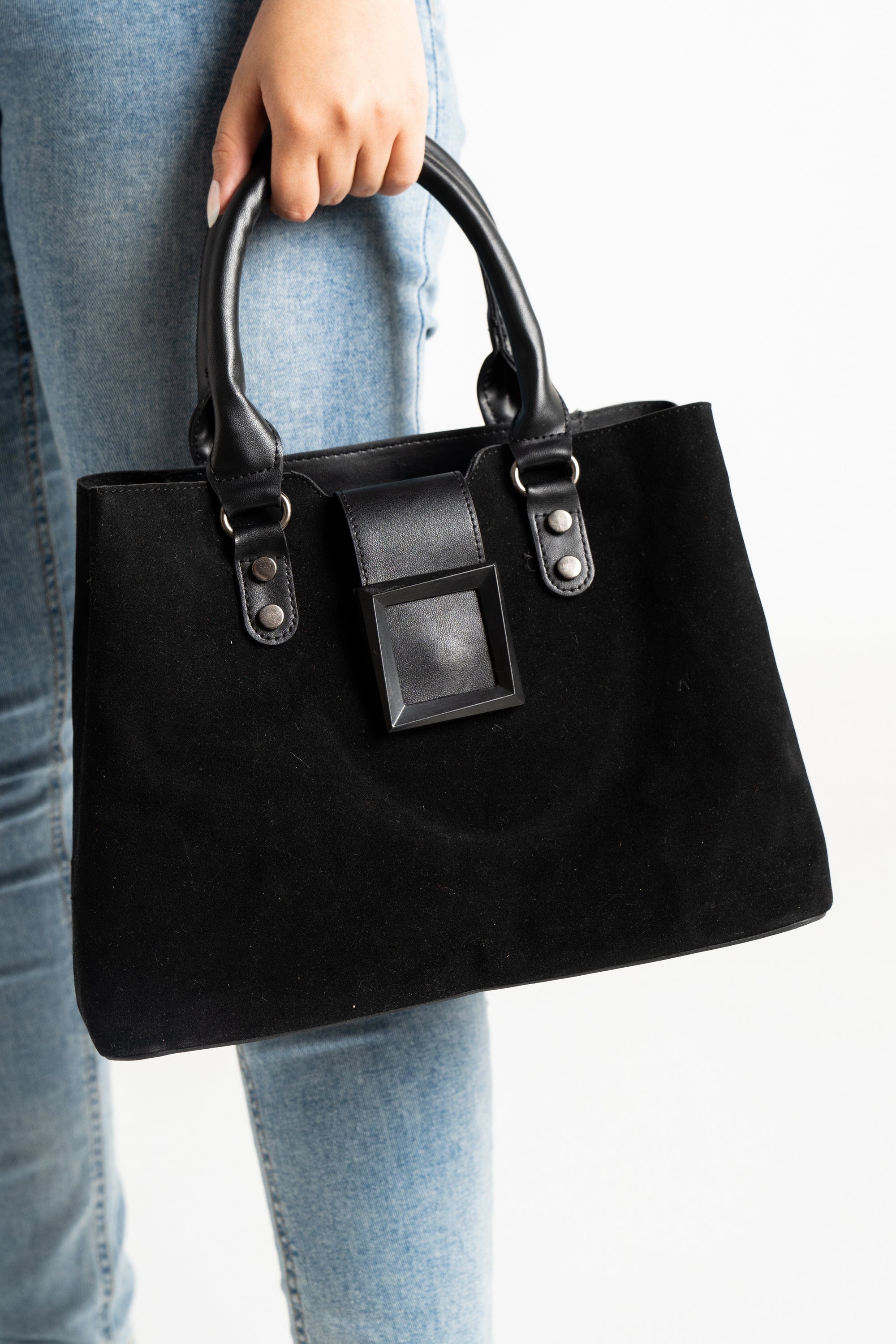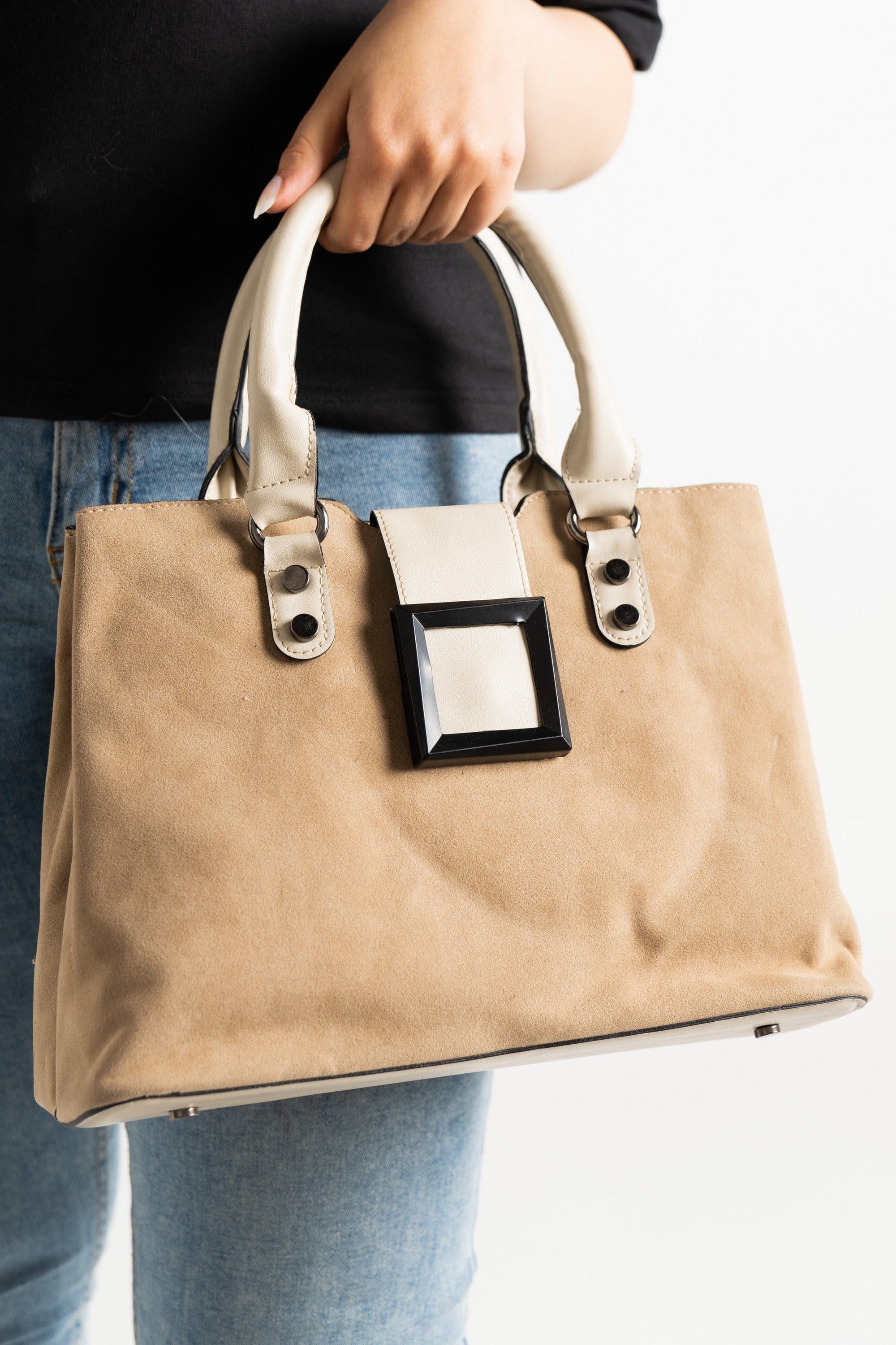 Get ready to add a stylish touch to your outfit with this stunning handbag from DalyDress. This bag has a gorgeous suede design with embellished leather details that add a luxurious touch. Available in gorgeous black and beige colors, to suit your unique taste and harmonize with your favorite outfits. At its perfect size, you can carry all your essentials in style and comfort. Order now the amazing handbag from DalyDress Get ready for a brilliance like no other. Book it now at Fashion KSA and enjoy irresistible elegance. Product Number: 240-40-302-2062