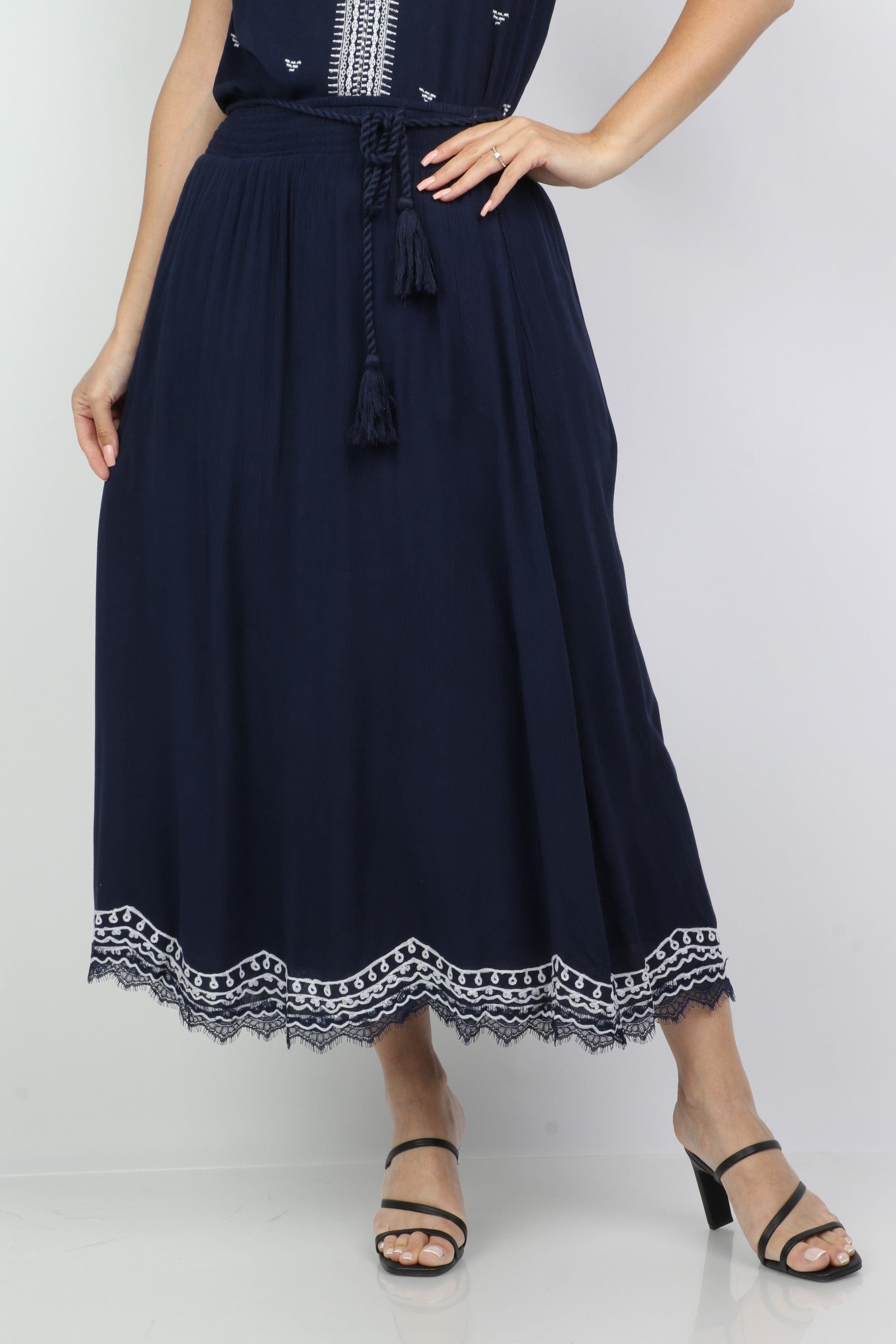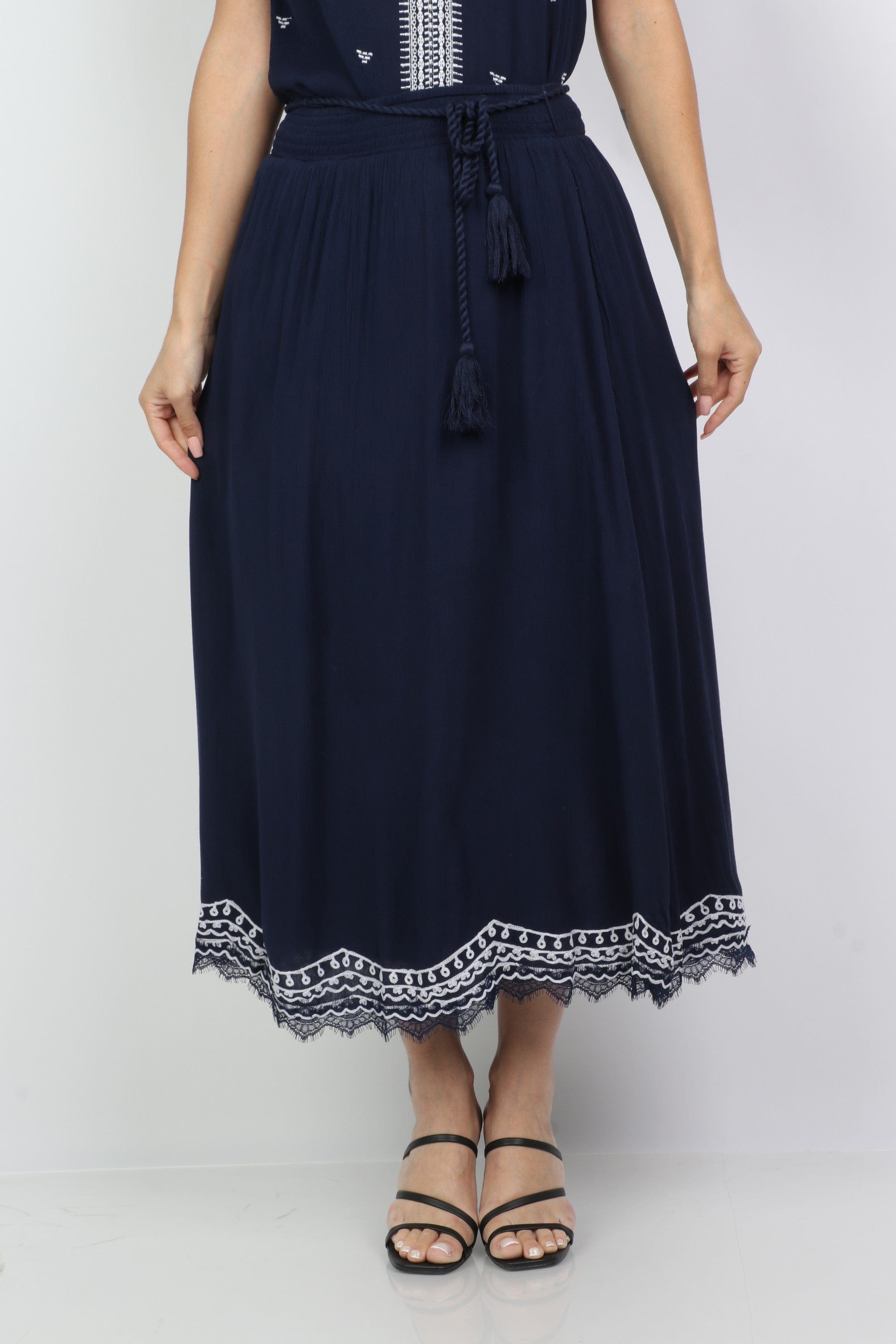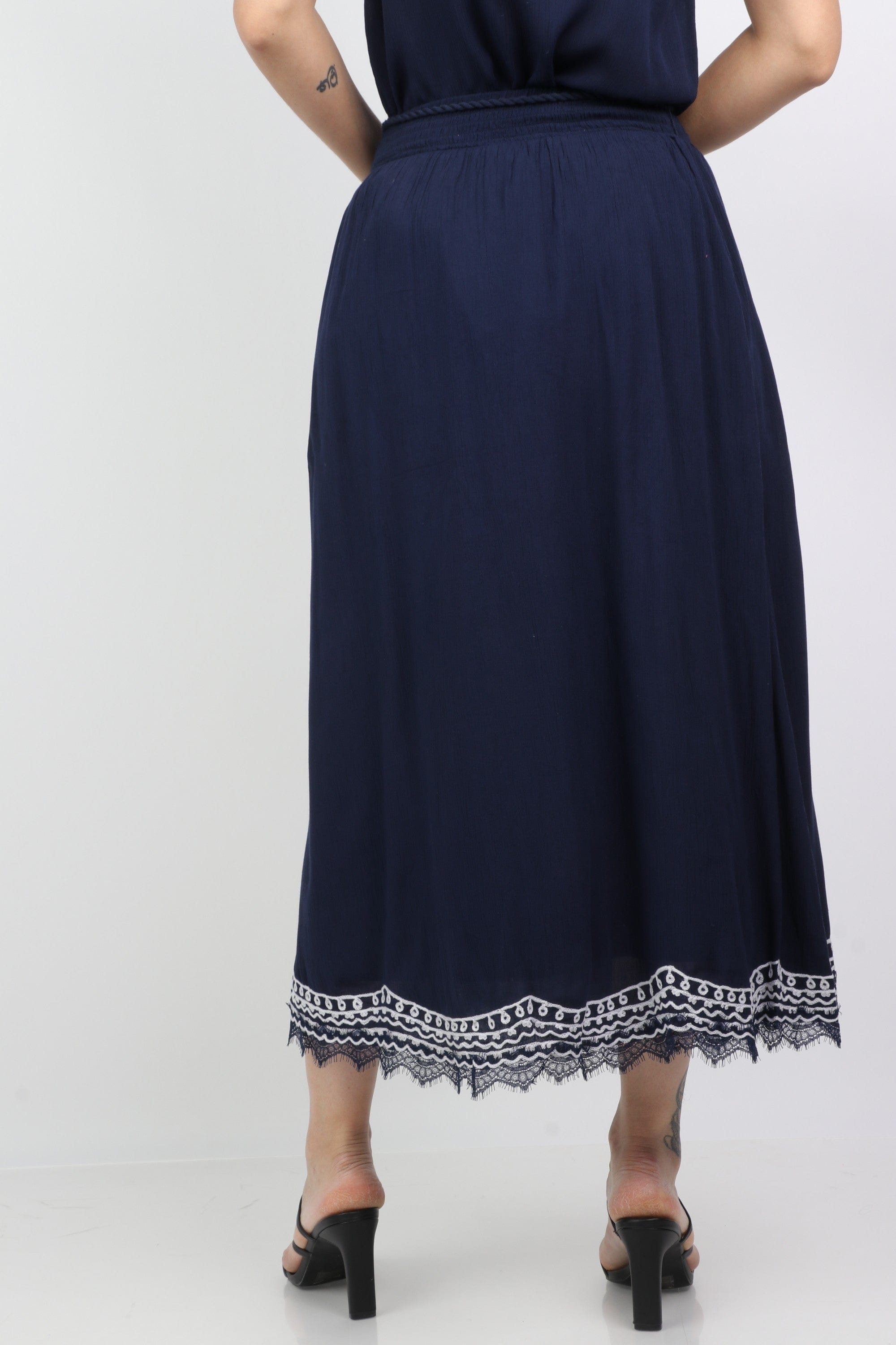 Solid Midi Skirt with Patterns