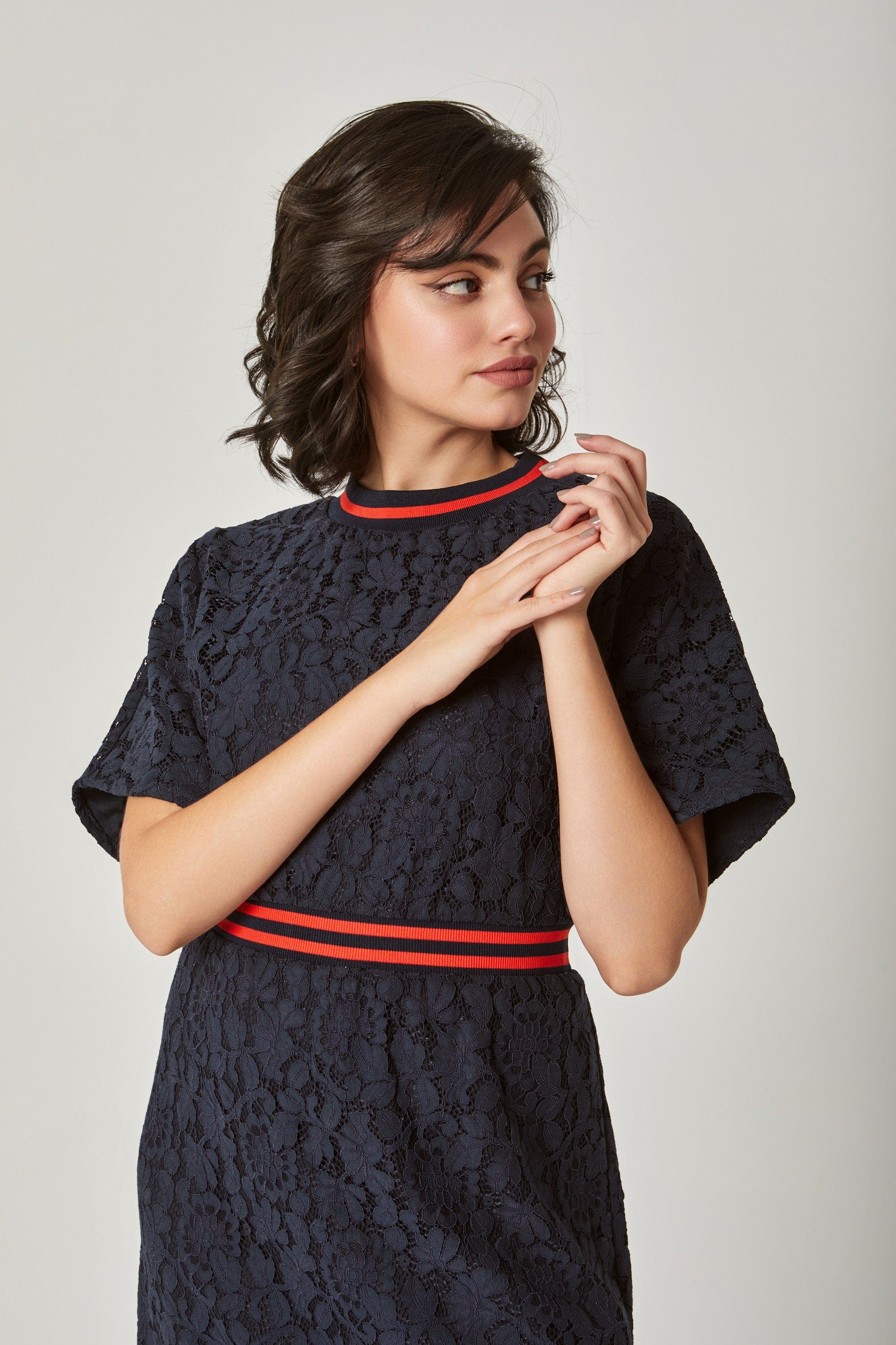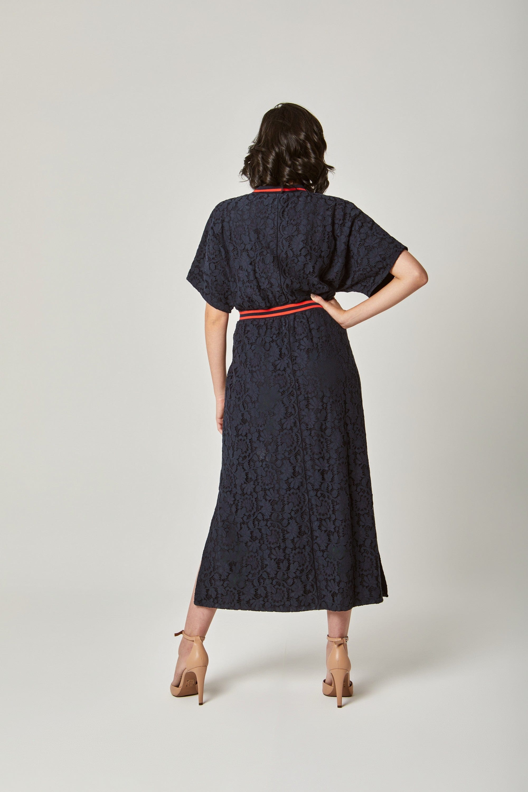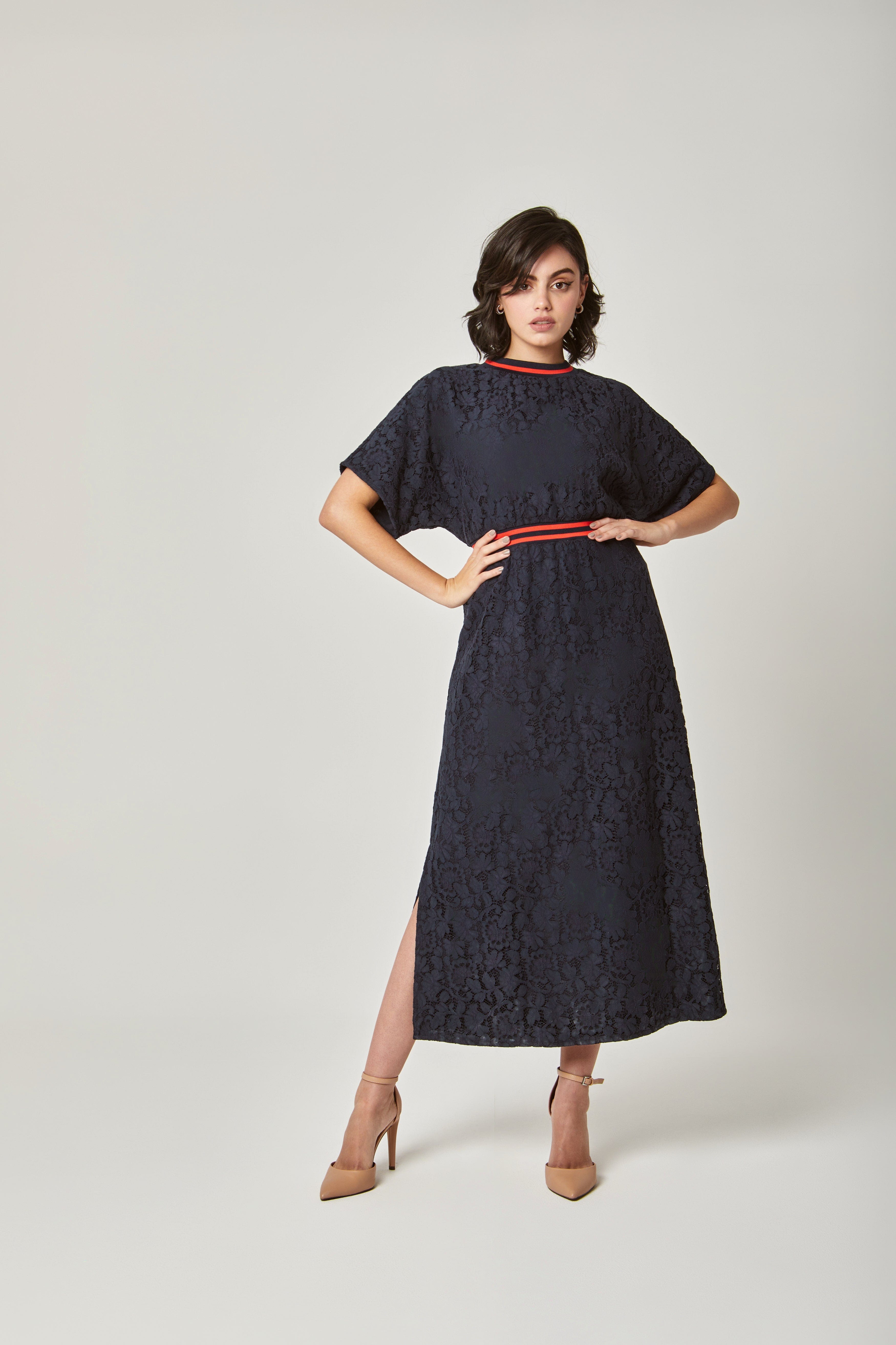 Make an elegant statement in the Dark-Blue Textured Midi Belted Dress, a refined piece that balances feminine detail with wearable ease. The flattering A-line silhouette skims the body to create a defined waistline, while the self-tie belt accentuates shape on this regular-fit design. Crafted in a textured lacework fabric with medium weight, the round neck and short sleeves offer comfortable coverage for spring and autumn days. The pull-on construction (without closure) and pocketless finish keep lines clean and polished, while the midi length lends sophisticated versatility from daytime events to evening receptions. From office presentations to weekend weddings, this Dalydress creation brings timeless elegance to your wardrobe. Shop the collection on Fashion SA and let this effortless staple elevate every occasion.