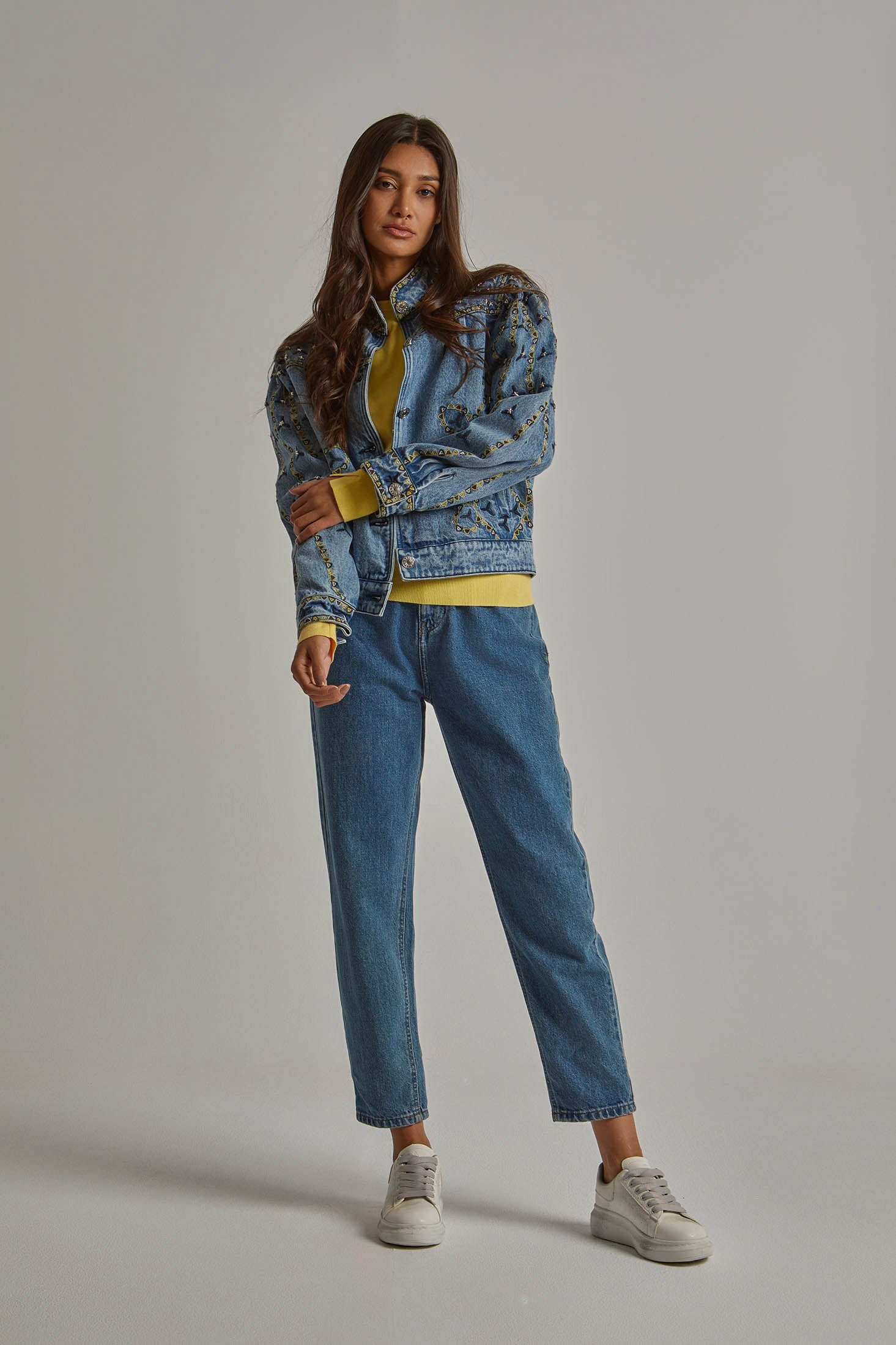 A denim jacket is a timeless essential, and the DalyDress Embroidered Long Sleeve Women's Denim Jacket takes it to a whole new level. Crafted with care, this jacket features beautiful embroidery that adds a touch of personality and charm to your outfits. The soft denim fabric ensures comfort while the classic design makes it perfect for any occasion, whether you’re dressing up for a night out or keeping it casual during the day. Pair it with your favorite jeans or a flowy dress for a stylish look. Don’t miss out on this must-have piece—order yours today through Fashion Saudi! Product Number: 2602505024